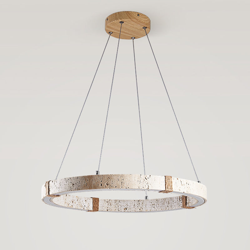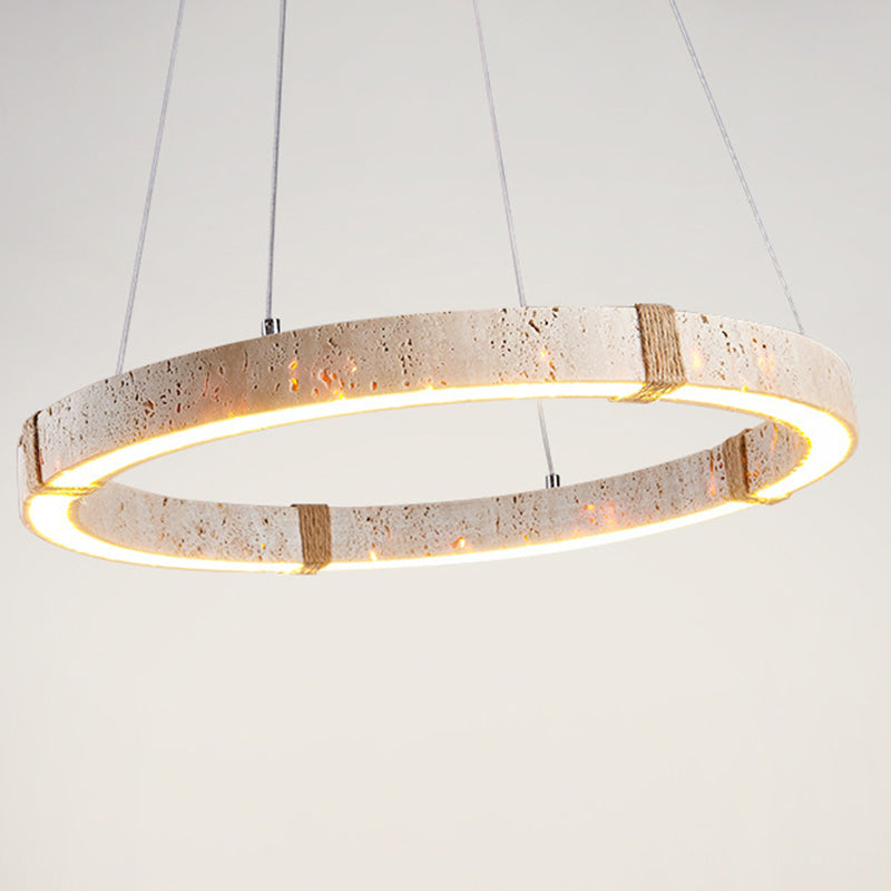 مصباح LED معلق على شكل حلقة دائرية عتيقة تقليدية من الترافرتين وحبل القنب لغرفة المعيشة