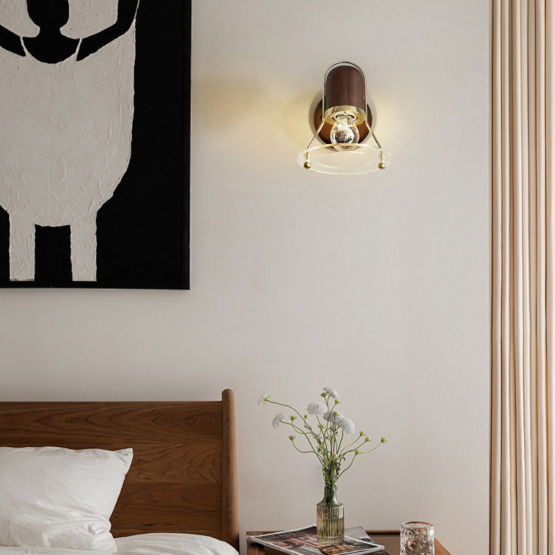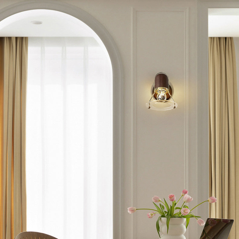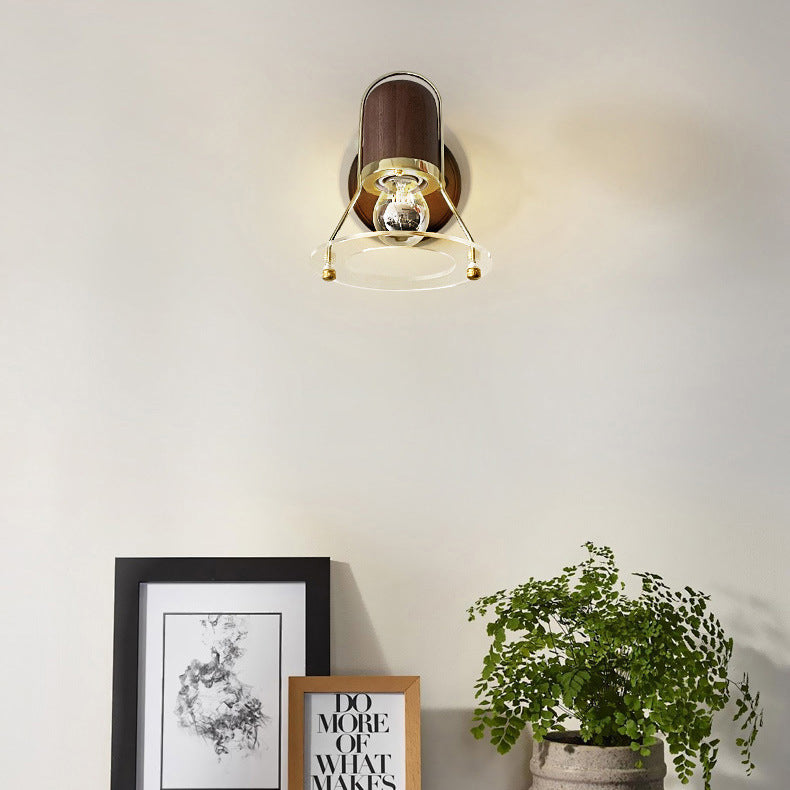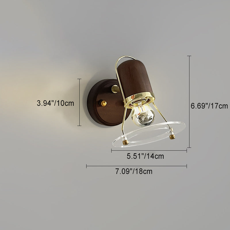 مصباح حائط مخروطي عتيق تقليدي مصنوع من الحديد والخشب مزود بإضاءة واحدة لغرفة النوم