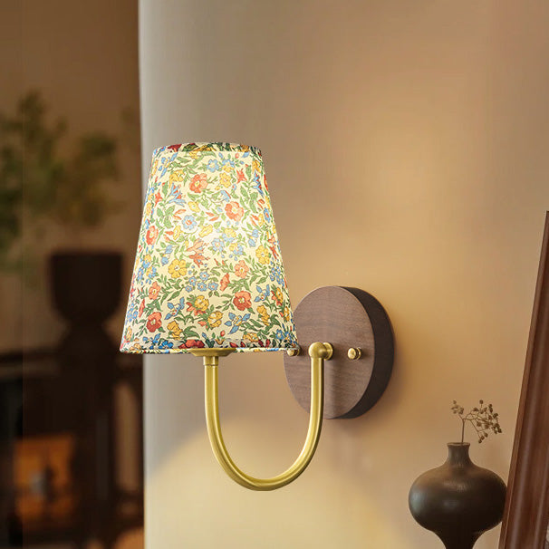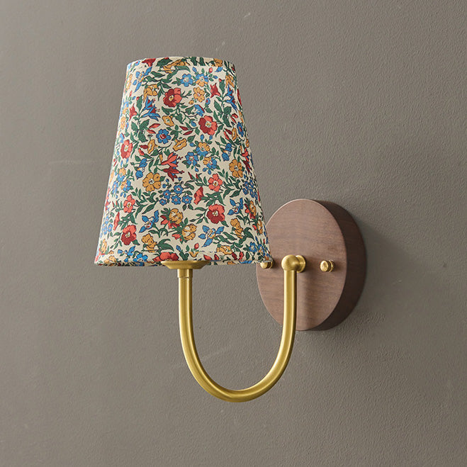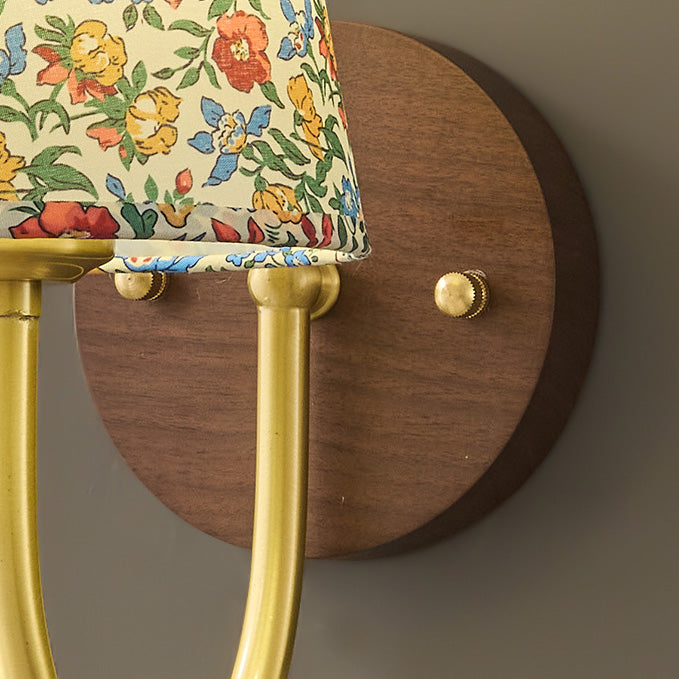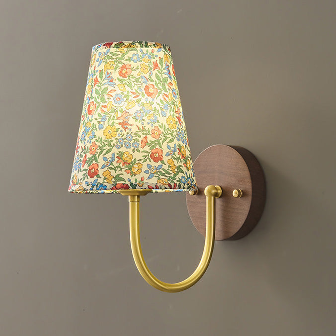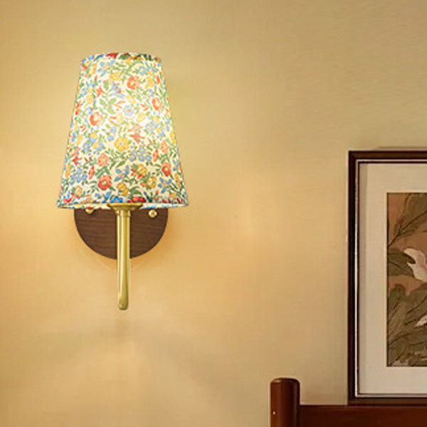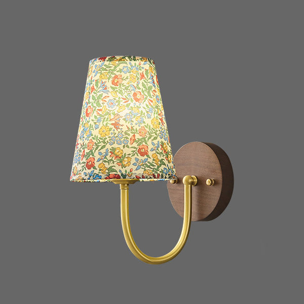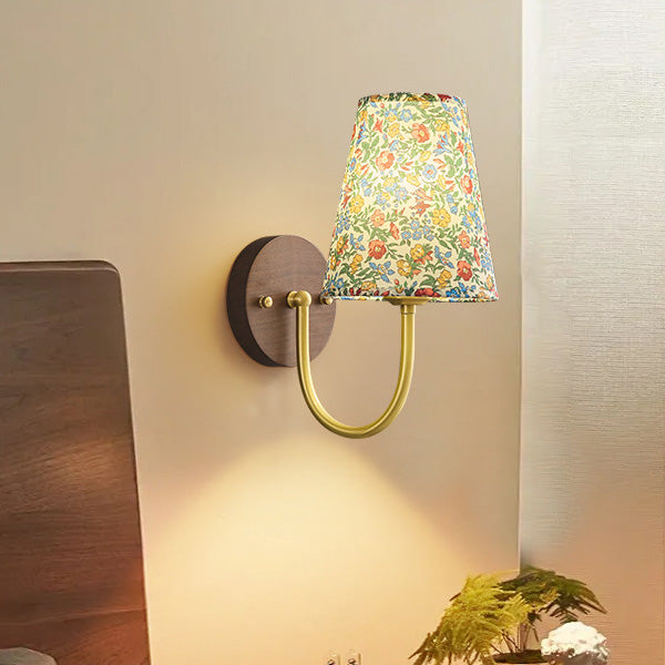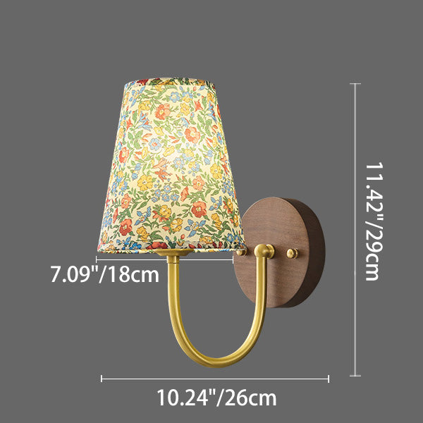 مصباح حائطي تقليدي عتيق مصنوع من النحاس الصلب مصنوع من الخشب الصلب مع ظل دائري ومصباح واحد لغرفة المعيشة