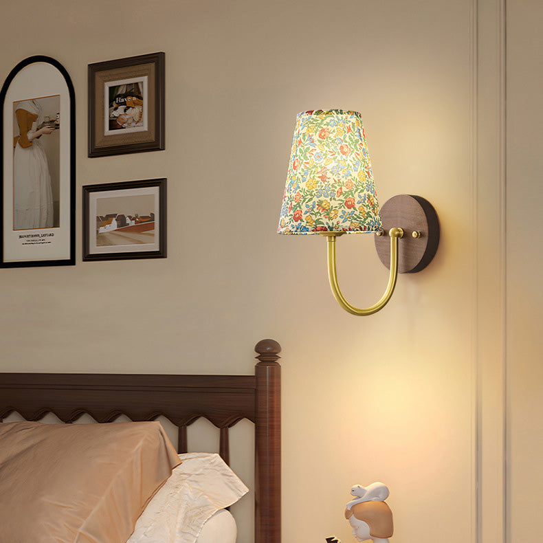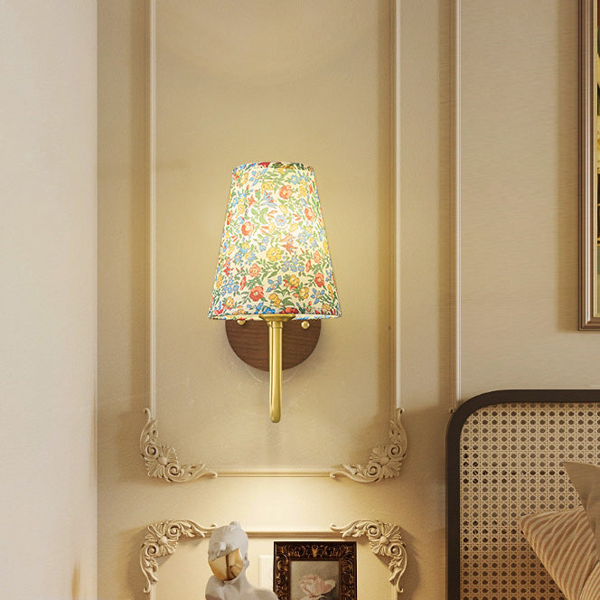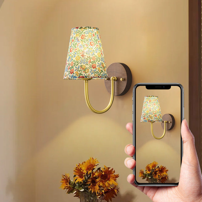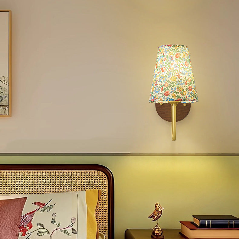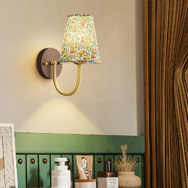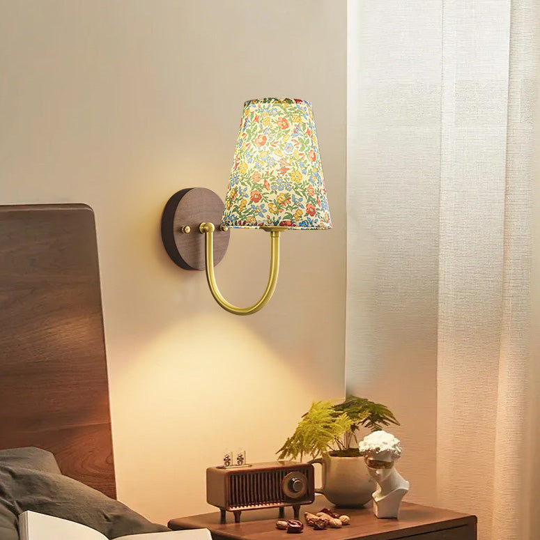 مصباح حائطي تقليدي عتيق مصنوع من النحاس الصلب مصنوع من الخشب الصلب مع ظل دائري ومصباح واحد لغرفة المعيشة