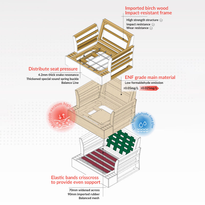 Reinforced Birch Wood Frame: Imported solid wood ensures stability and years of reliable use.