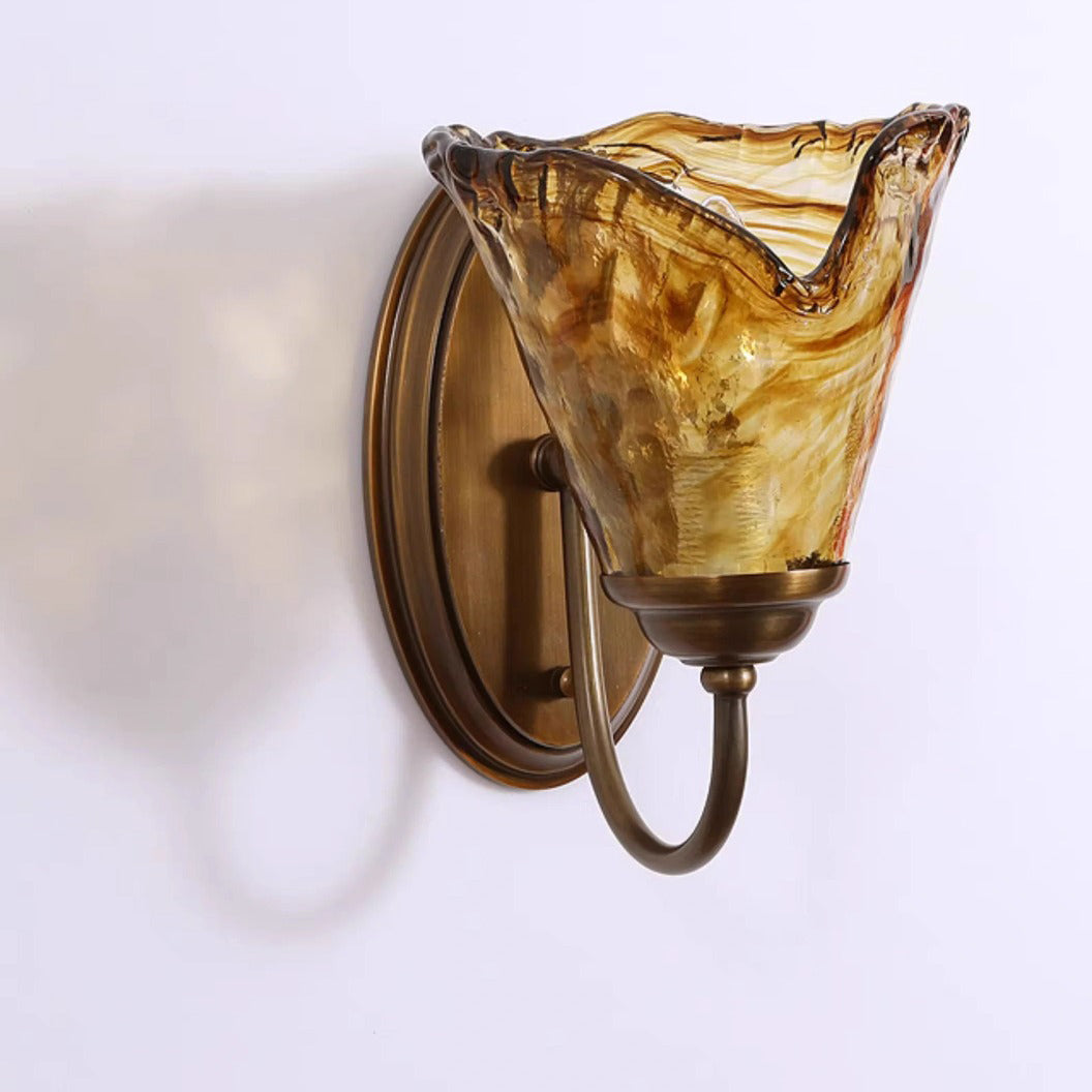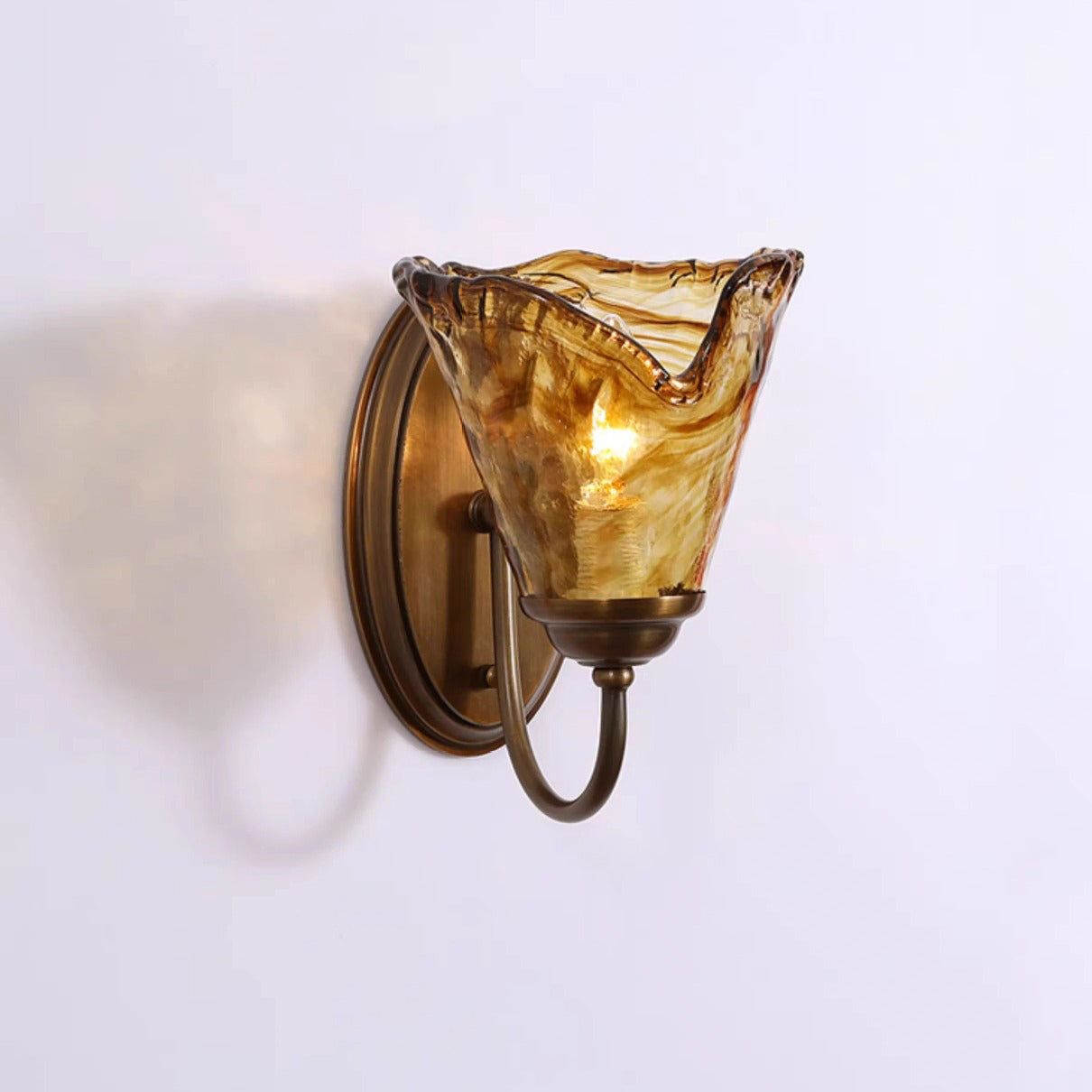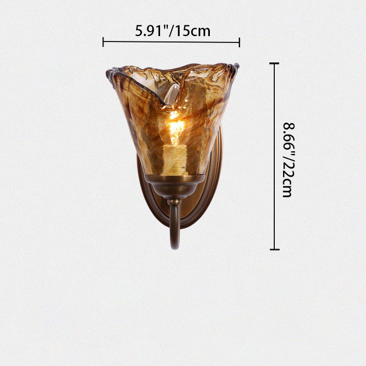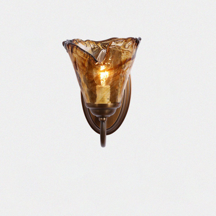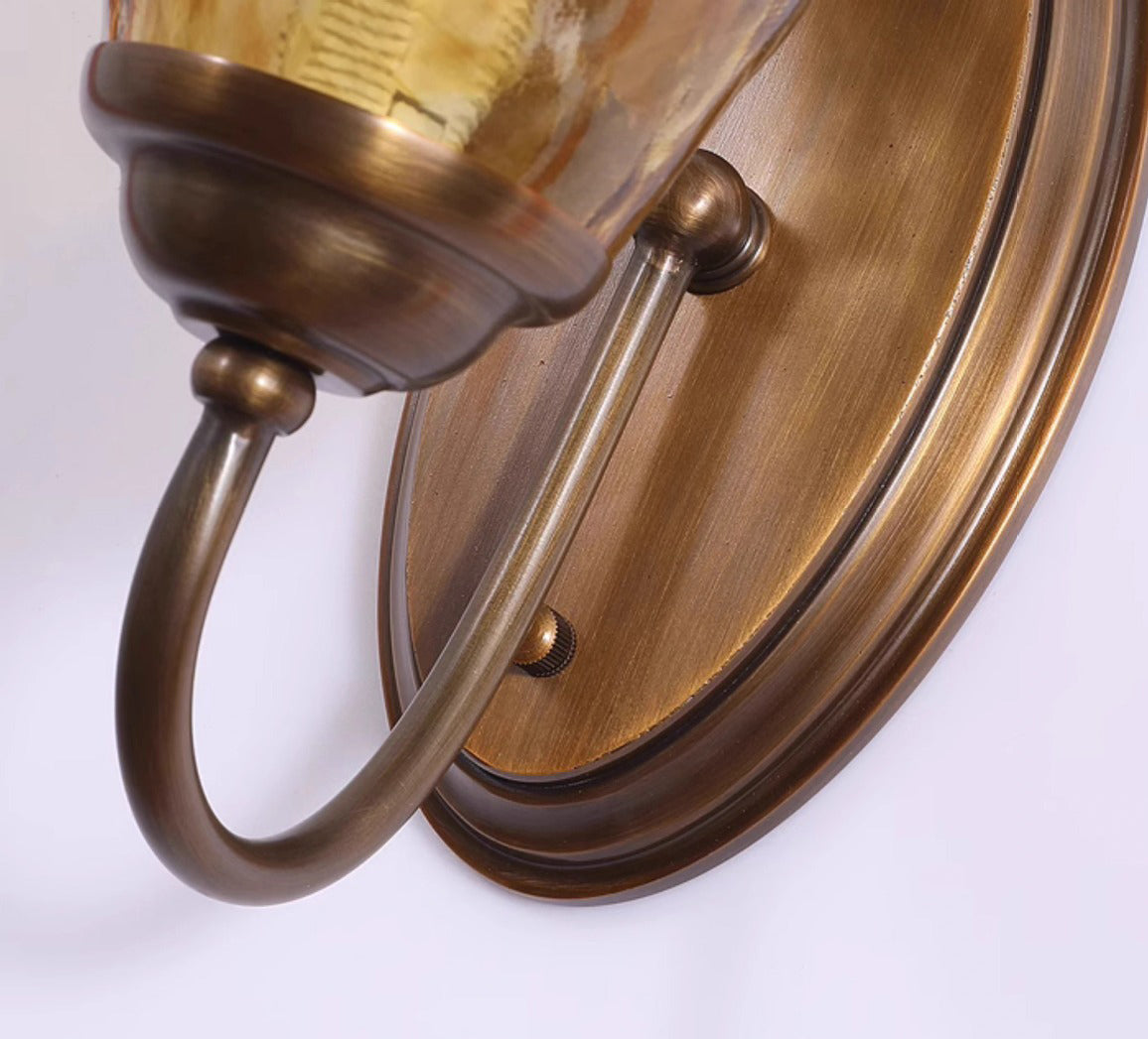 مصباح حائطي تقليدي عتيق على شكل كوب بإطار نحاسي كامل وغطاء زجاجي ومصباح واحد لغرفة المعيشة