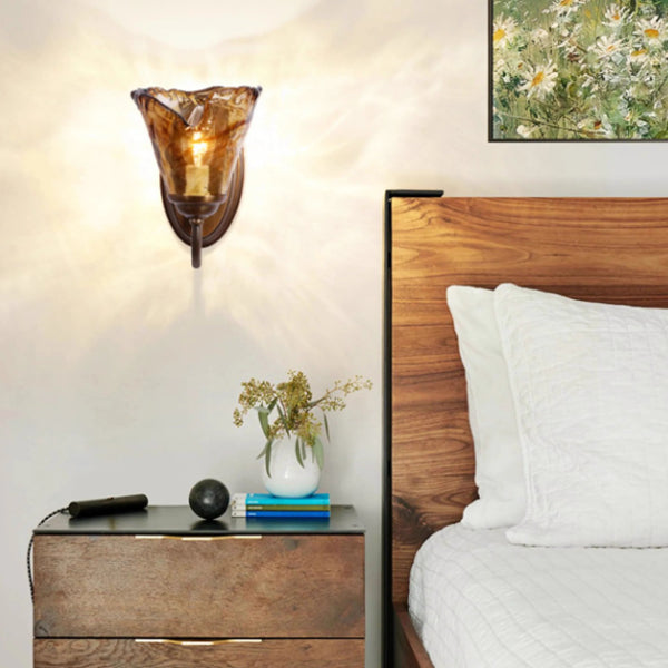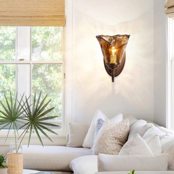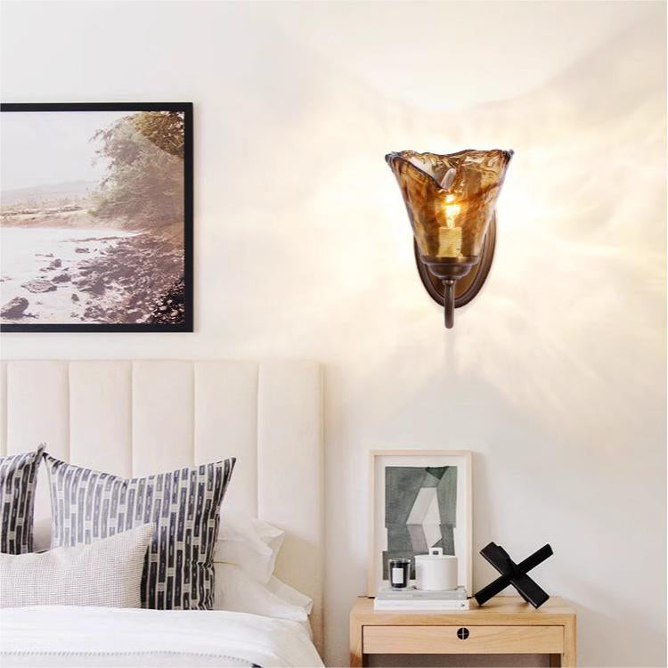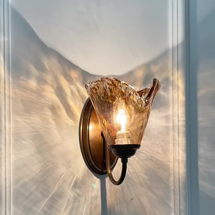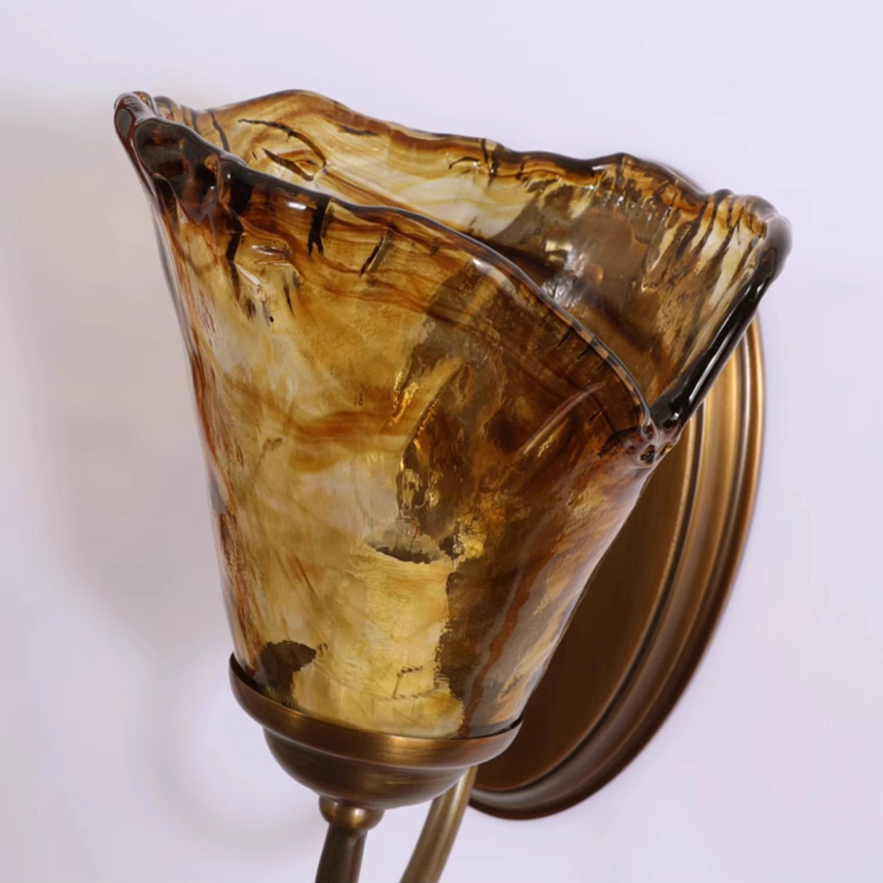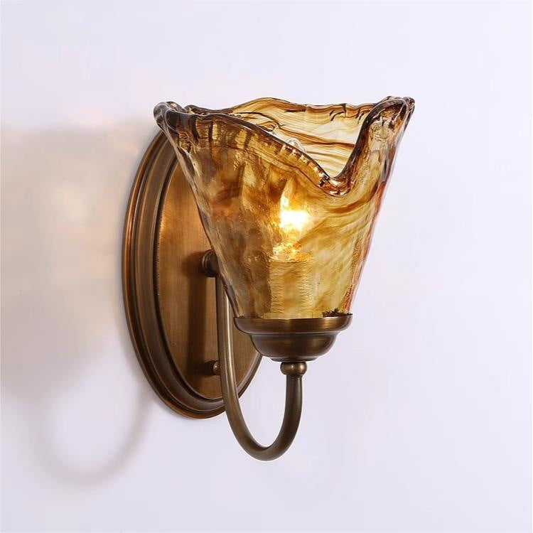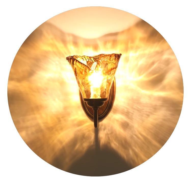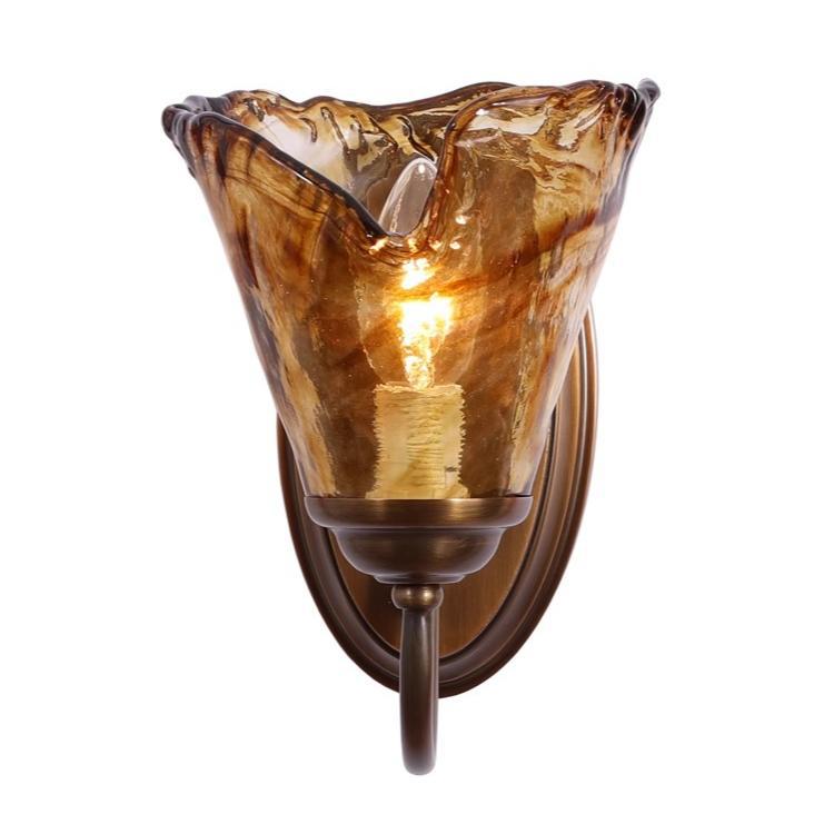 مصباح حائطي تقليدي عتيق على شكل كوب بإطار نحاسي كامل وغطاء زجاجي ومصباح واحد لغرفة المعيشة