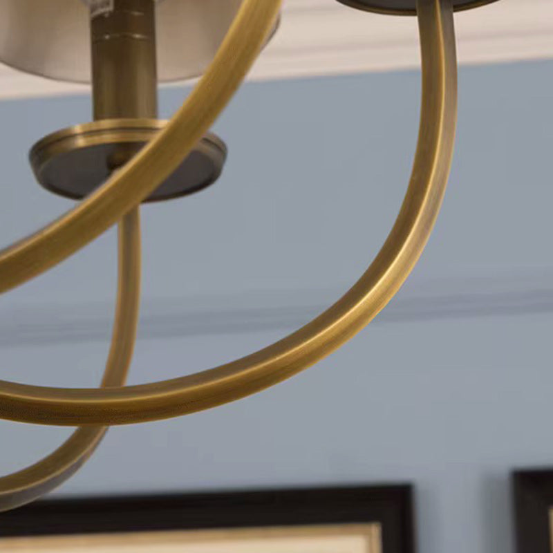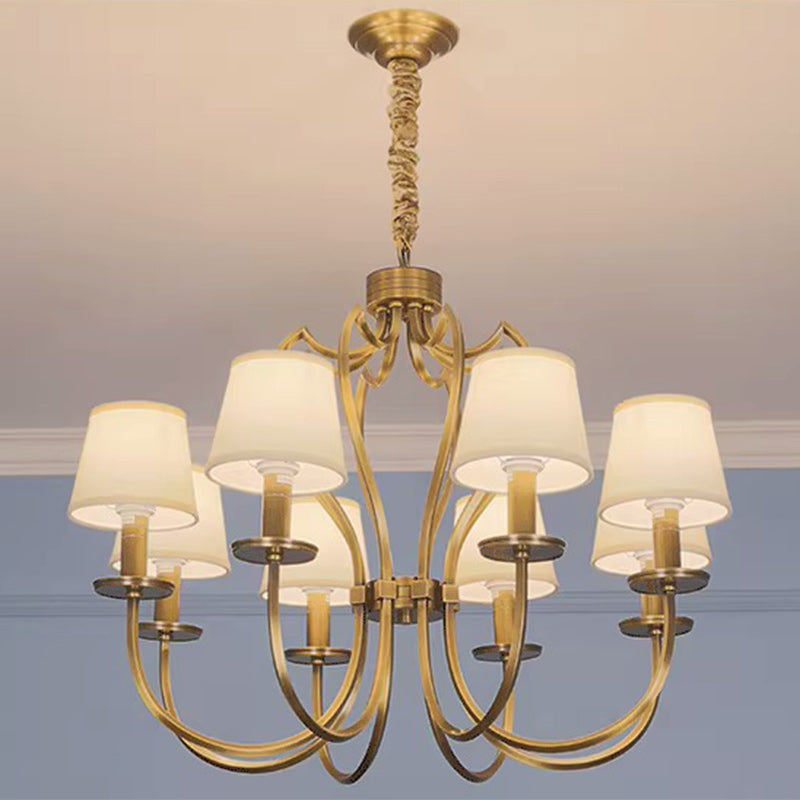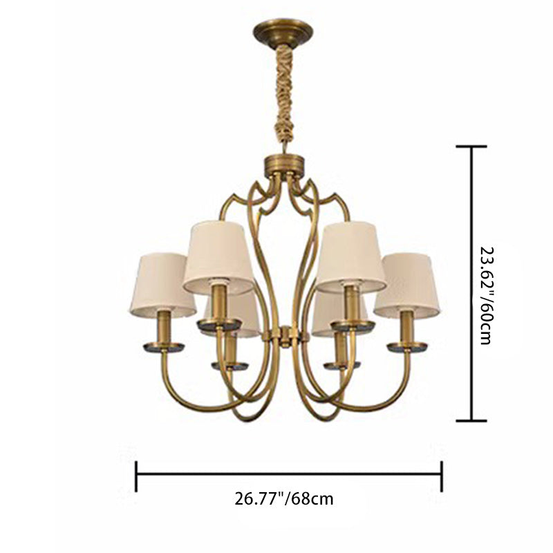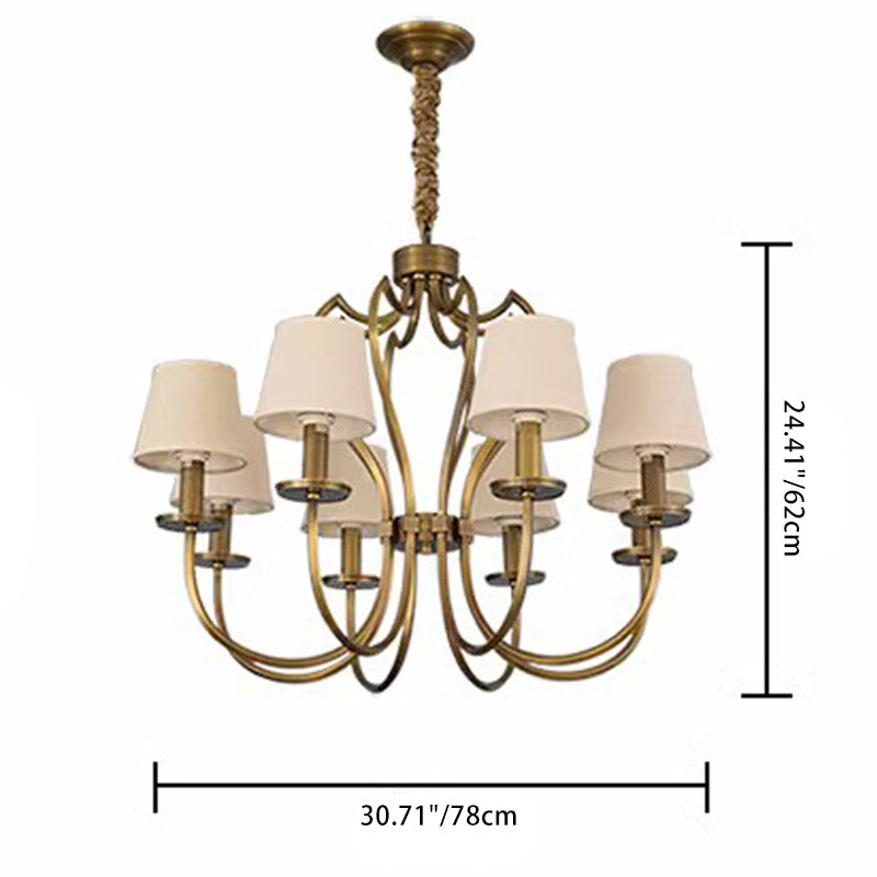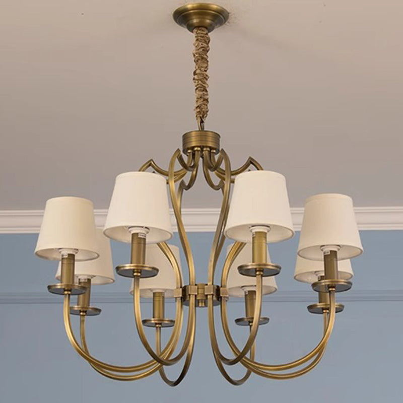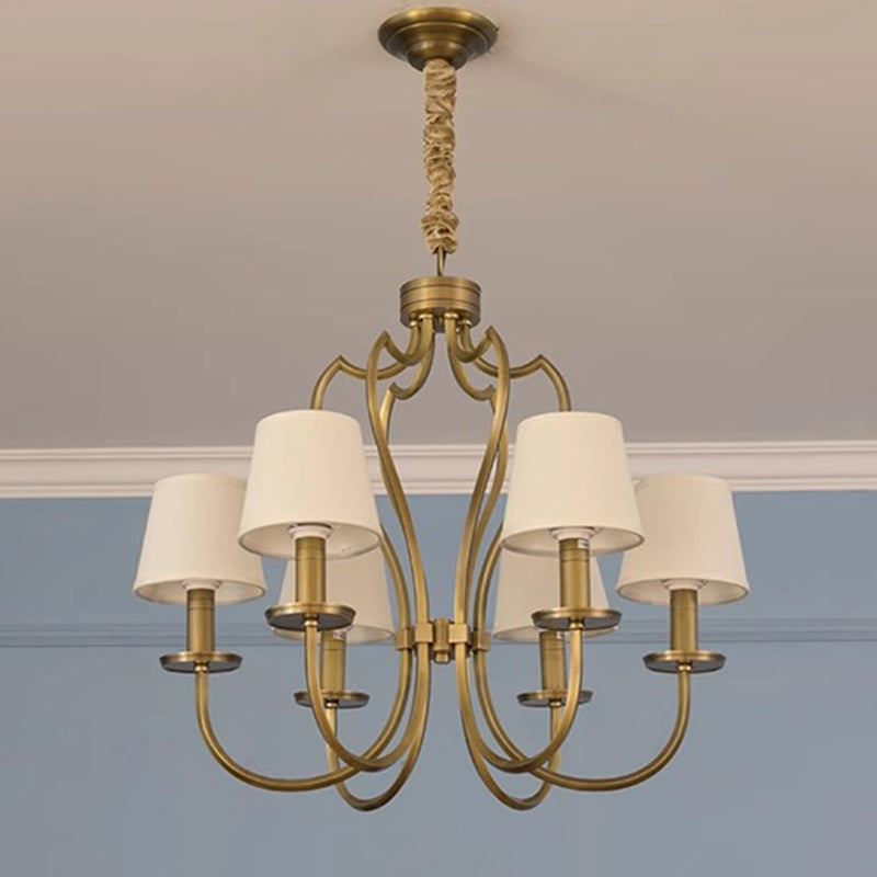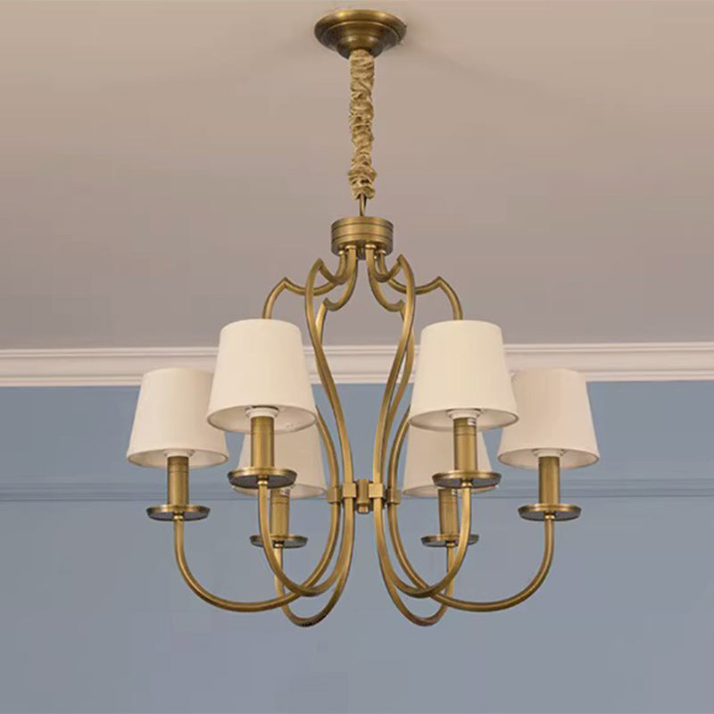 ثريا نحاسية تقليدية عتيقة ذات فروع منحنية وخطوط دائرية من القماش مكونة من 6/8 أضواء لغرفة المعيشة