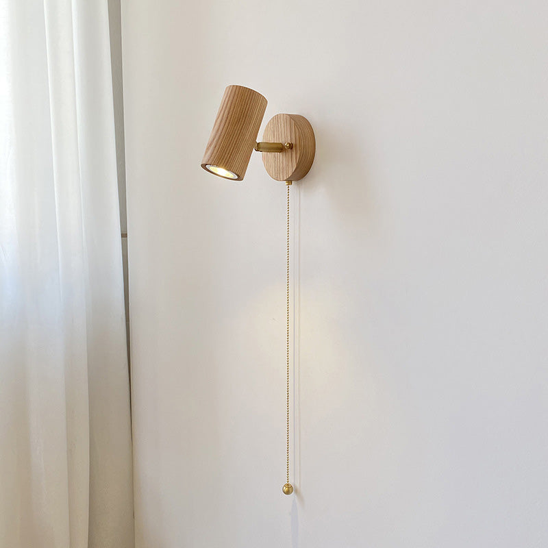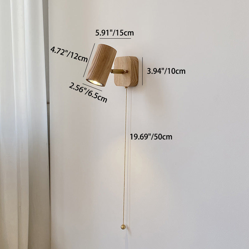 مصباح حائطي أسطواني عتيق تقليدي مصنوع من النحاس والخشب مزود بإضاءة واحدة لغرفة النوم