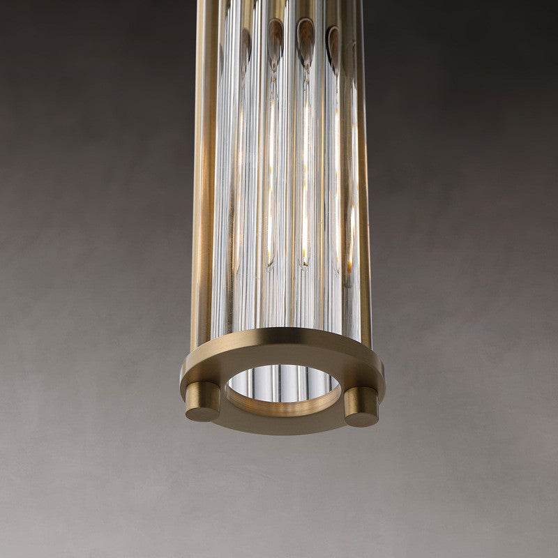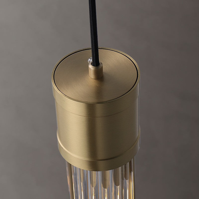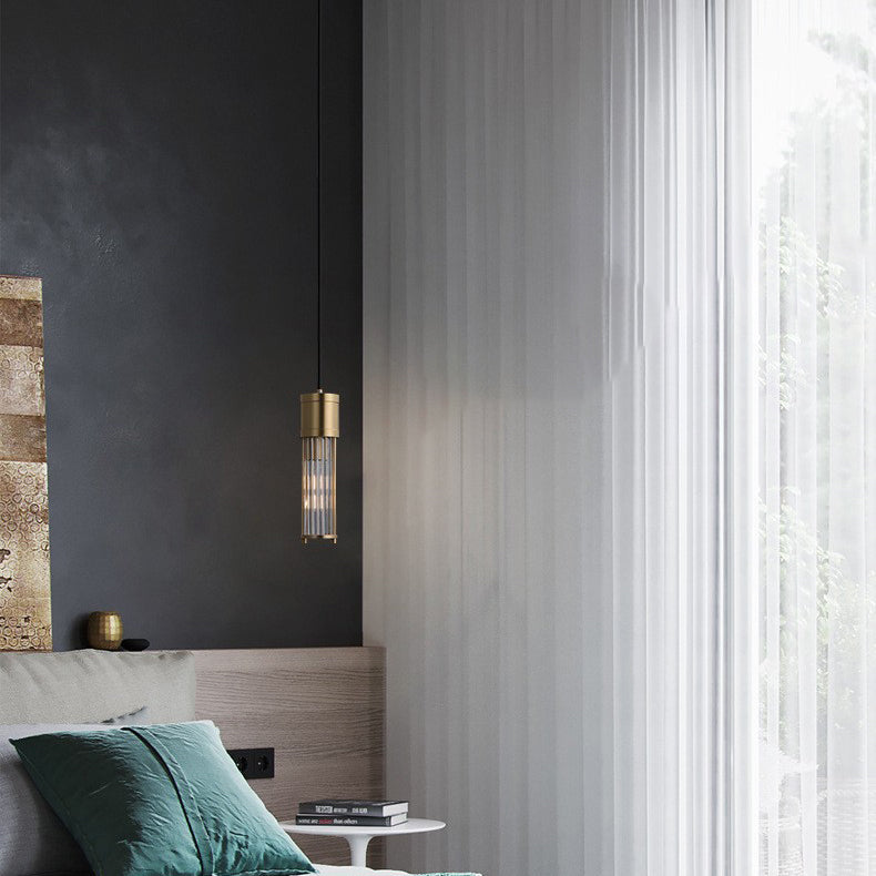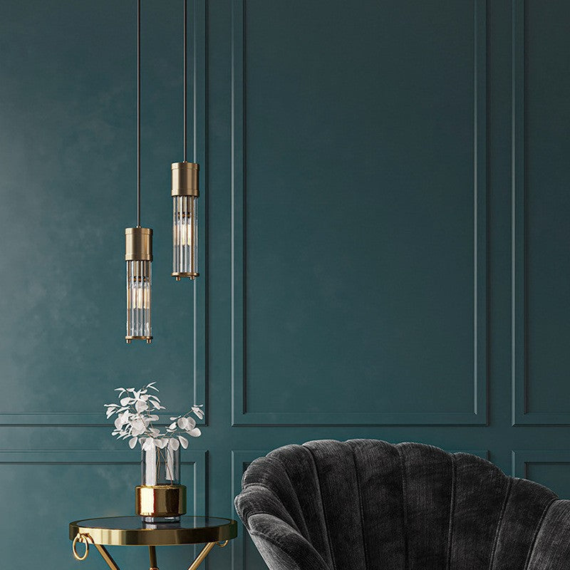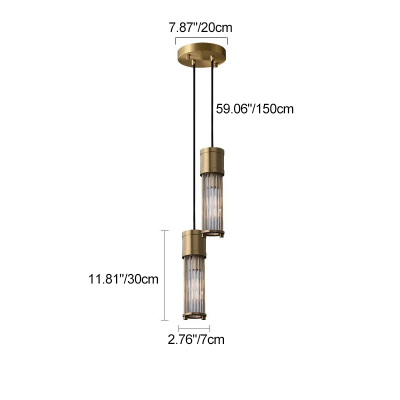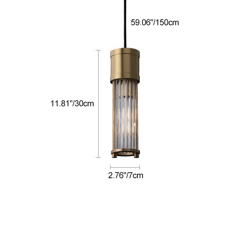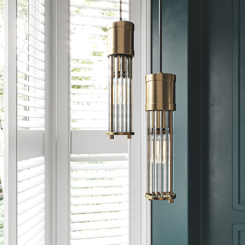 مصباح معلق تقليدي عتيق من الزجاج الأسطواني بجسم من النحاس الصلب، مزود بمصباح واحد لغرفة المعيشة