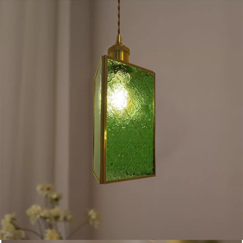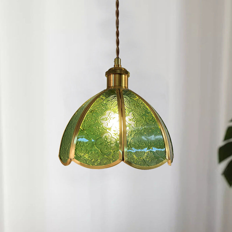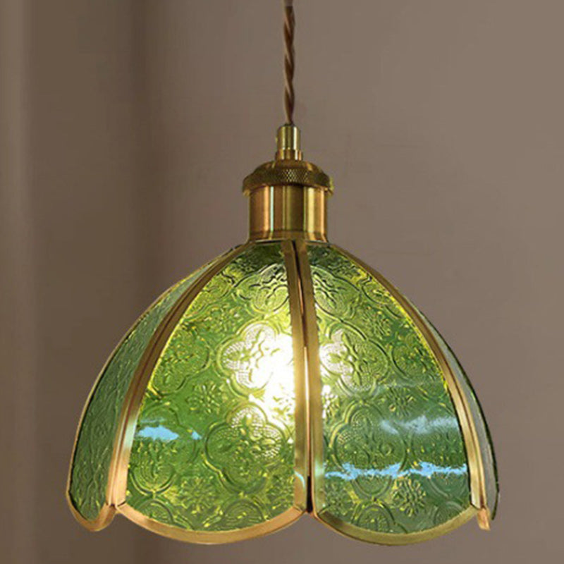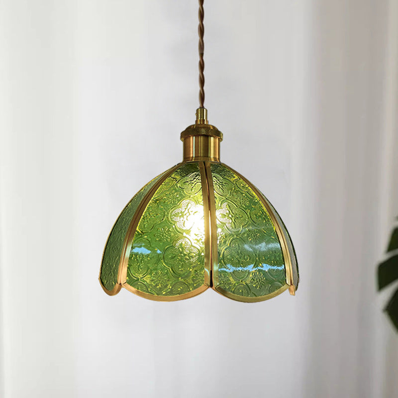 مصباح معلق تقليدي عتيق من النحاس والزجاج بإضاءة واحدة لغرفة المعيشة