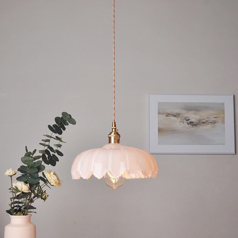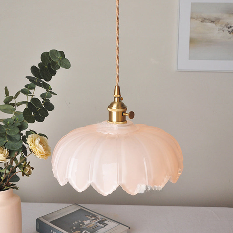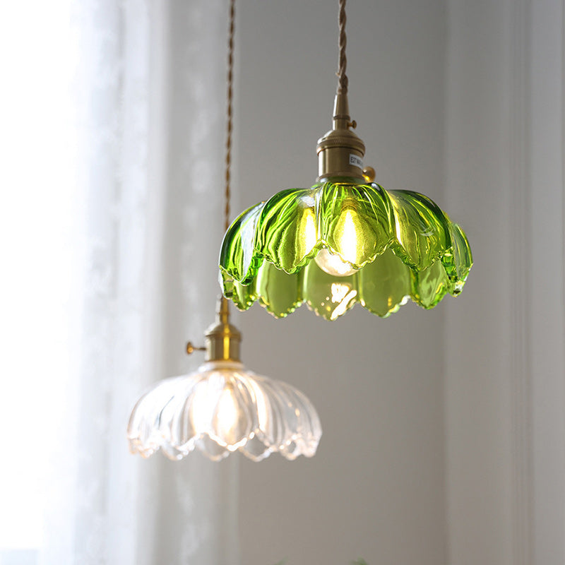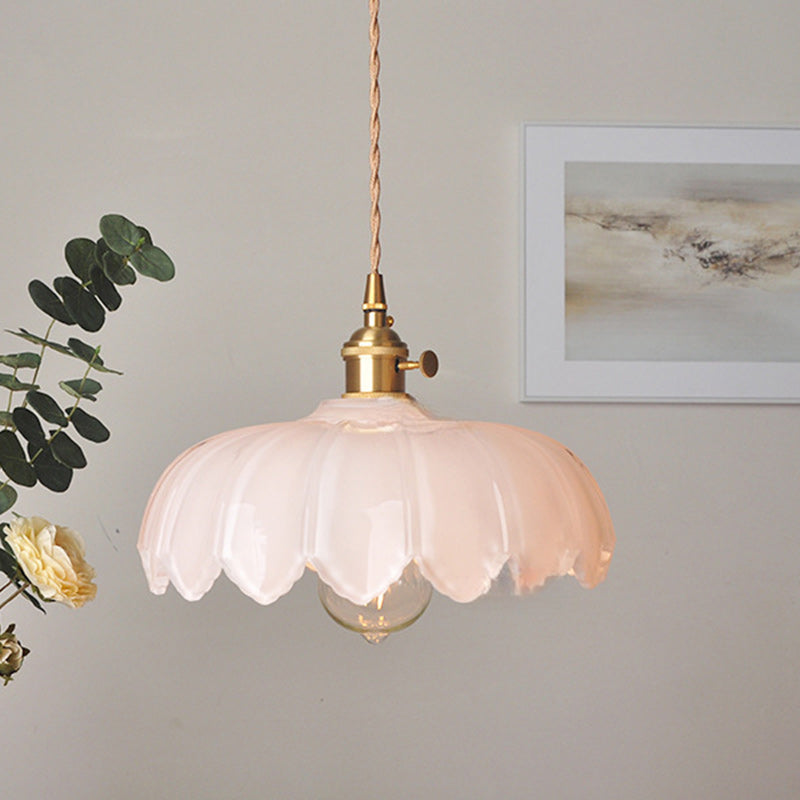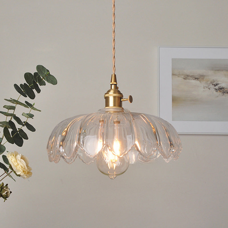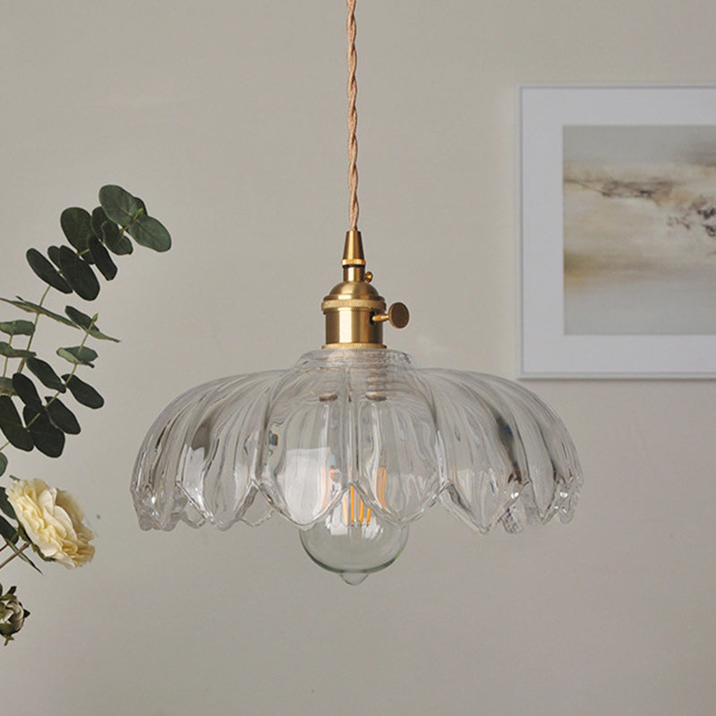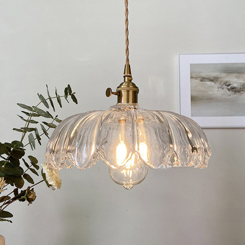 مصباح معلق تقليدي عتيق من النحاس والزجاج بإضاءة واحدة لغرفة المعيشة