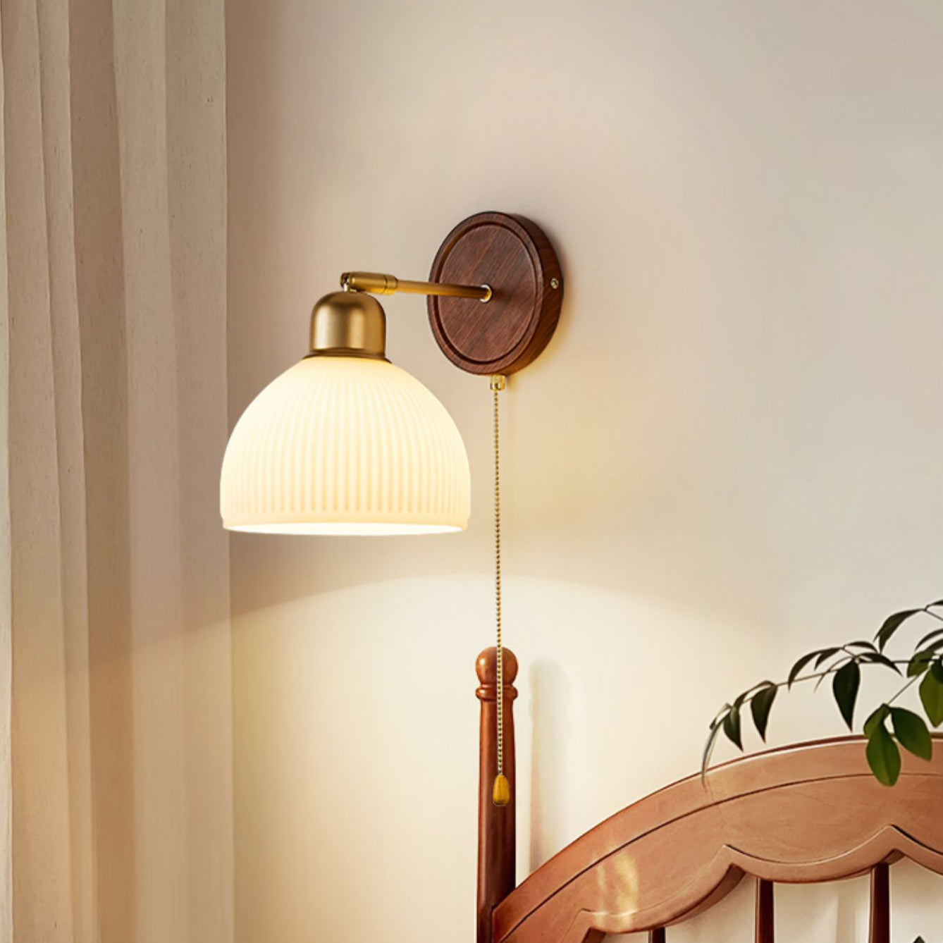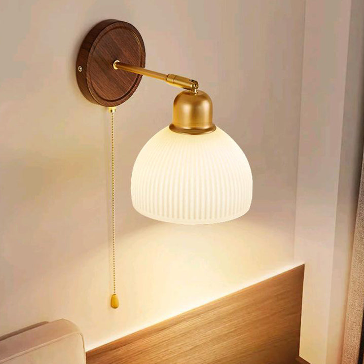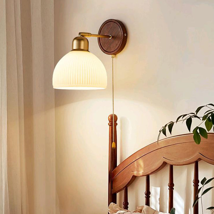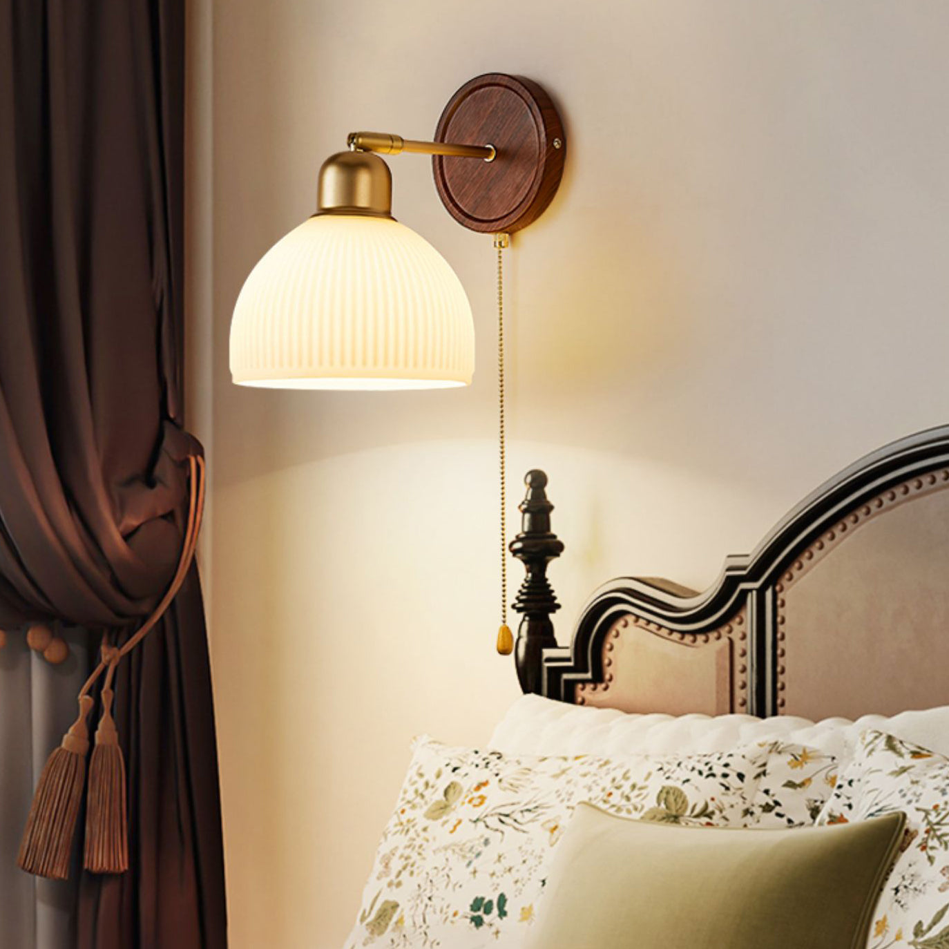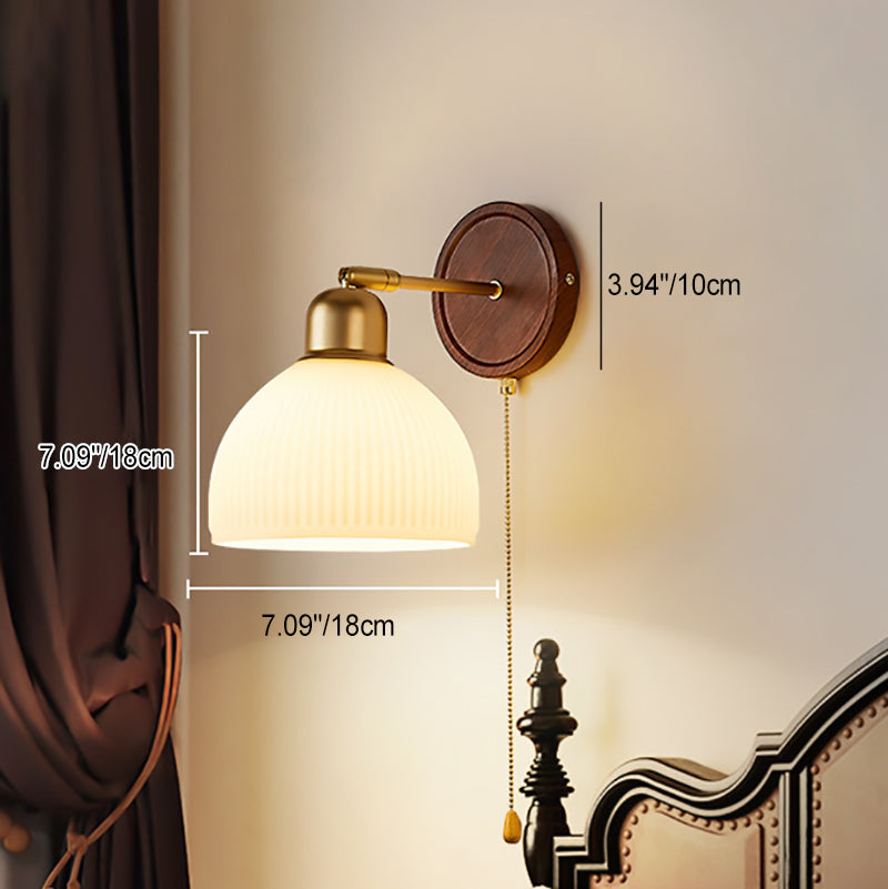مصباح حائطي تقليدي عتيق على شكل قبة نصف دائرية من الحديد والزجاج مزود بإضاءة واحدة لغرفة النوم