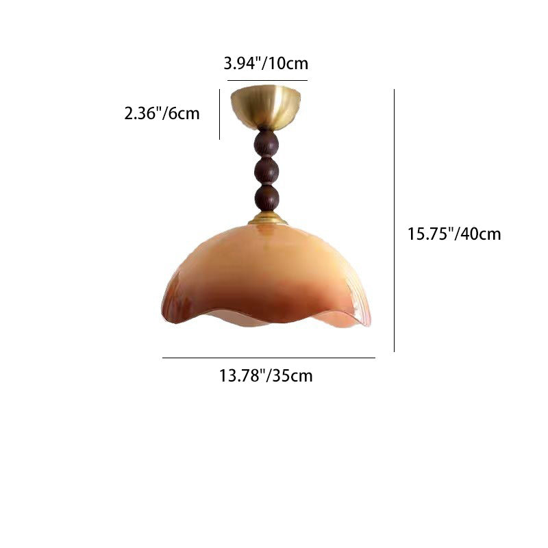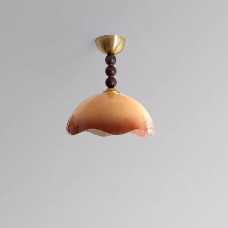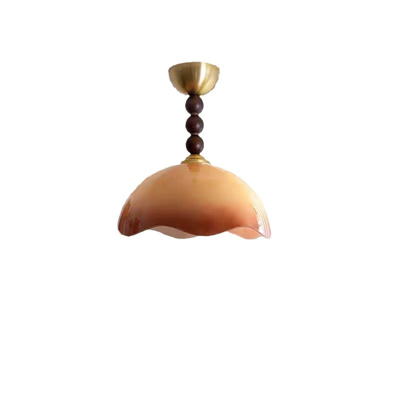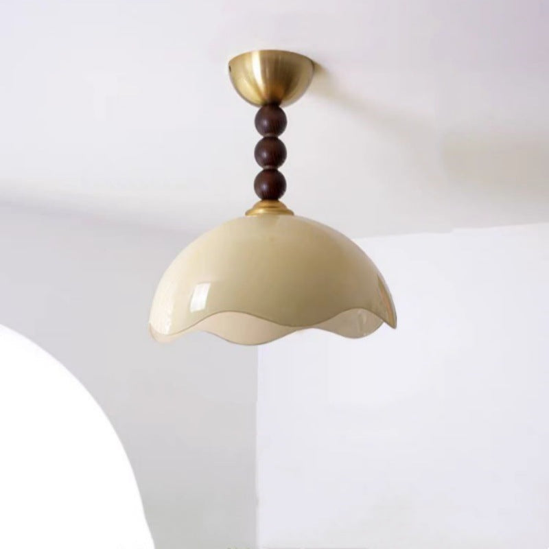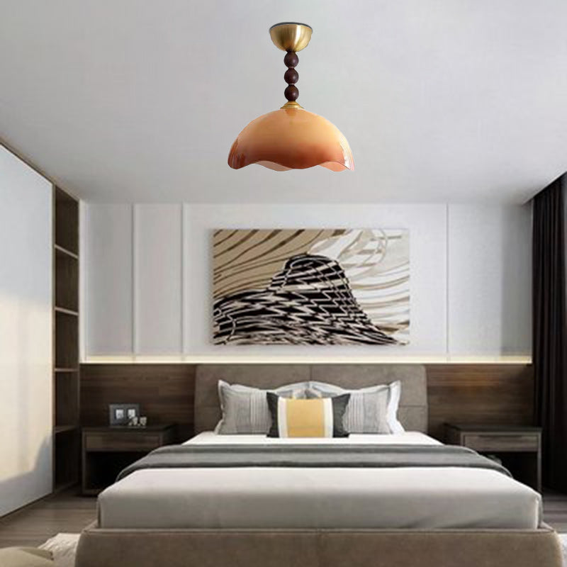 مصباح سقف تقليدي عتيق من الحديد والخشب والزجاج مزود بمصباح واحد وتركيب شبه مسطح لغرفة المعيشة