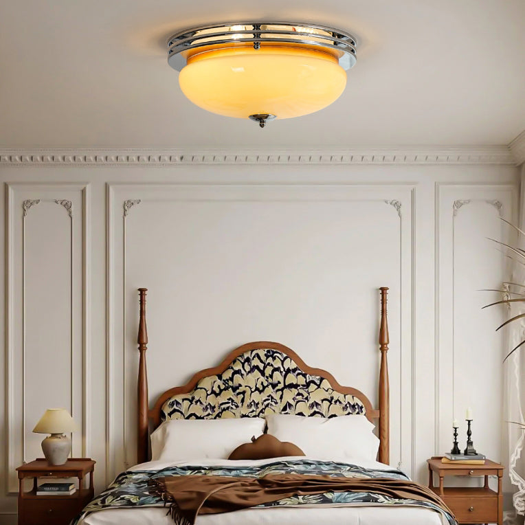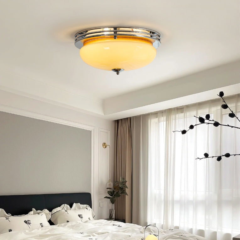 مصباح سقف LED تقليدي عتيق على شكل قبة معدنية زجاجية لغرفة النوم