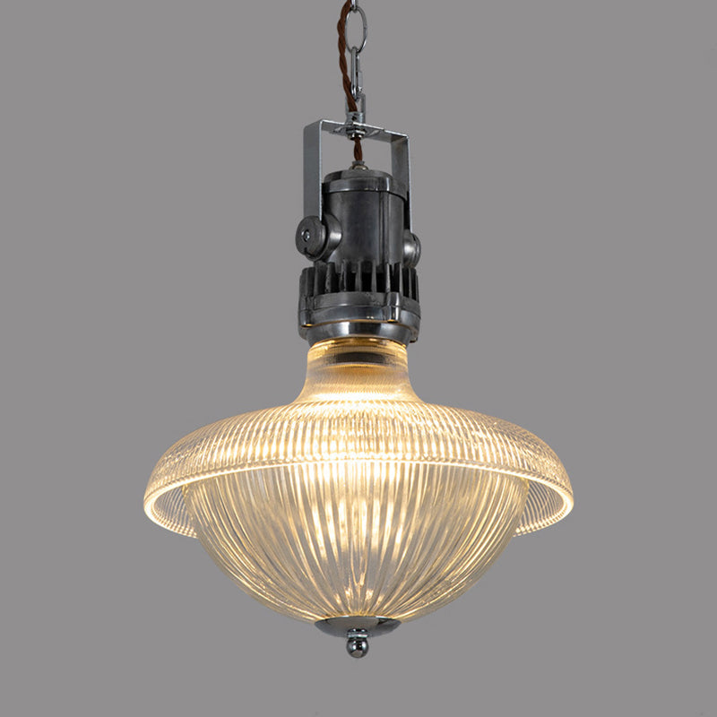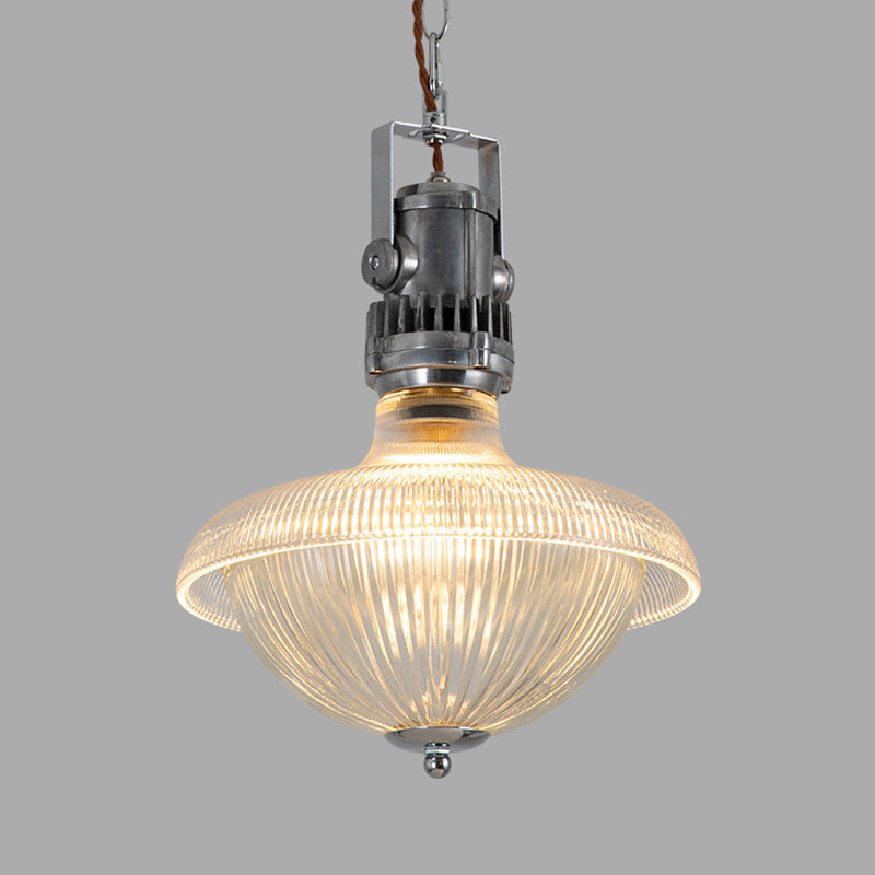 مصباح معلق تقليدي عتيق على شكل وعاء نصف دائري أسطواني من الزجاج والألومنيوم مزود بمصباح واحد لغرفة المعيشة
