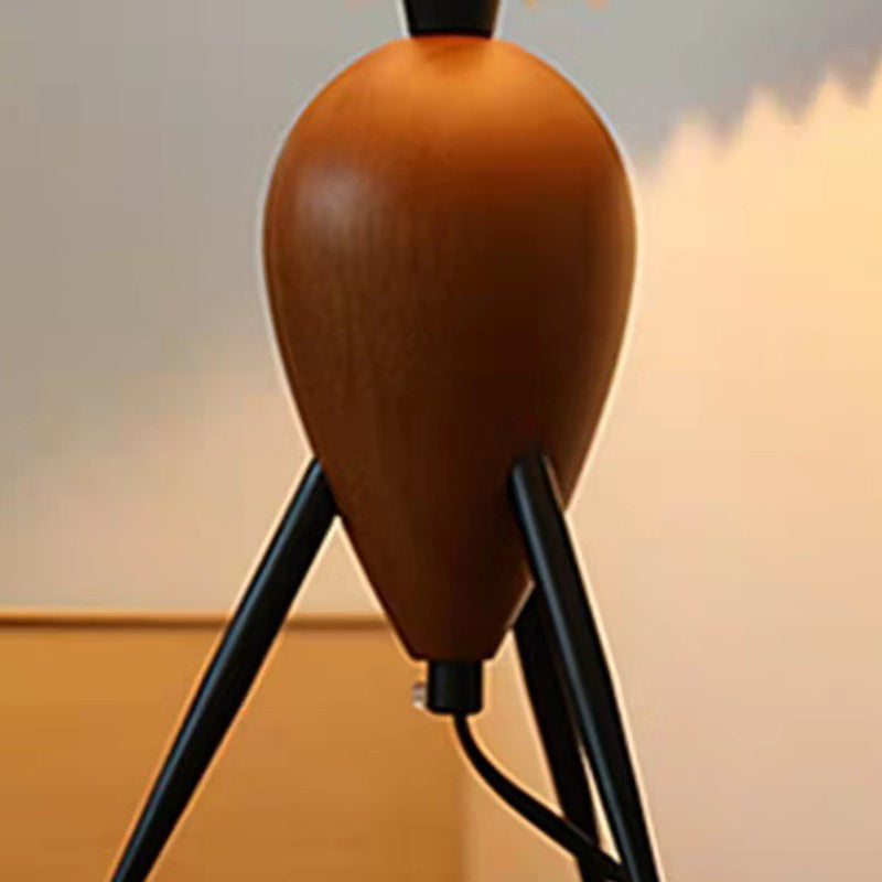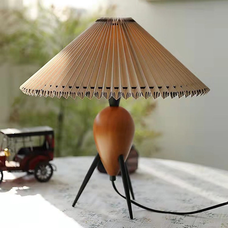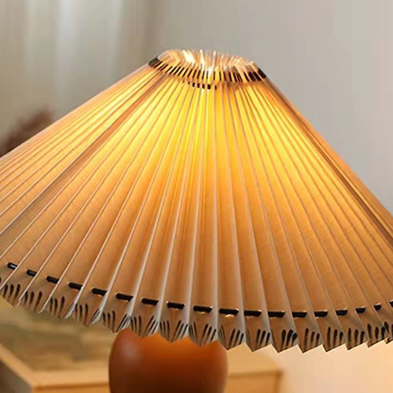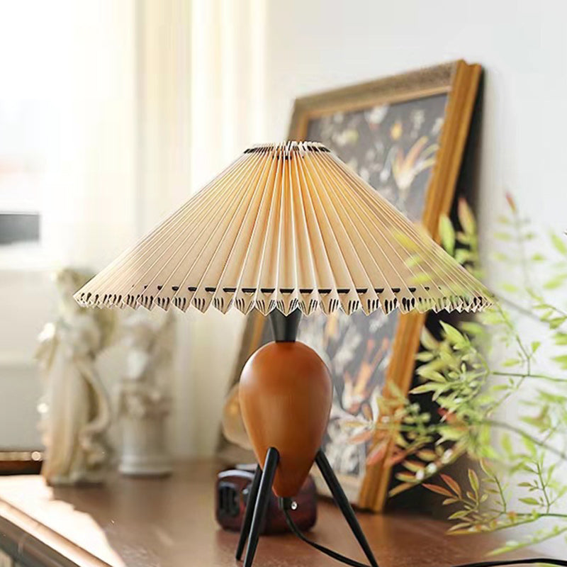 Traditional Vintage Pleated Oval Cone Rubberwood Iron Fabric 1-Light Table Lamp For Bedroom