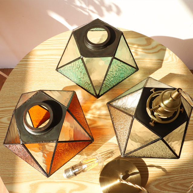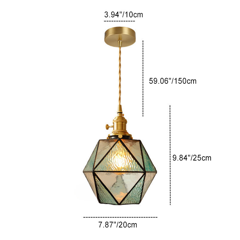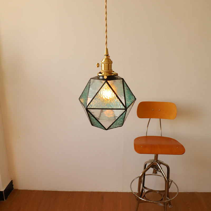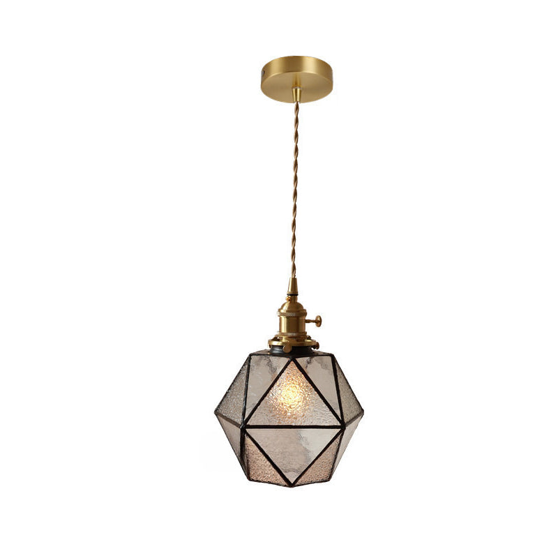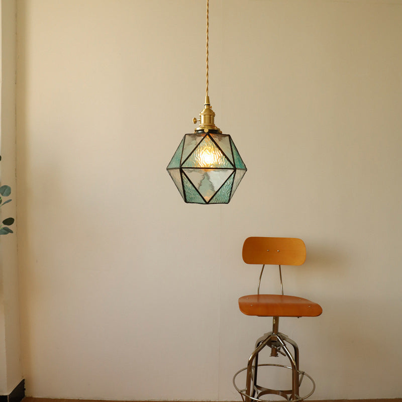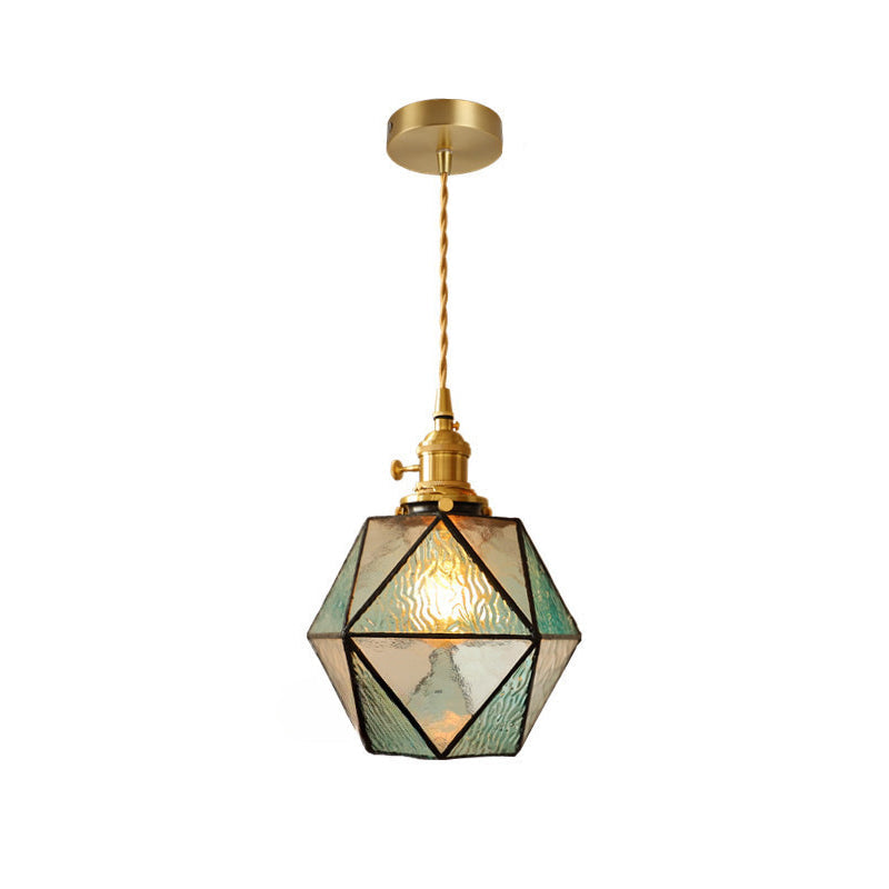 مصباح معلق تقليدي عتيق متعدد الأضلاع من النحاس والزجاج، مزود بمصباح واحد، لغرفة المعيشة