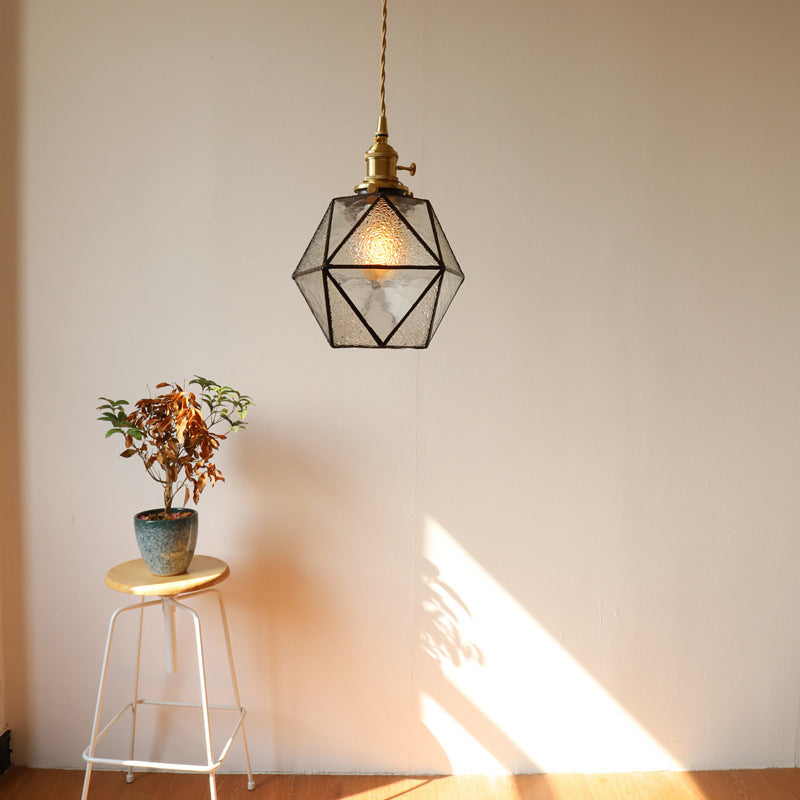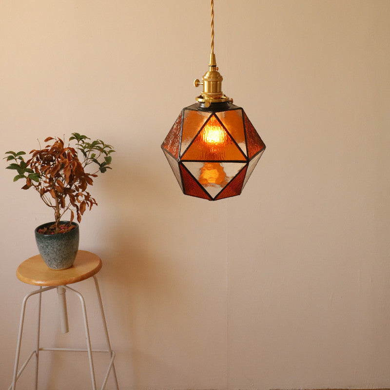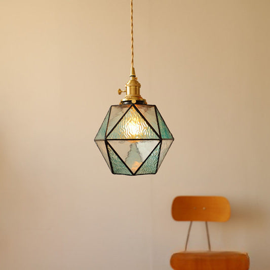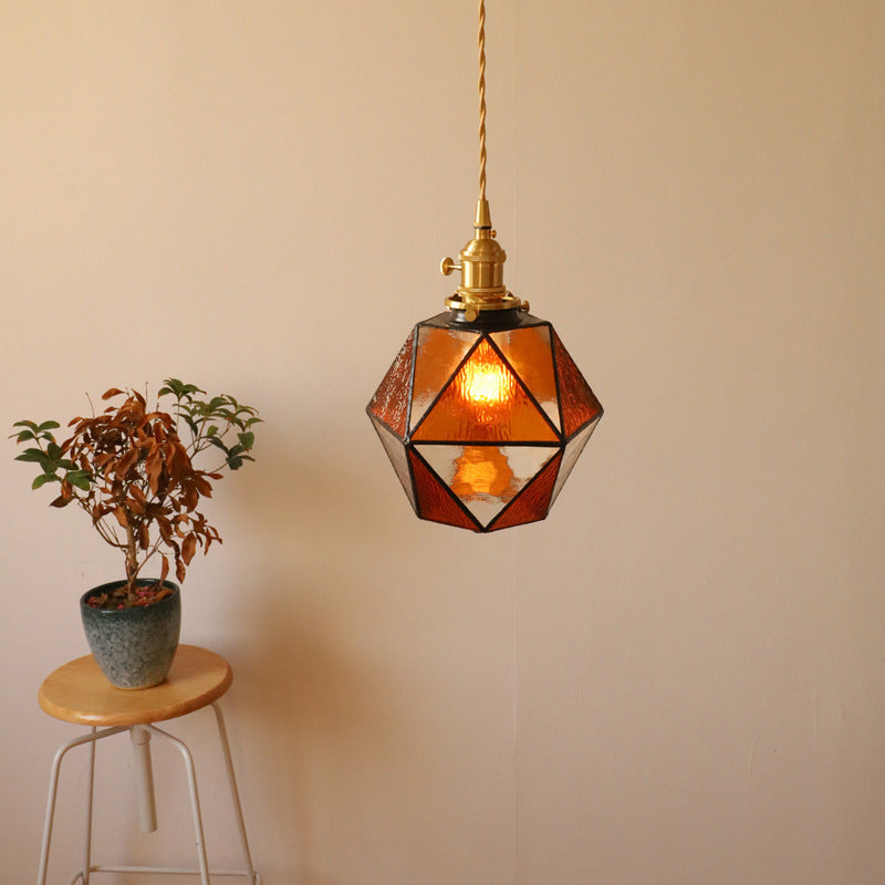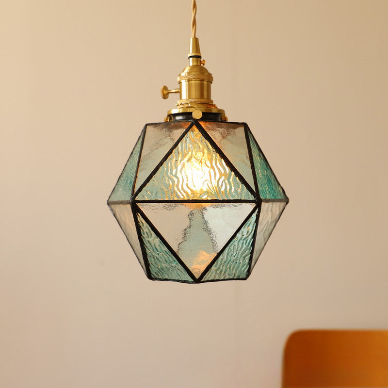 مصباح معلق تقليدي عتيق متعدد الأضلاع من النحاس الملون بضوء واحد لغرفة المعيشة