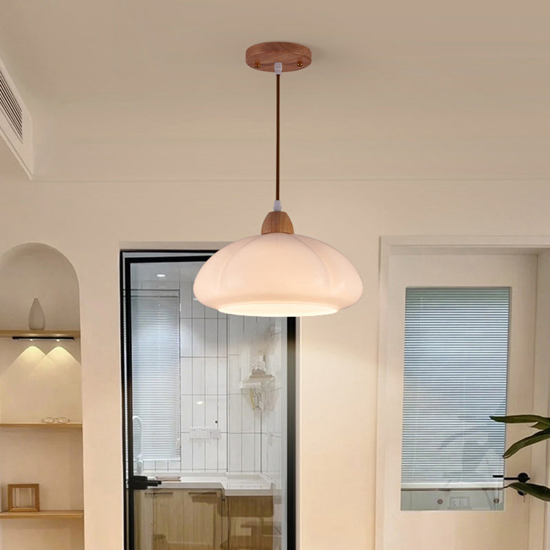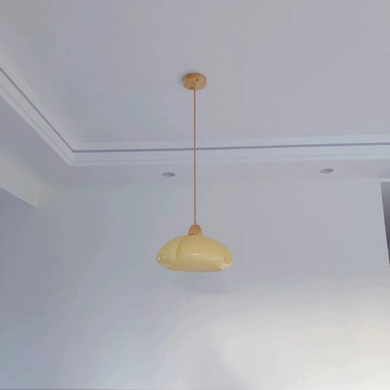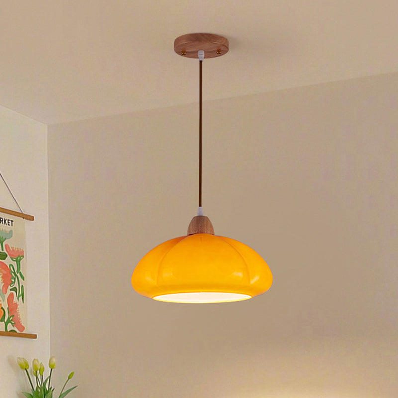 مصباح معلق تقليدي عتيق من خشب اليقطين والزجاج مزود بمصباح واحد لغرفة الطعام