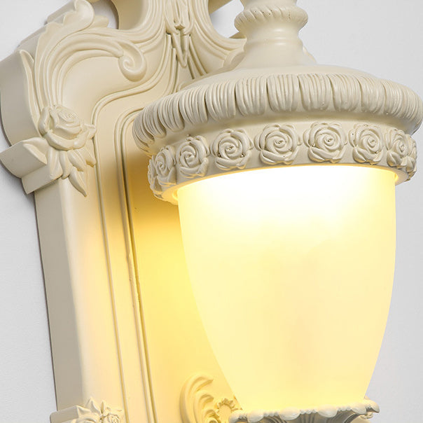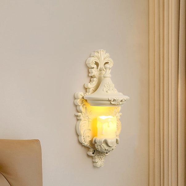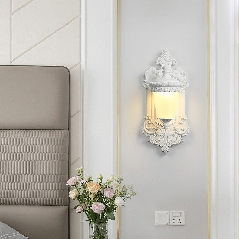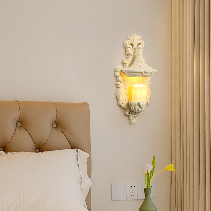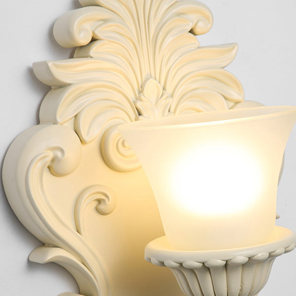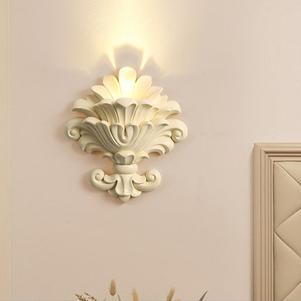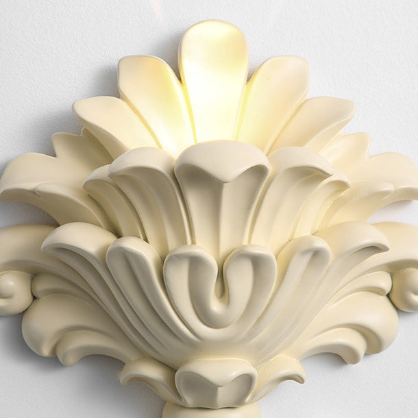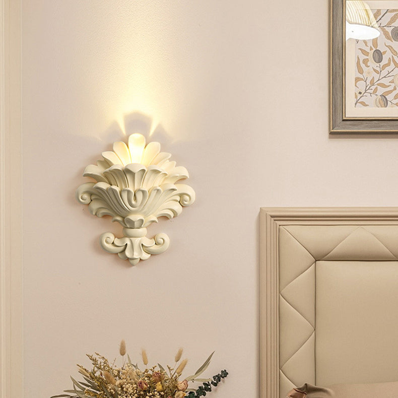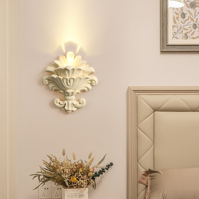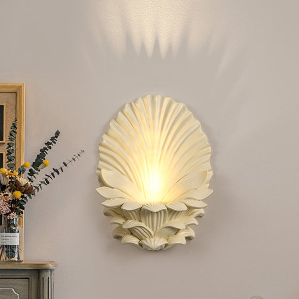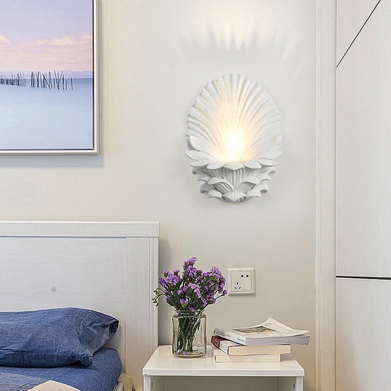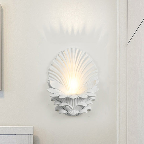 مصباح حائطي تقليدي عتيق من الراتنج الزجاجي المعدني المنحوت على شكل صدفة، مزود بمصباح واحد لغرفة النوم وغرفة المعيشة