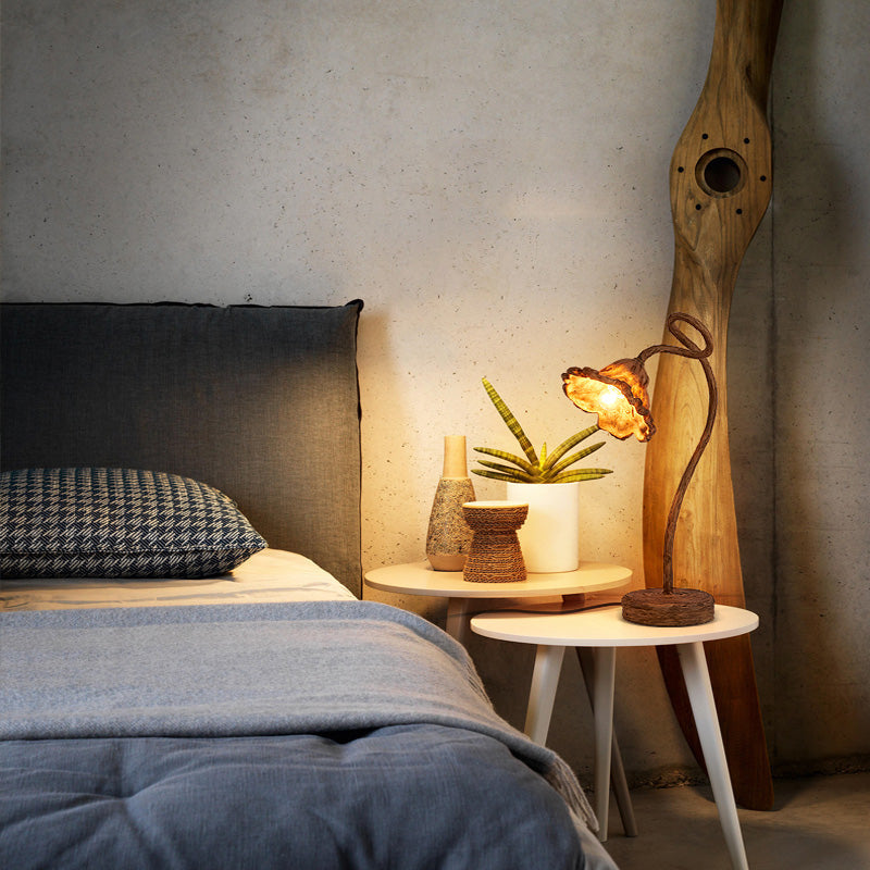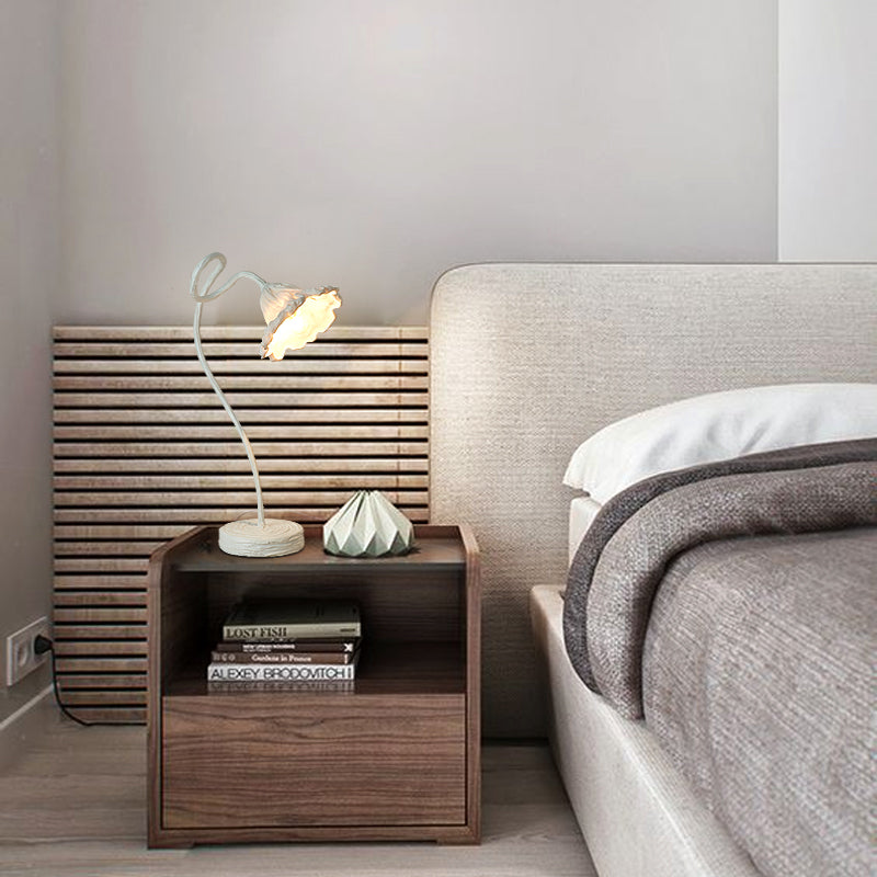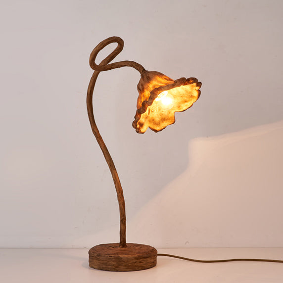 Traditional Vintage Resin Iron Flower Simulation Lotus Leaf 1-Light Table Lamp For Bedside