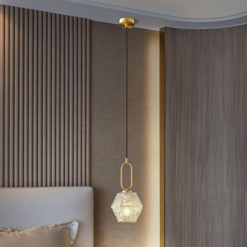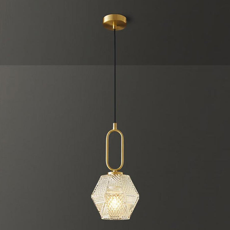 مصباح معلق تقليدي عتيق من النحاس والزجاج، مزود بمصباح واحد، لغرفة المعيشة