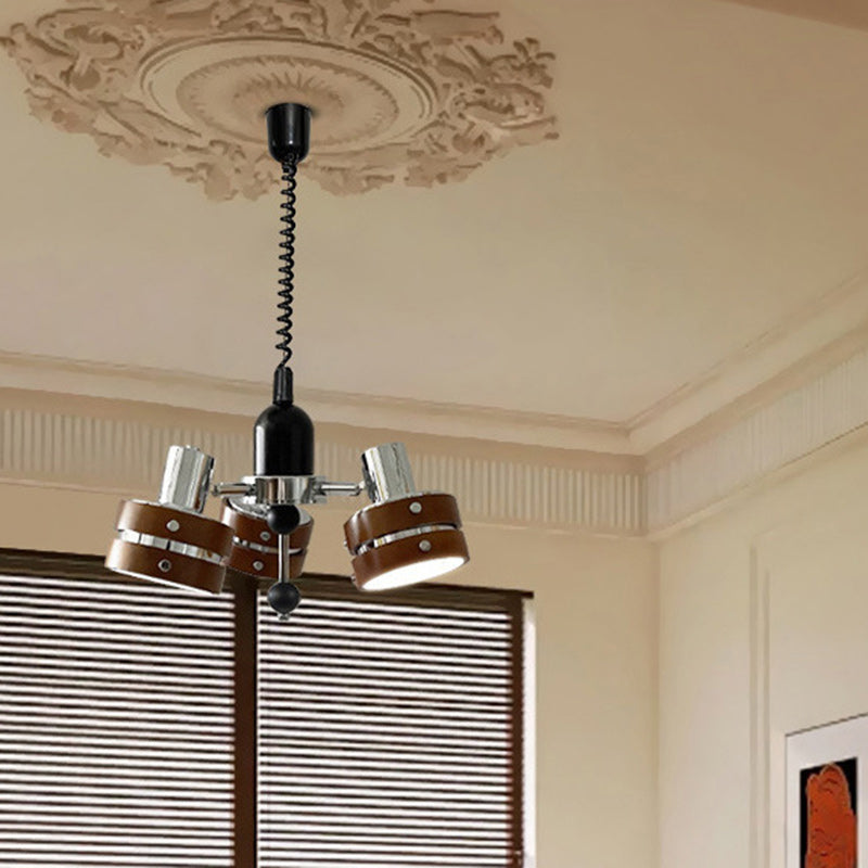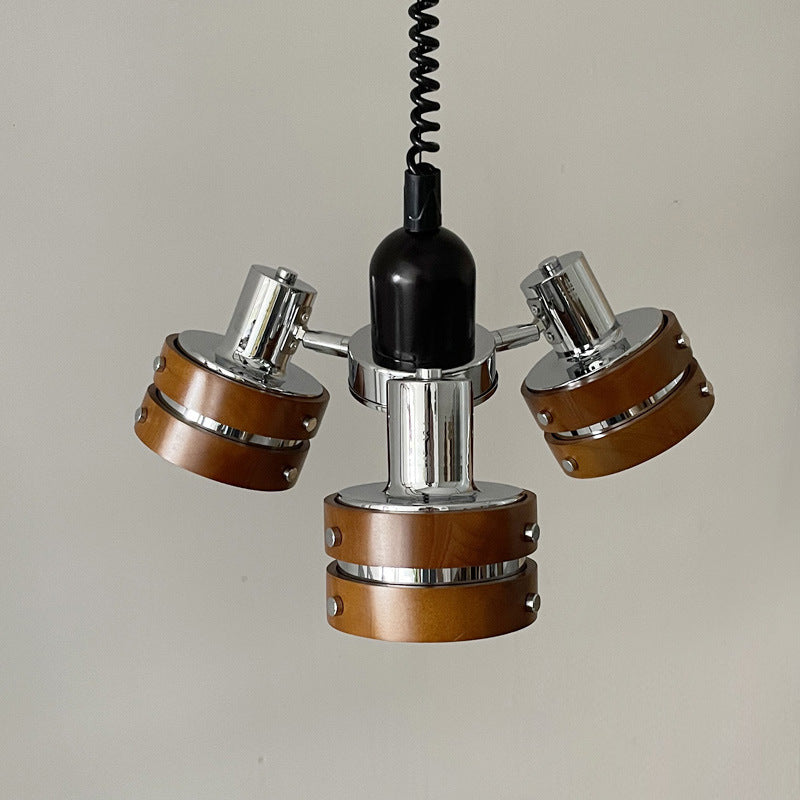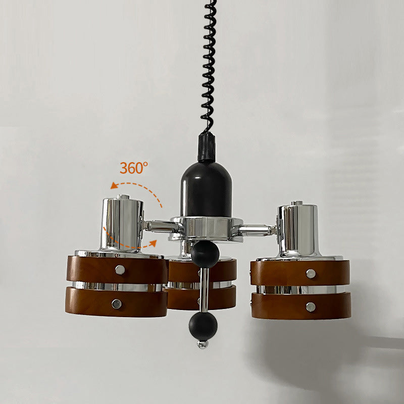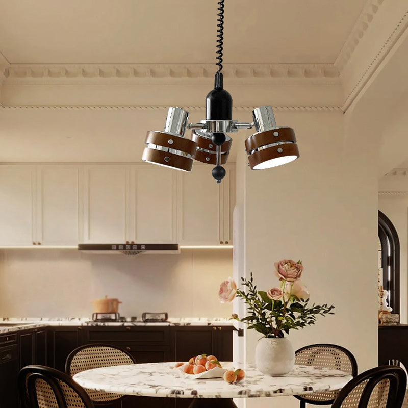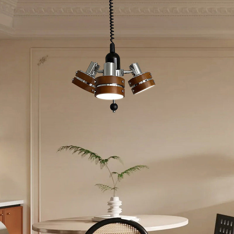 ثريا أسطوانية دائرية عتيقة تقليدية من خشب المطاط بثلاثة مصابيح لغرفة النوم