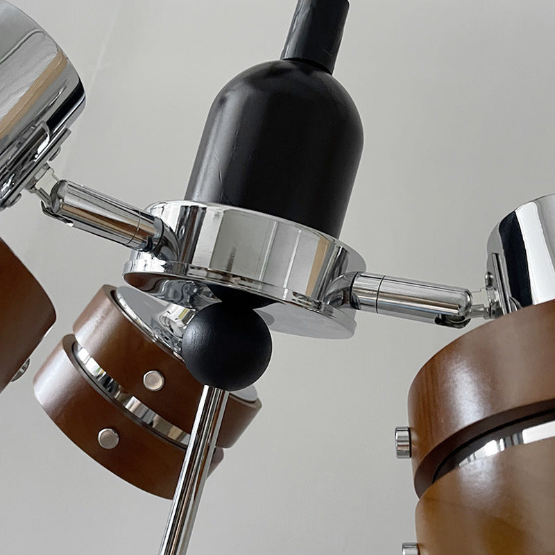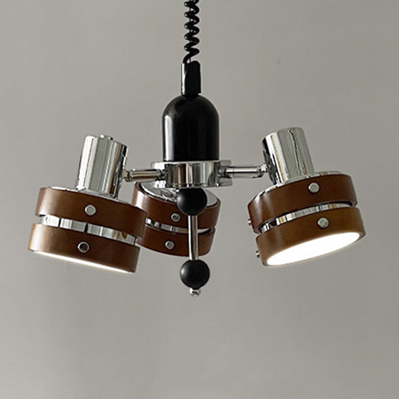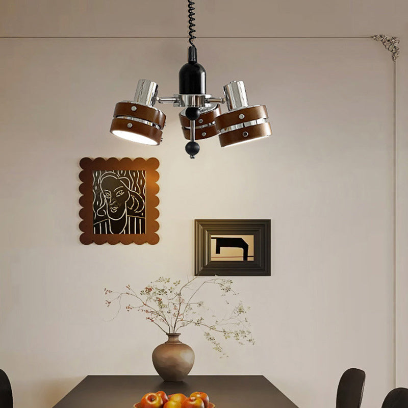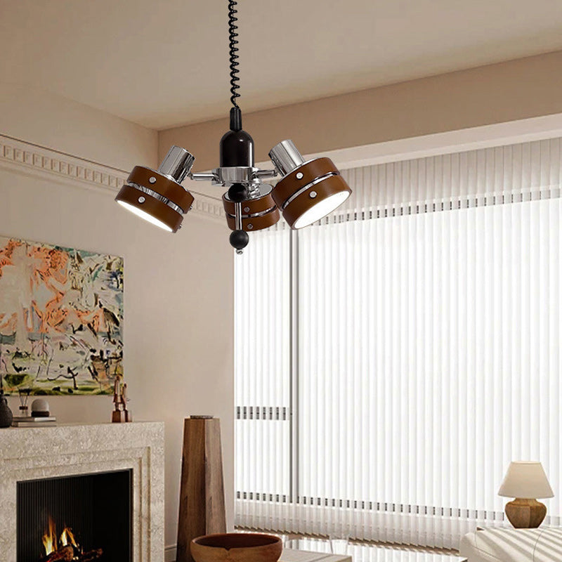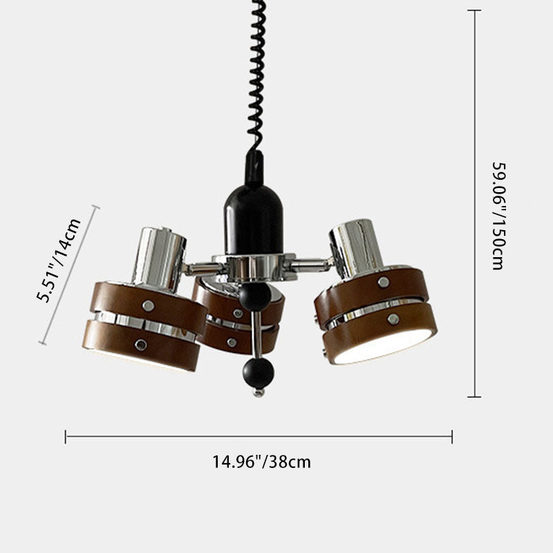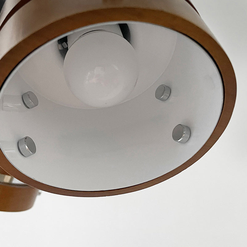 ثريا أسطوانية دائرية عتيقة تقليدية من خشب المطاط بثلاثة مصابيح لغرفة النوم