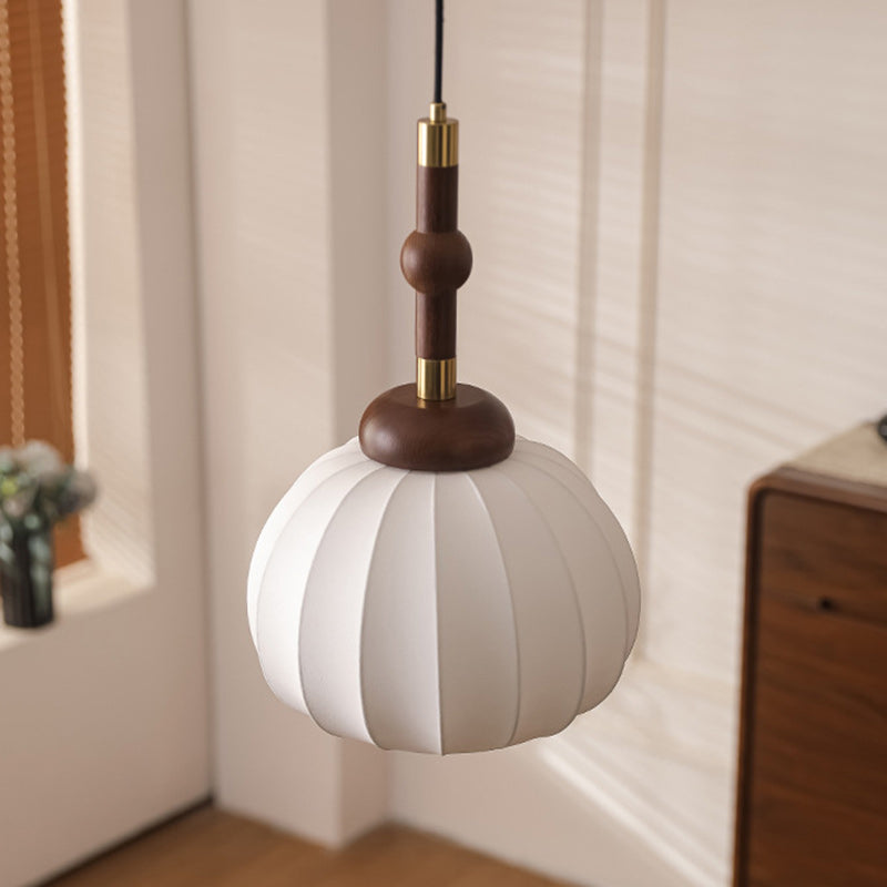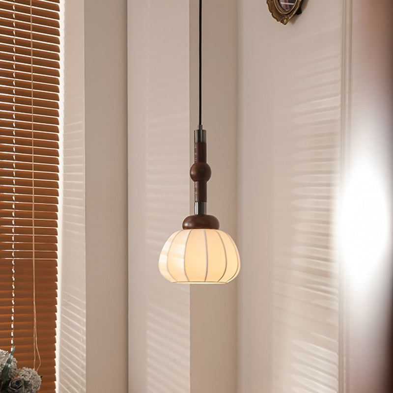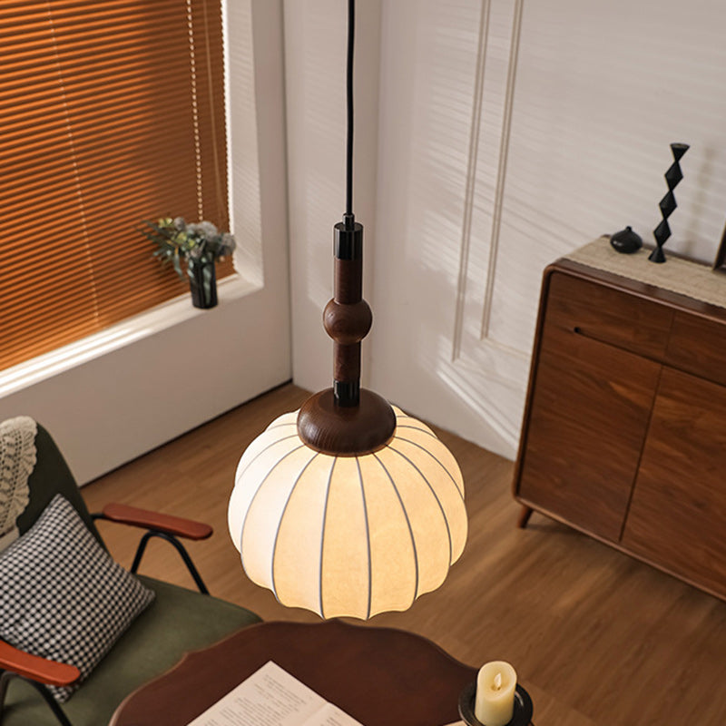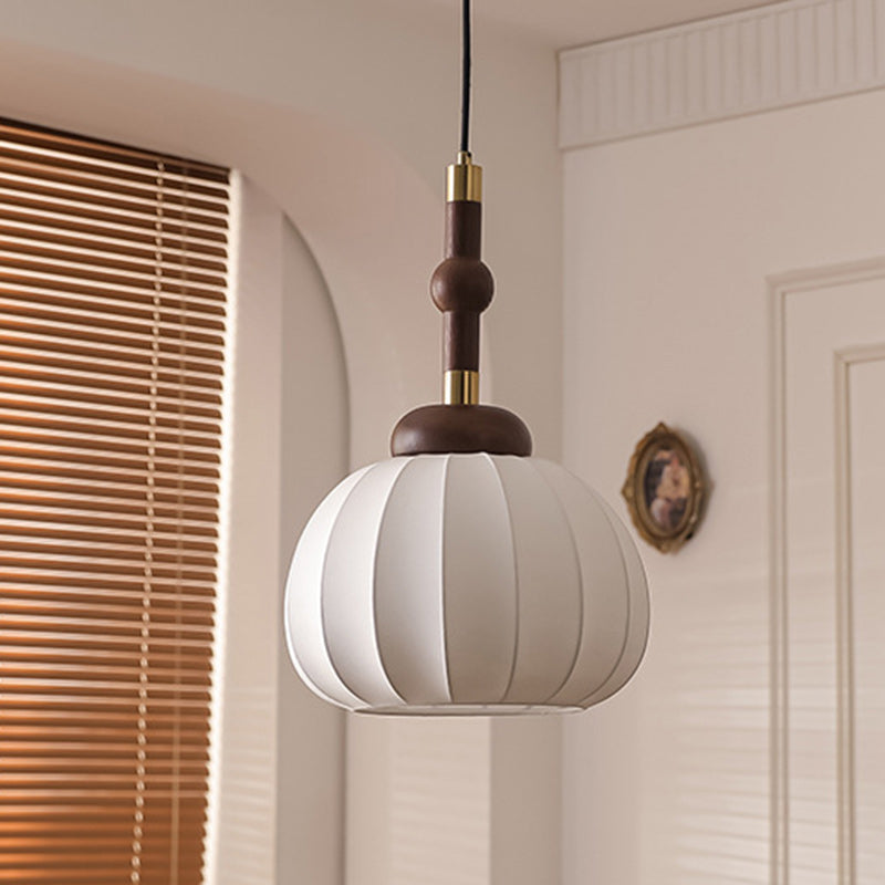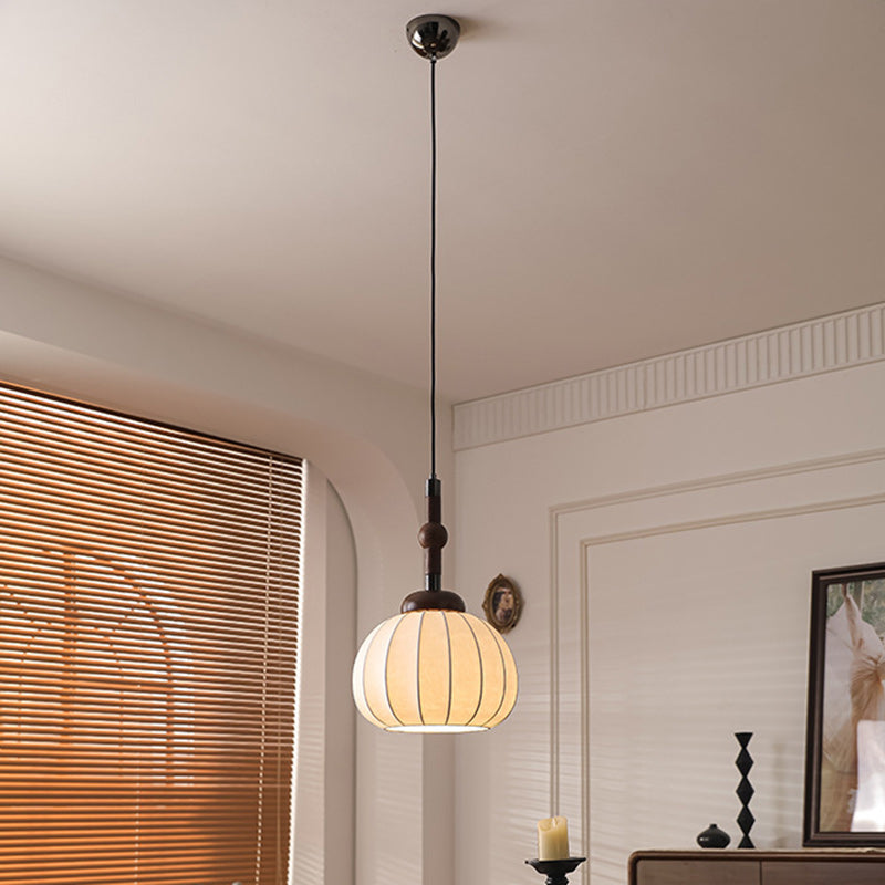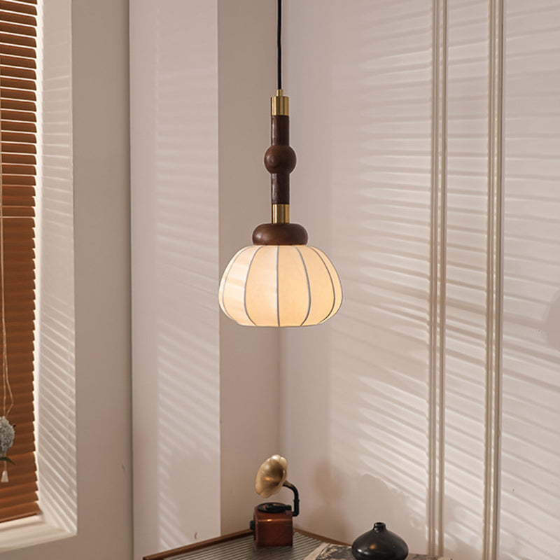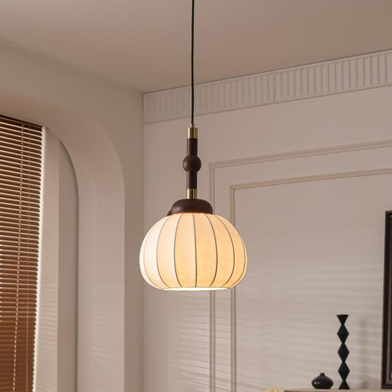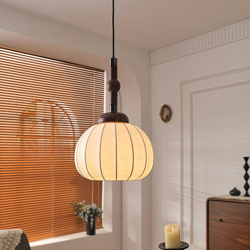 مصباح معلق تقليدي عتيق من خشب الدردار والحرير والألومنيوم بإضاءة واحدة لغرفة النوم