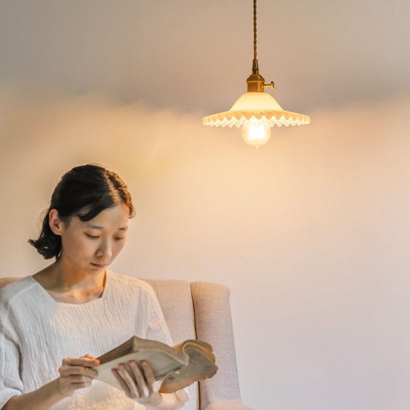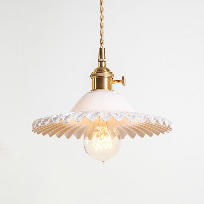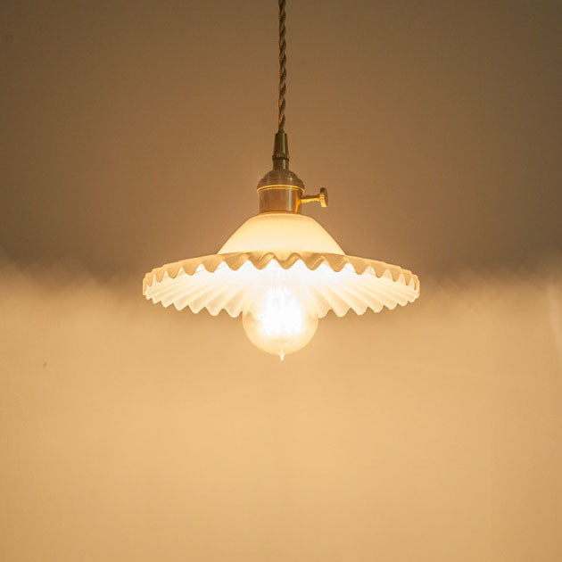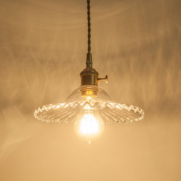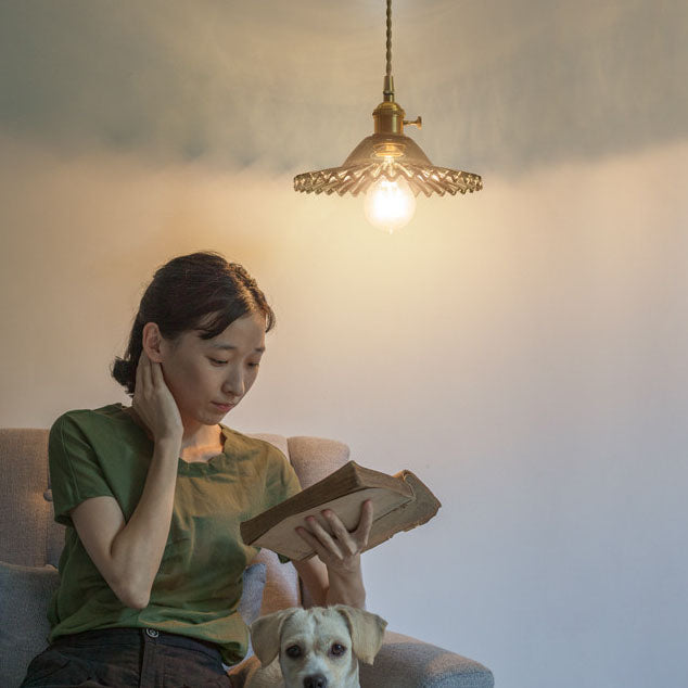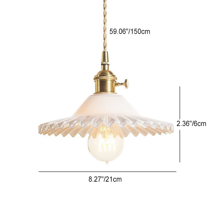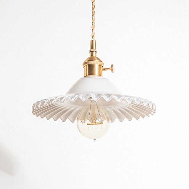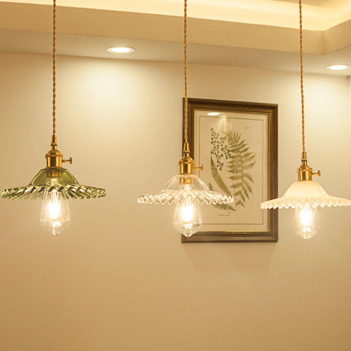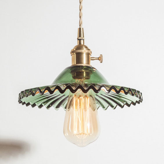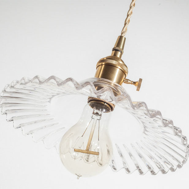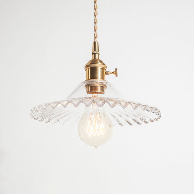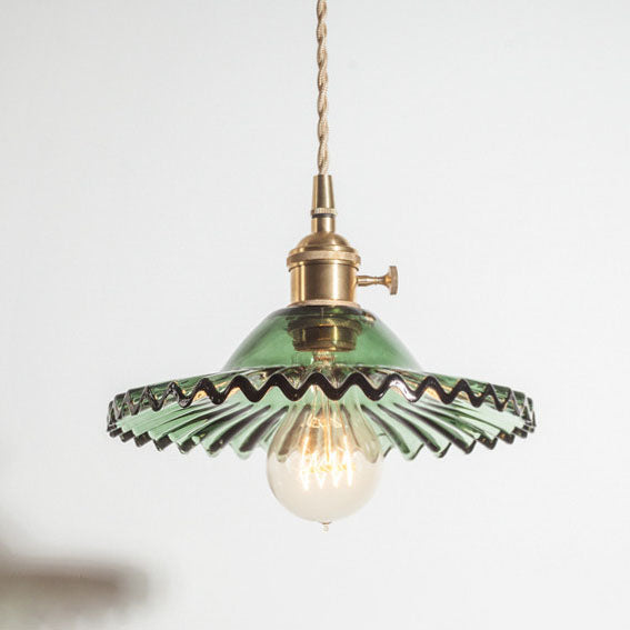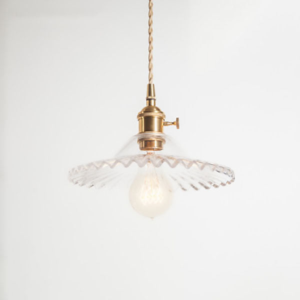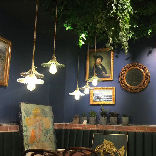 مصباح معلق تقليدي عتيق من النحاس والزجاج بتصميم دائري متموج لغرفة المعيشة