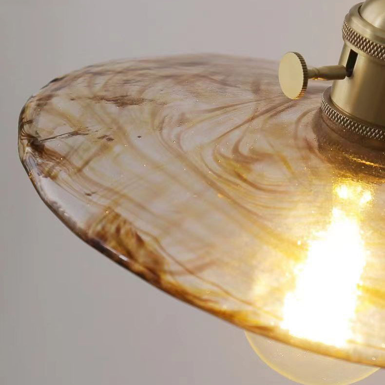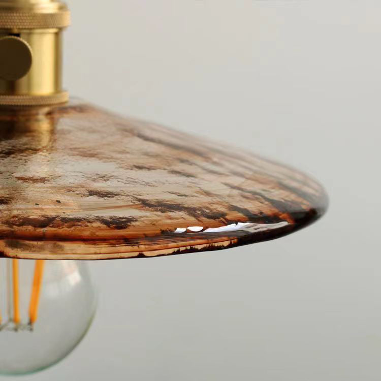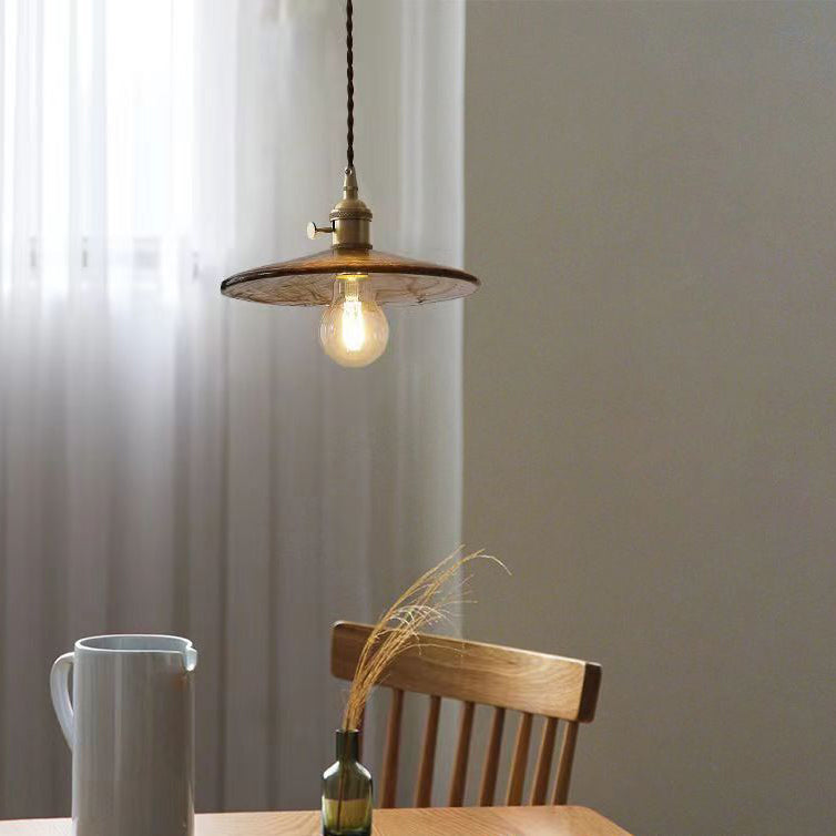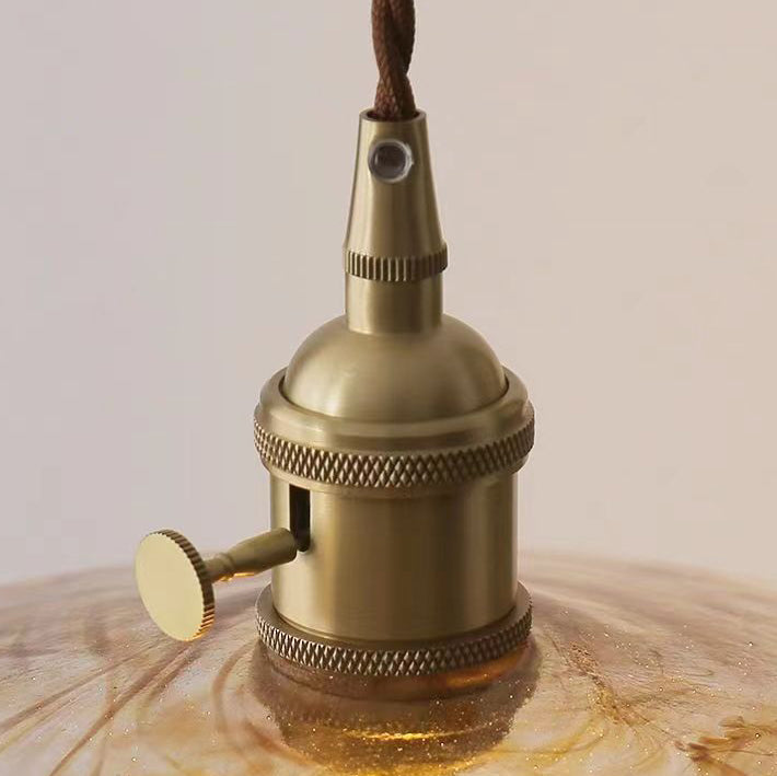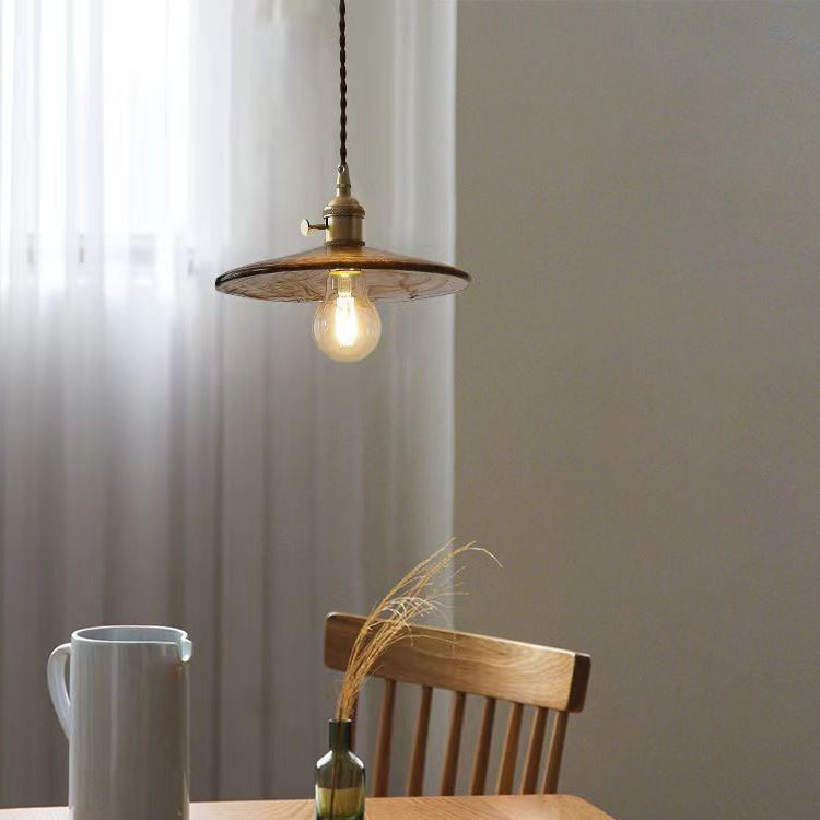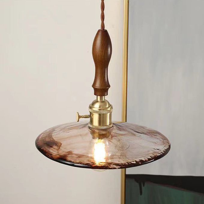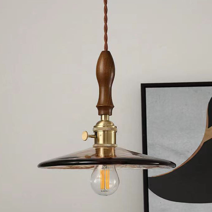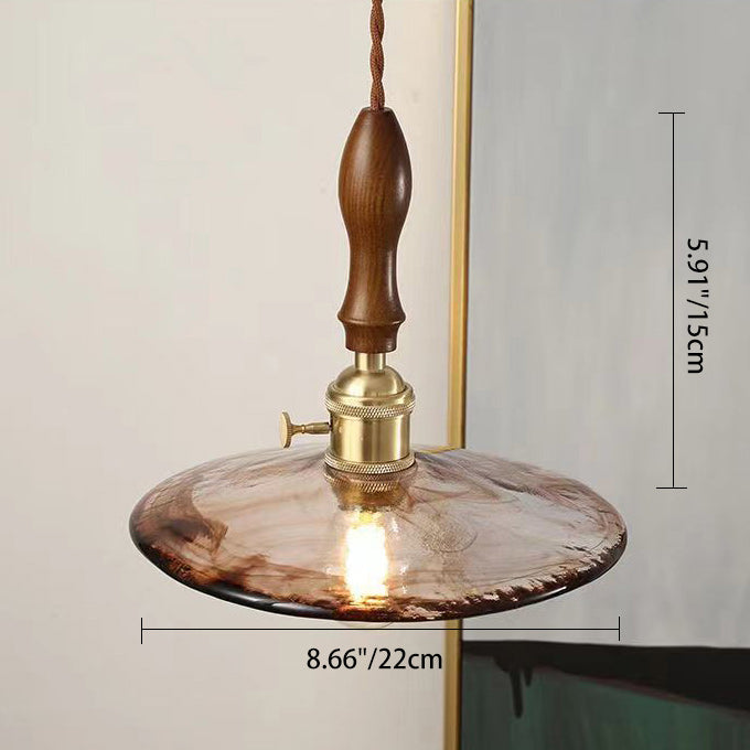مصباح معلق دائري تقليدي عتيق من الخشب والنحاس والزجاج، مزود بمصباح واحد لغرفة المعيشة
