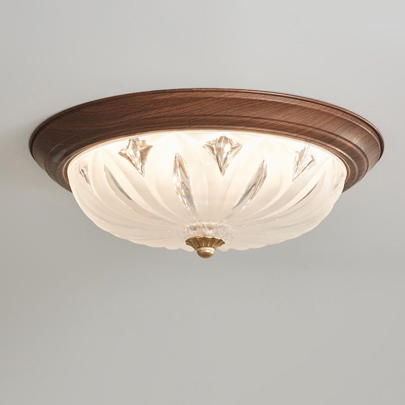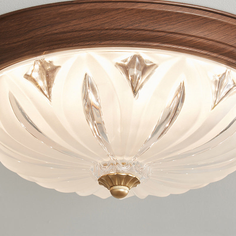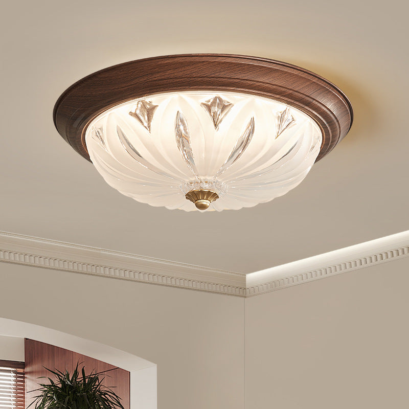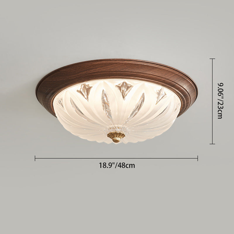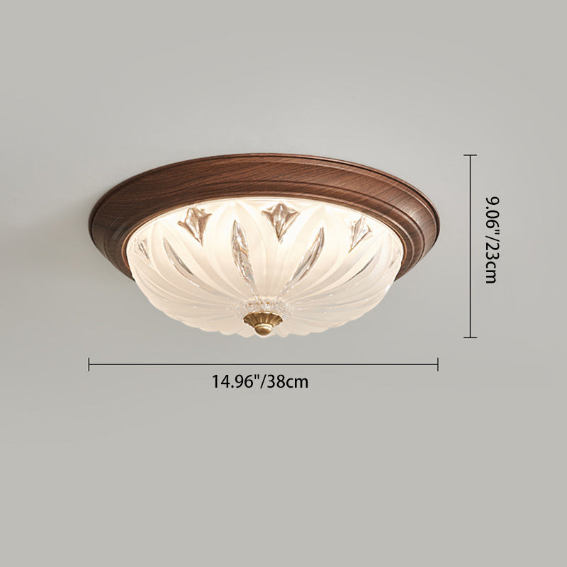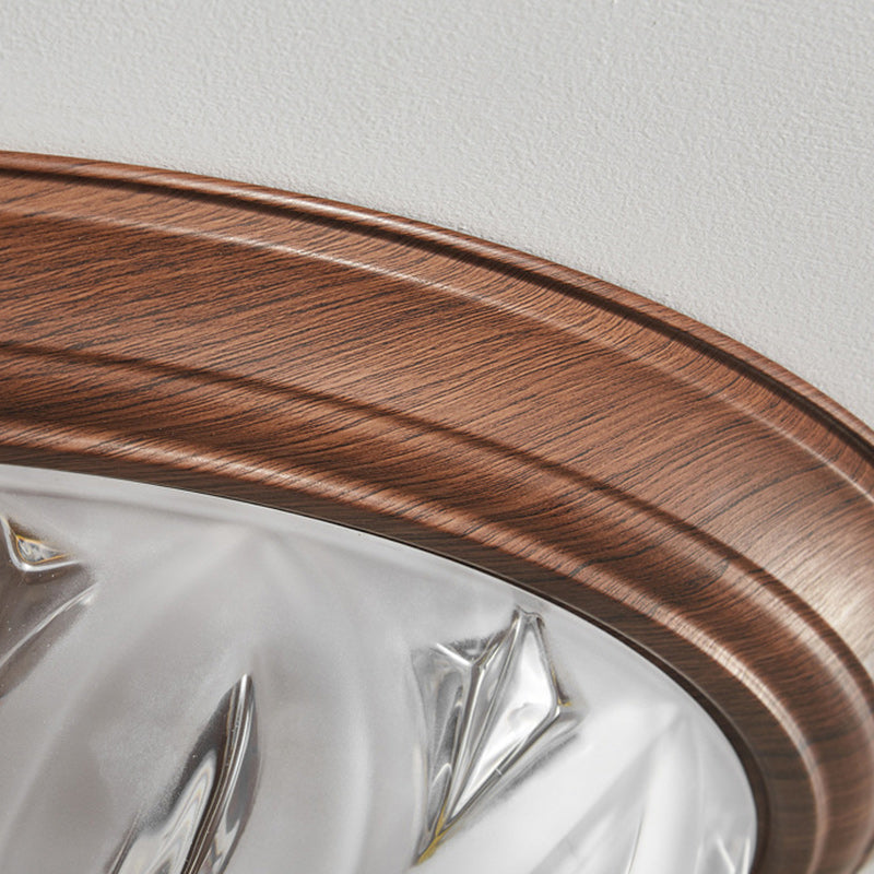 مصباح سقف LED دائري تقليدي عتيق من الخشب والزجاج لغرفة المعيشة