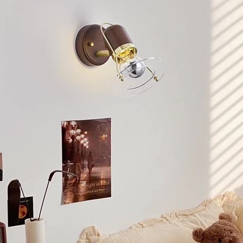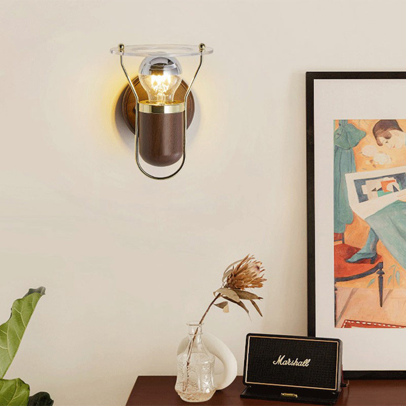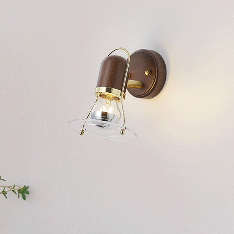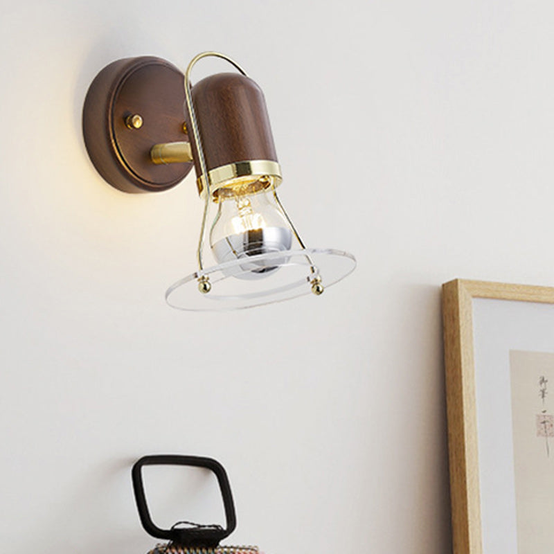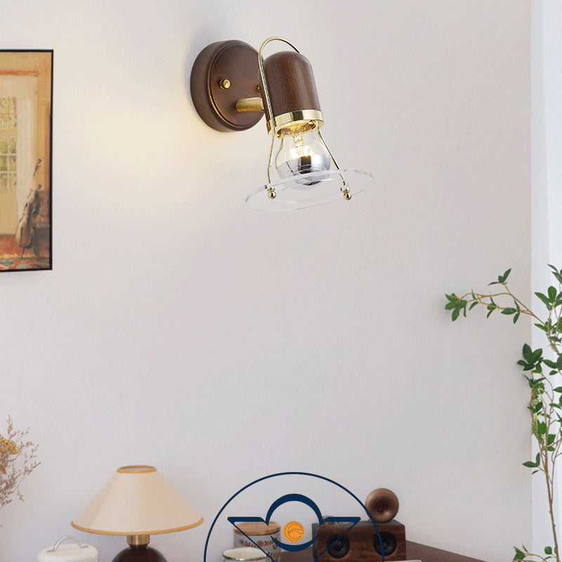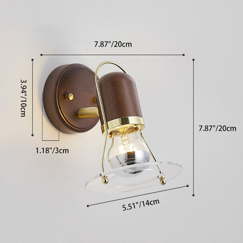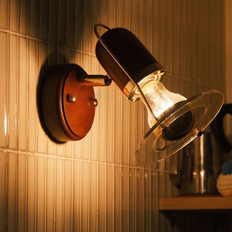 مصباح حائطي دائري عتيق تقليدي مصنوع من الخشب والحديد والأكريليك مزود بإضاءة واحدة لغرفة المعيشة