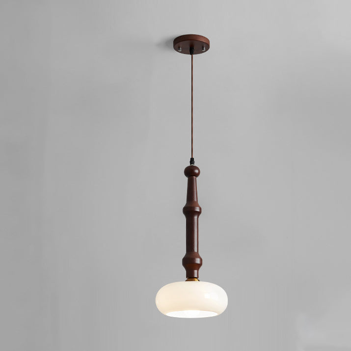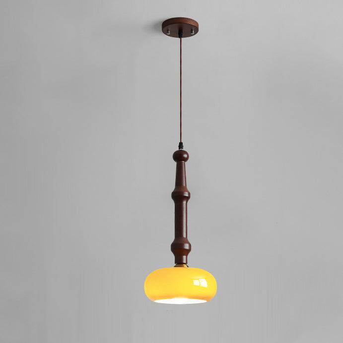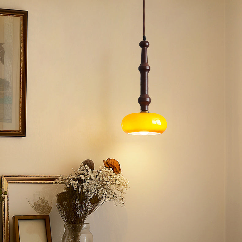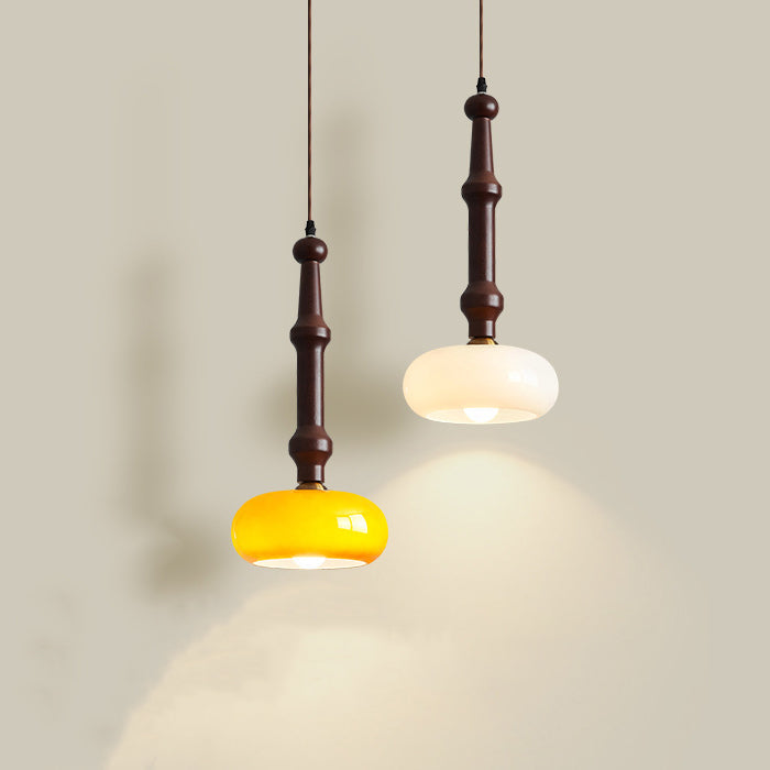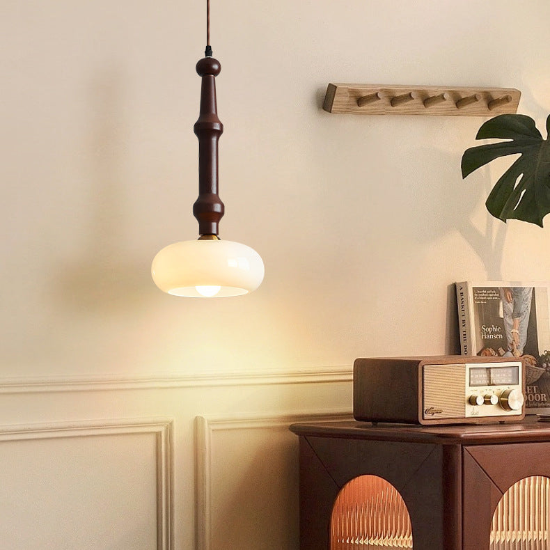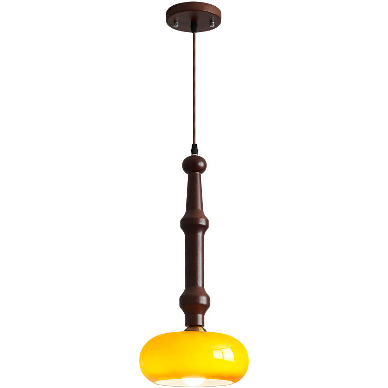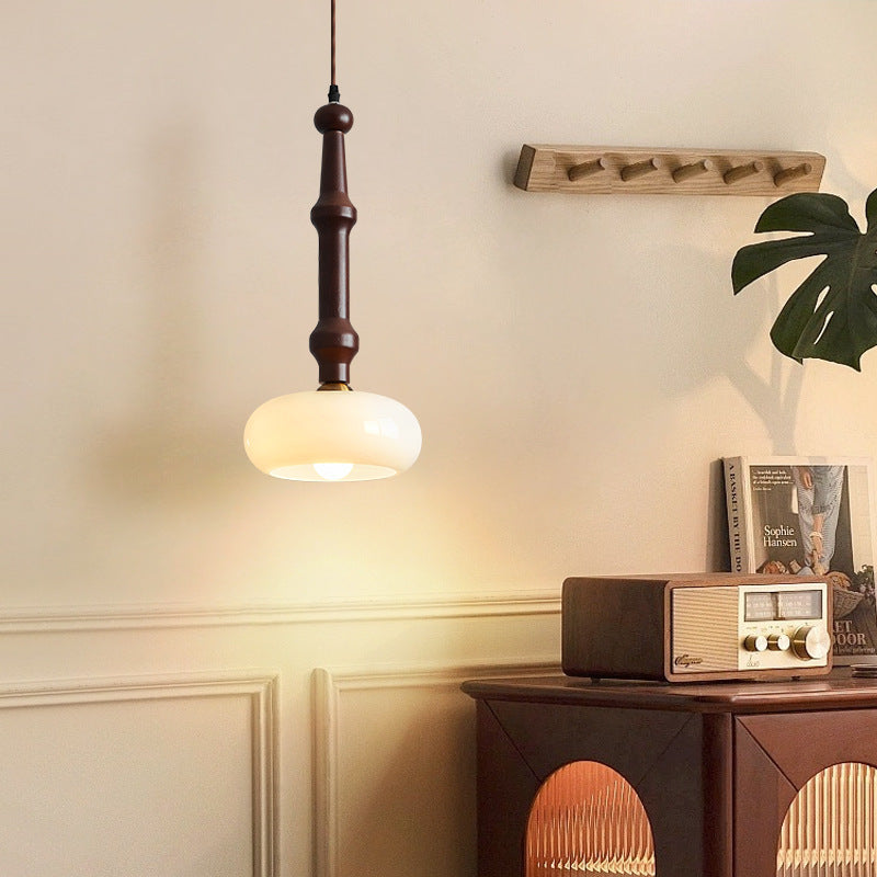 مصباح معلق تقليدي عتيق من خشب المطاط والزجاج والأسطوانة المسطحة المستديرة مزود بمصباح واحد لغرفة النوم وغرفة المعيشة