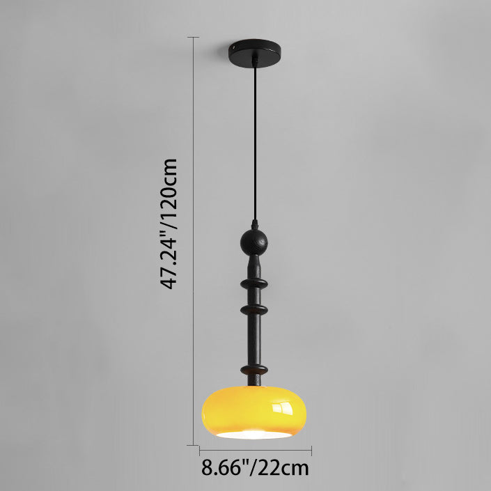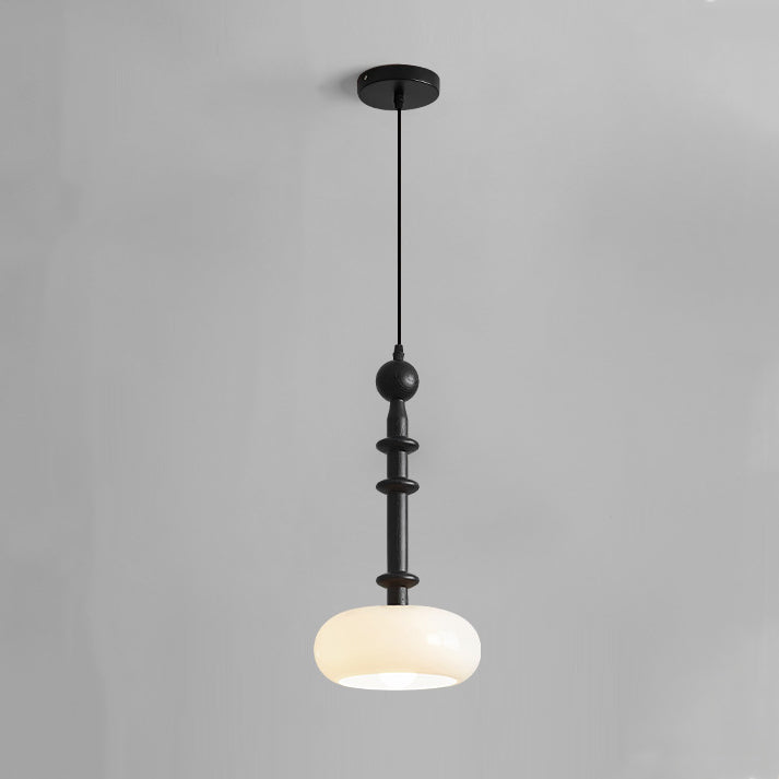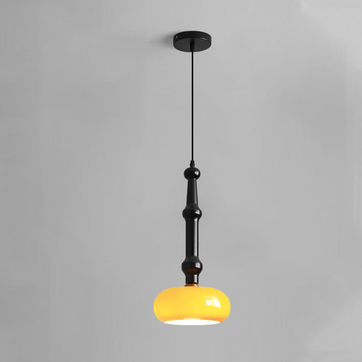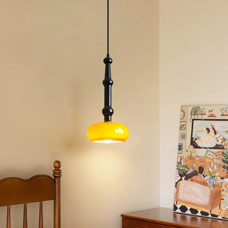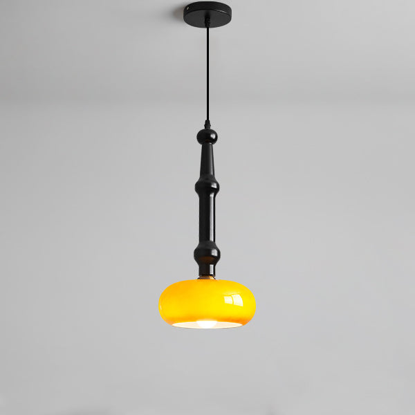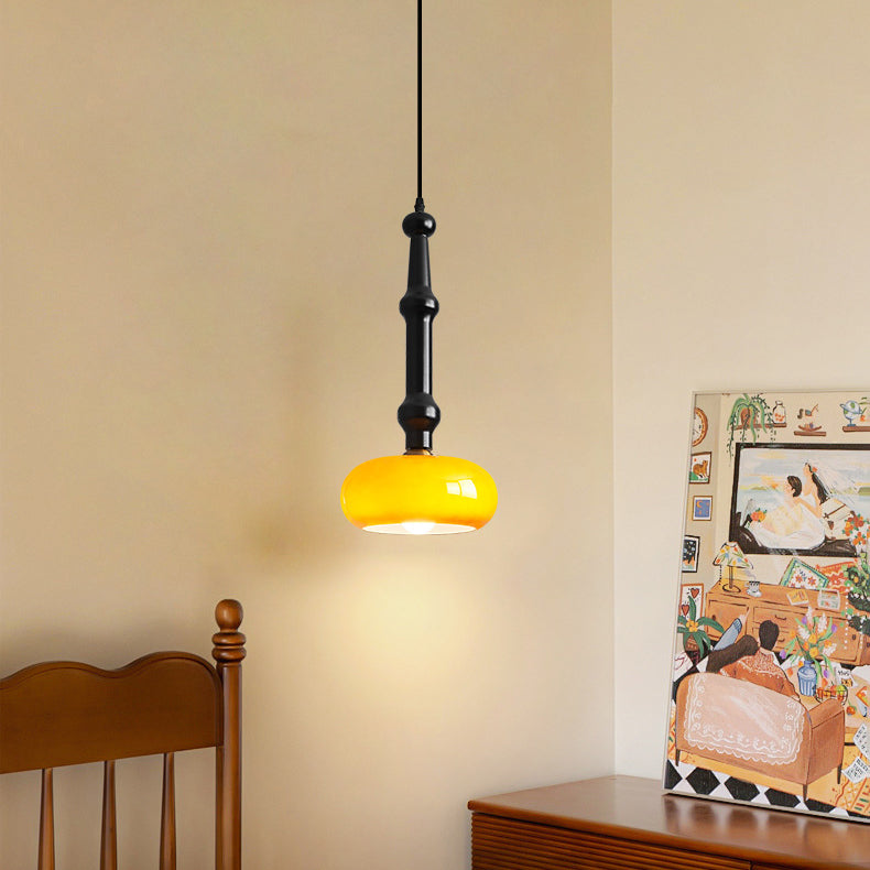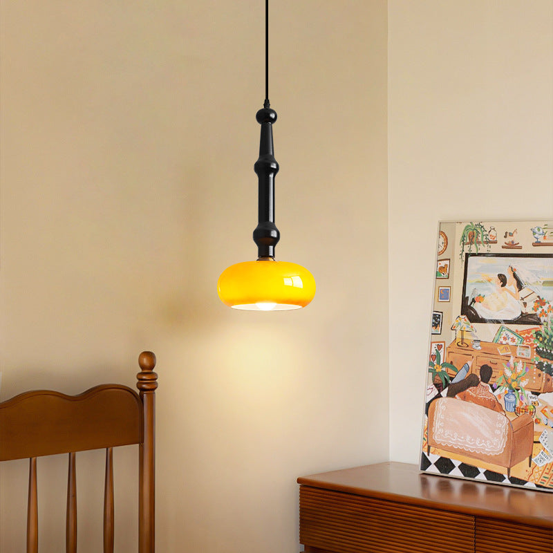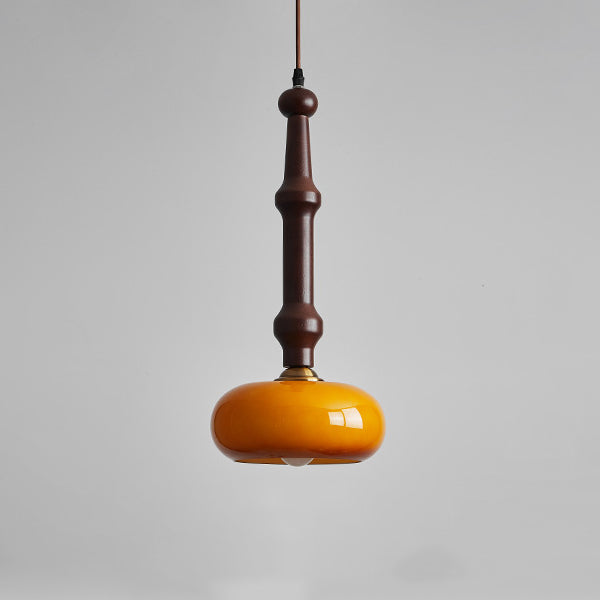 مصباح معلق تقليدي عتيق من خشب المطاط والزجاج والأسطوانة المسطحة المستديرة مزود بمصباح واحد لغرفة النوم وغرفة المعيشة