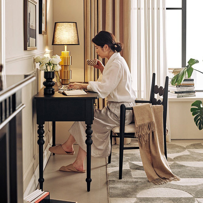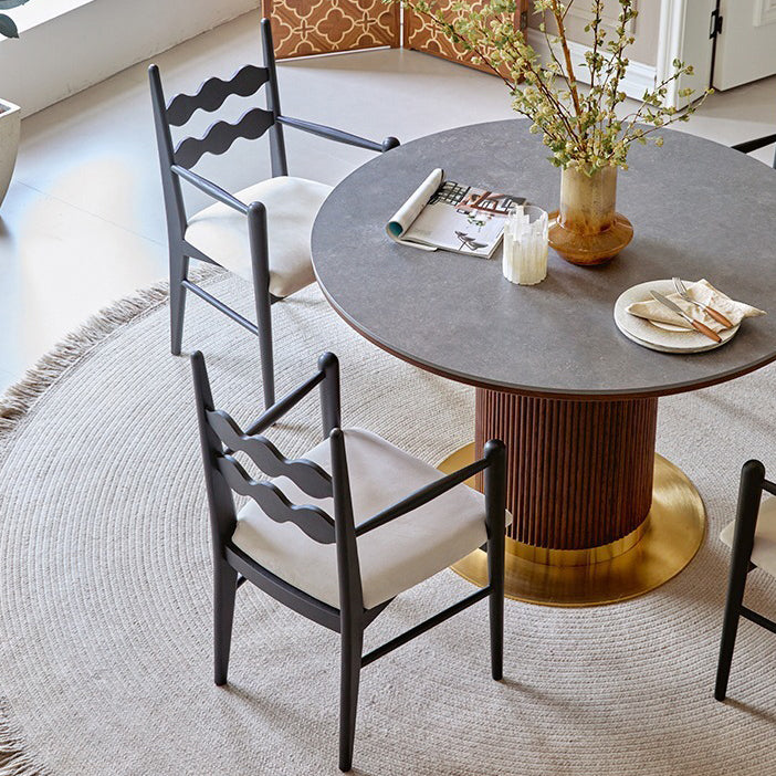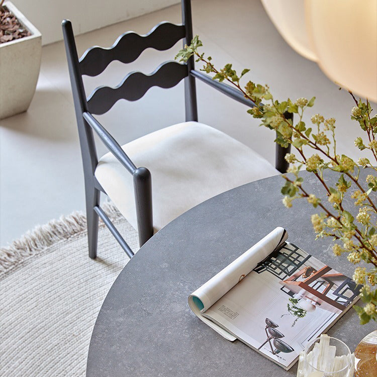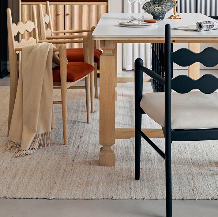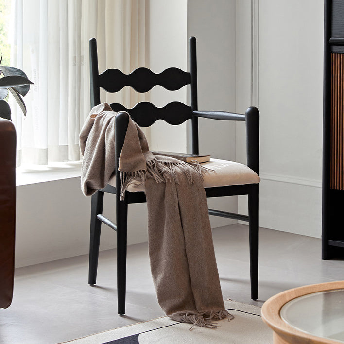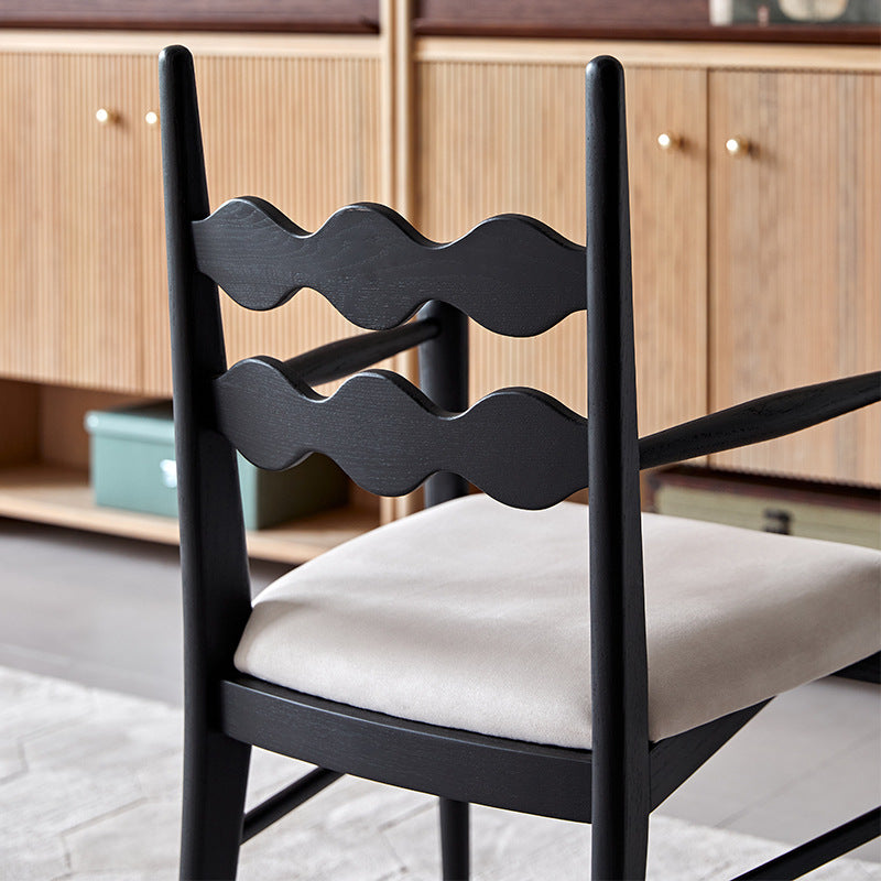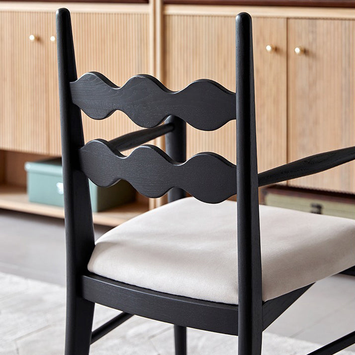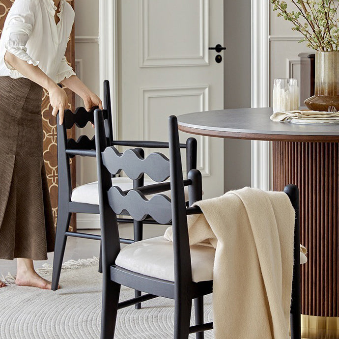 Traditional Vintage Square Rubberwood Velvet Dining Chair Backrest Armrest For Dining Room