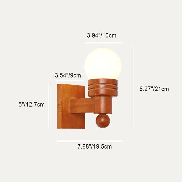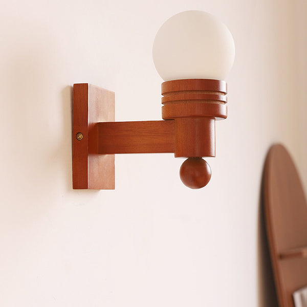 مصباح حائطي تقليدي عتيق مصنوع من عوارض خشبية وزجاج مع ظلة كرة واحدة لغرفة المعيشة