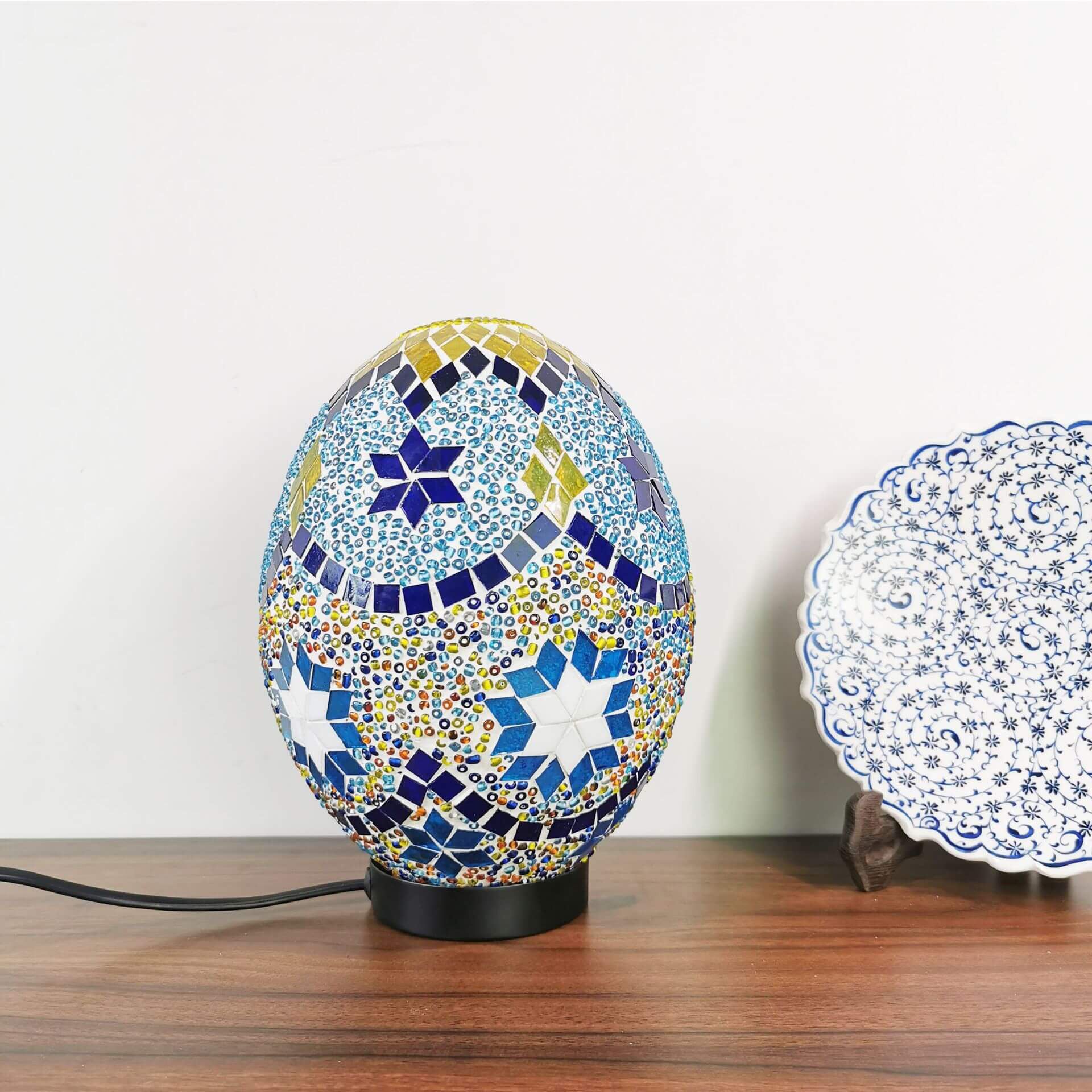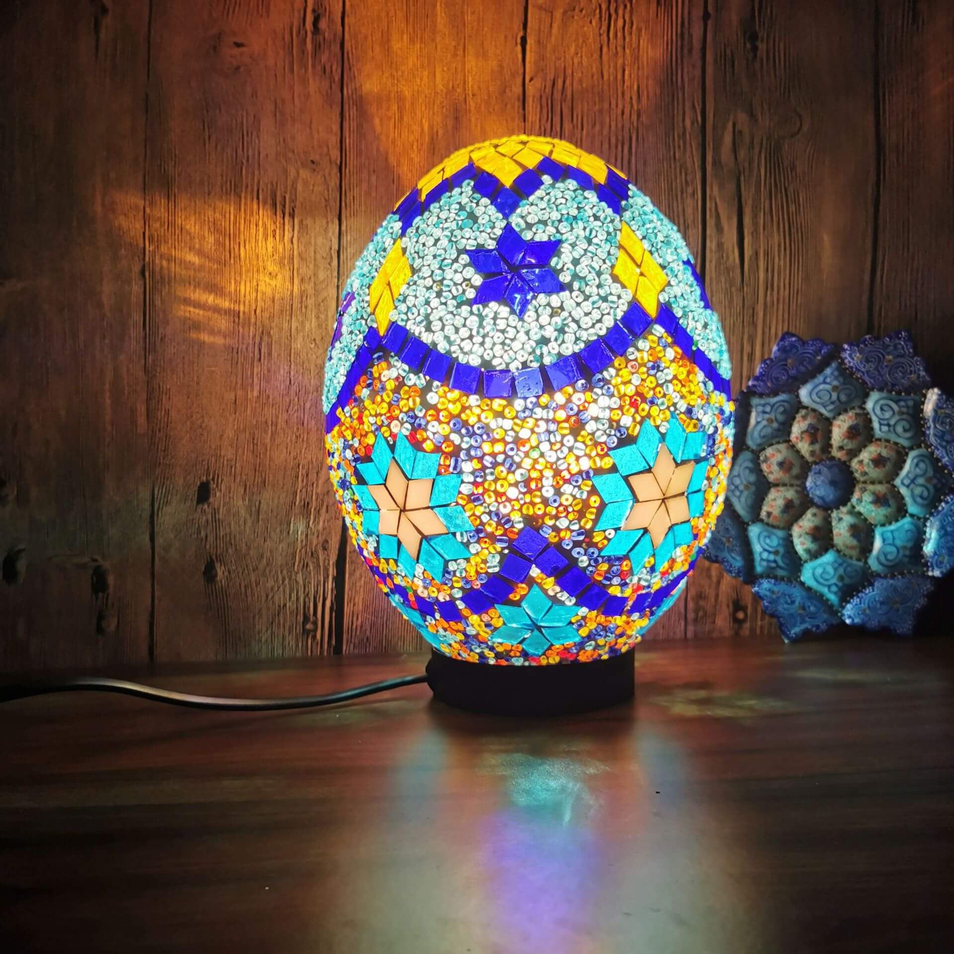 Turkish Handcrafted Mosaic Glass Egg-shaped 1-Light Table Lamp