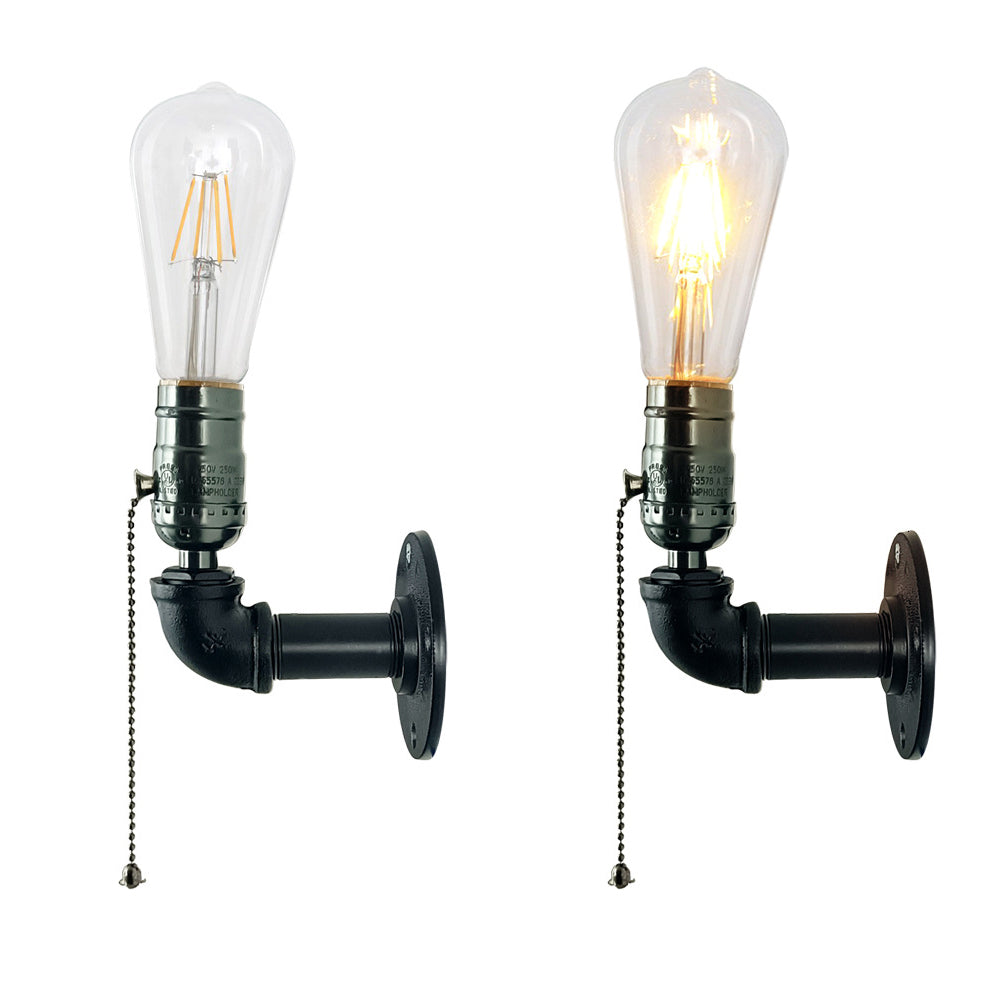 مصباح حائطي عتيق من الحديد الصناعي بتصميم سباكة، مزود بإضاءة واحدة