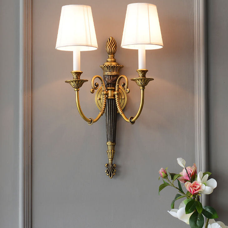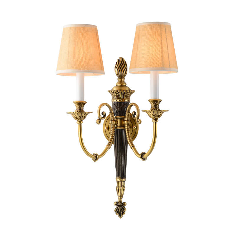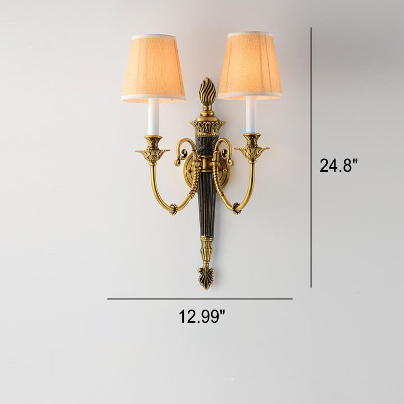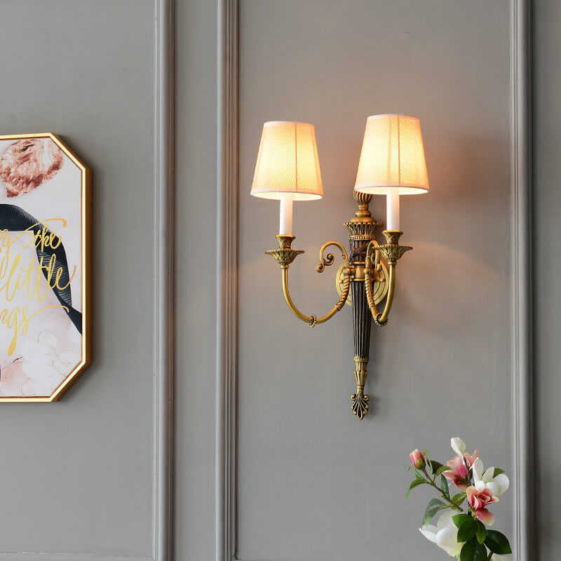 مصباح حائط أسطواني فاخر من النحاس مع غطاء، مكون من مصباحين