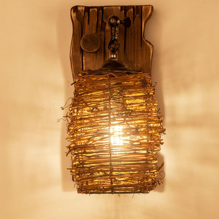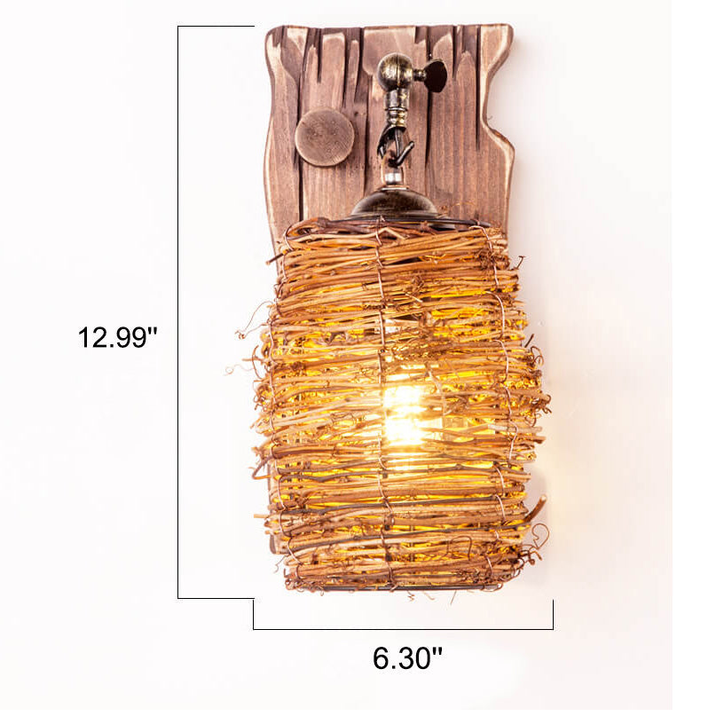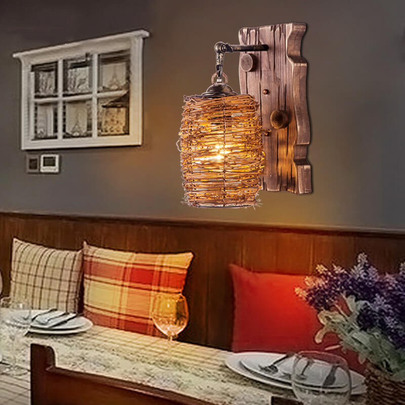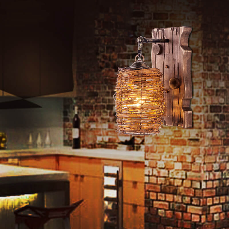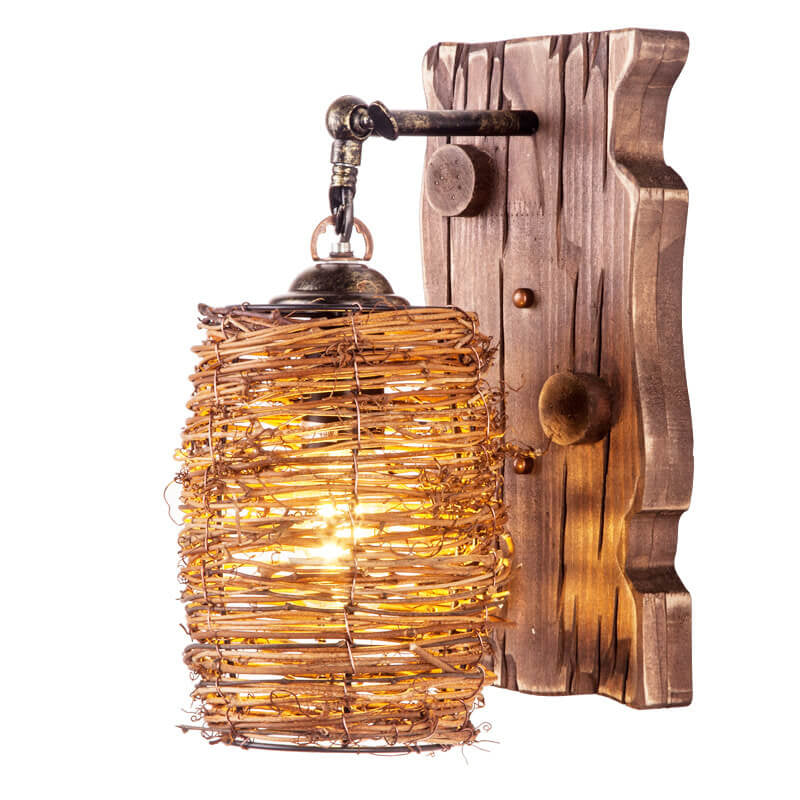 مصباح حائط عتيق ذو غطاء أسطواني خشبي أصلي عتيق مزود بضوء واحد