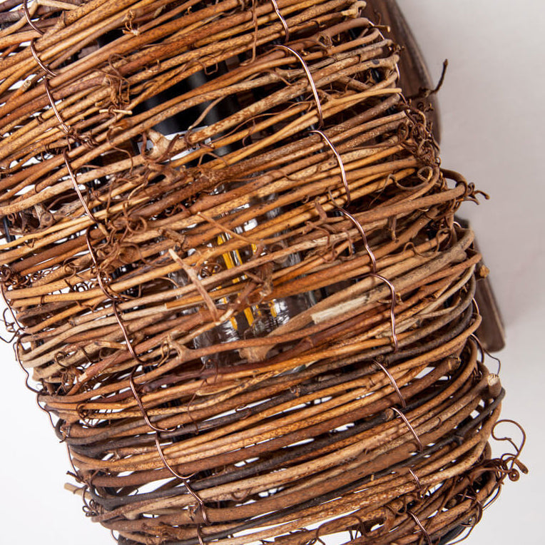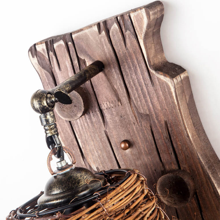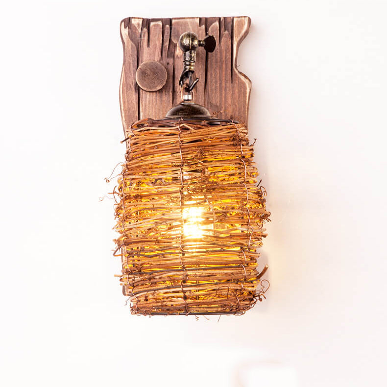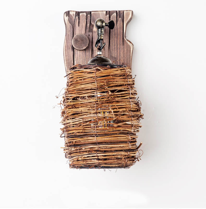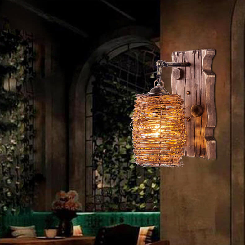 مصباح حائط عتيق ذو غطاء أسطواني خشبي أصلي عتيق مزود بضوء واحد