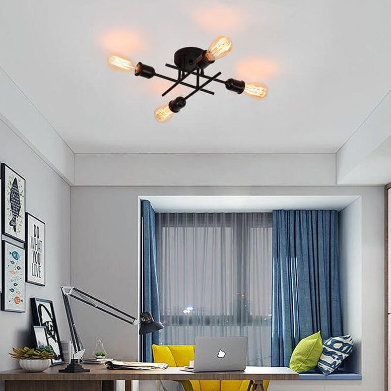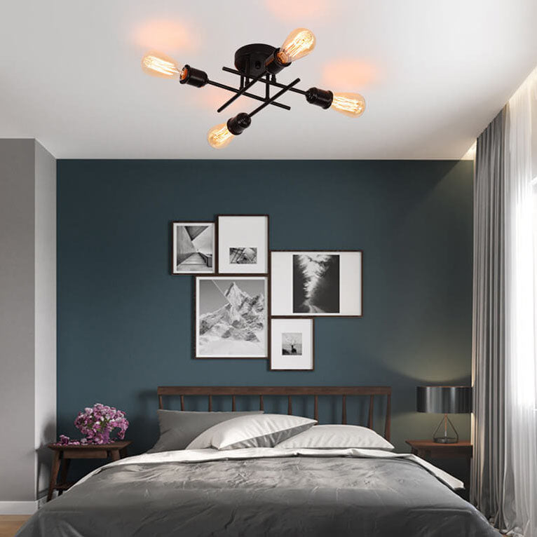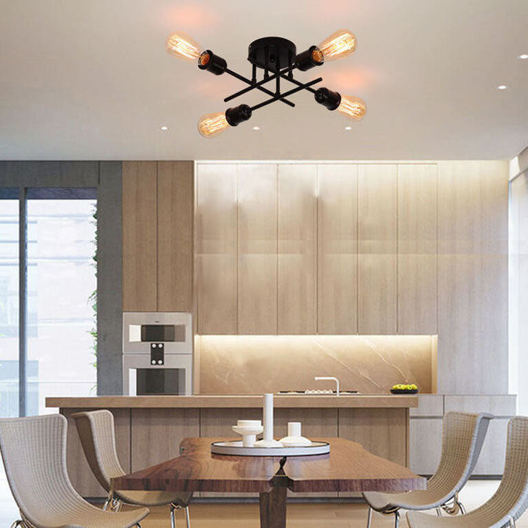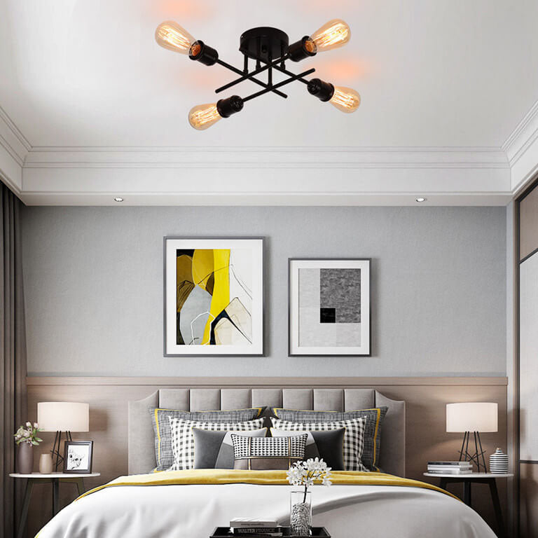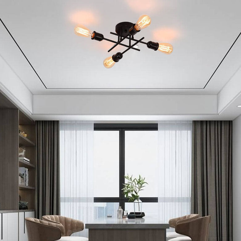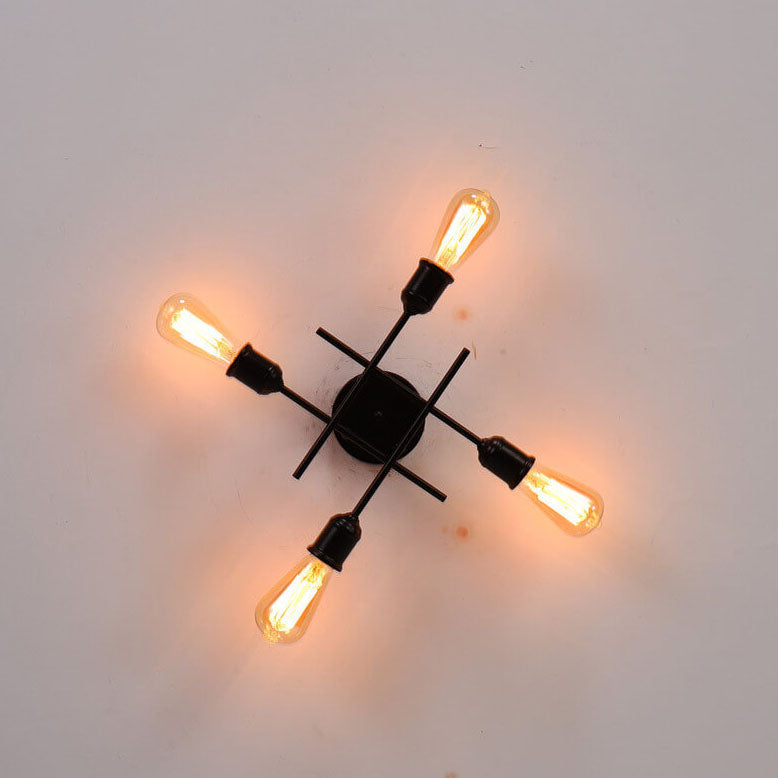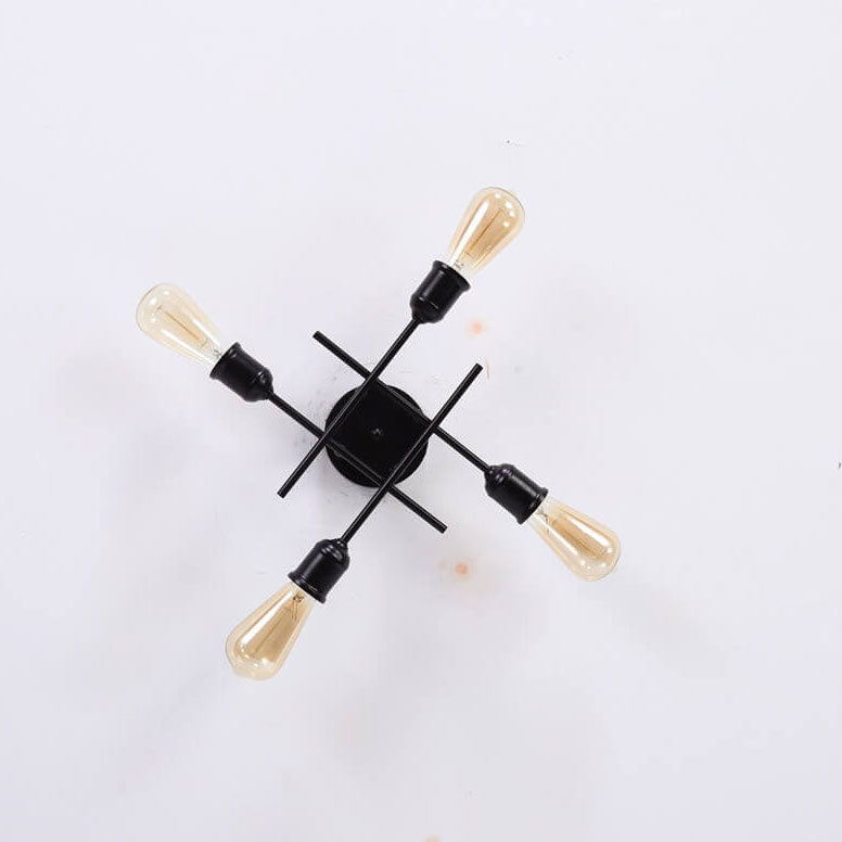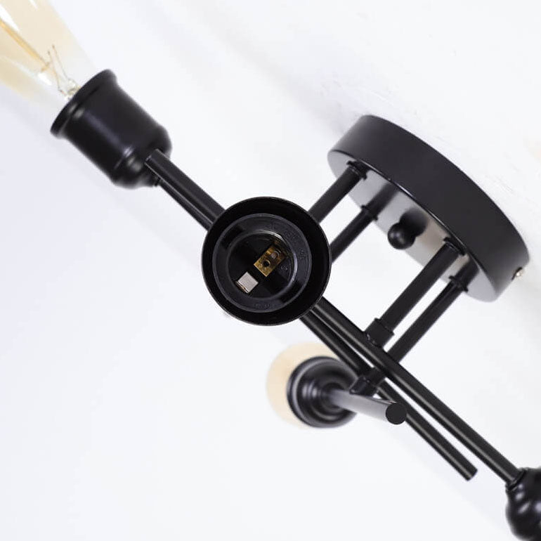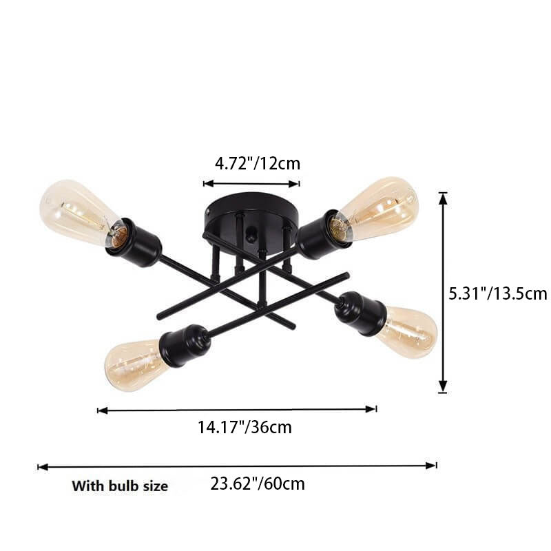 ثريا زجاجية دائرية عتيقة بسيطة مزودة بأربعة مصابيح مع حامل حديدي