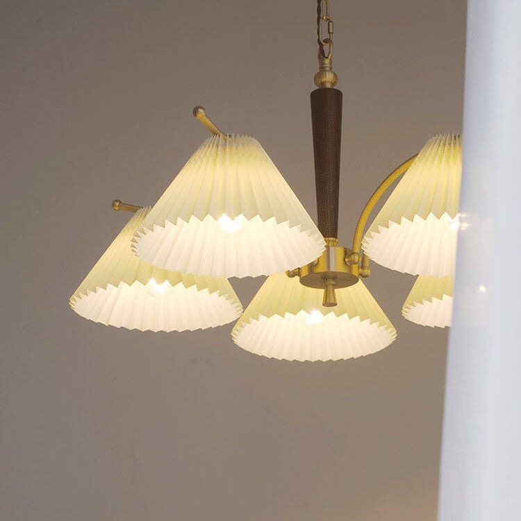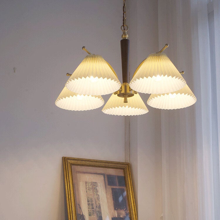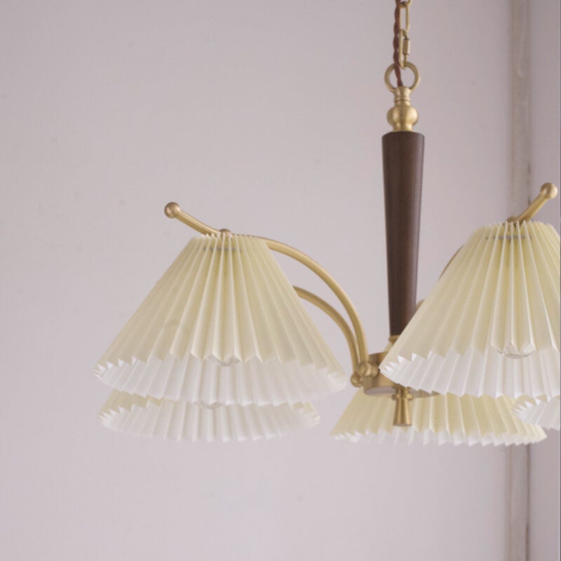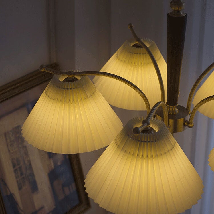 ثريا عتيقة من خشب الجوز بغطاء مطوي و3/6 مصابيح
