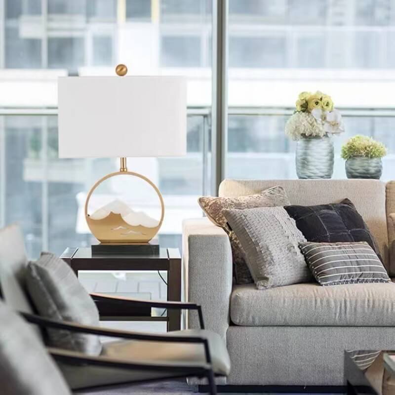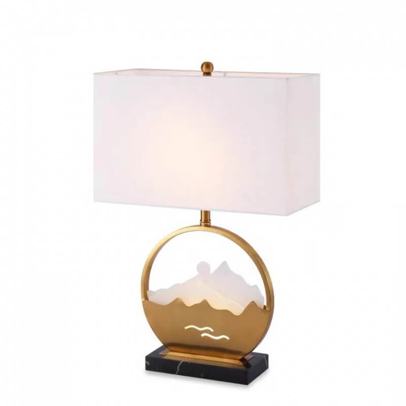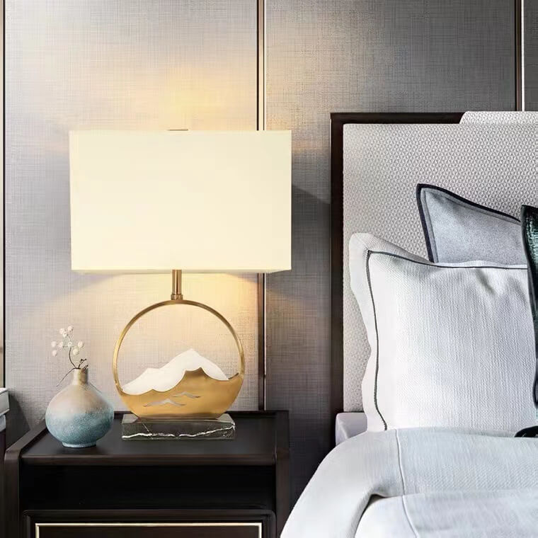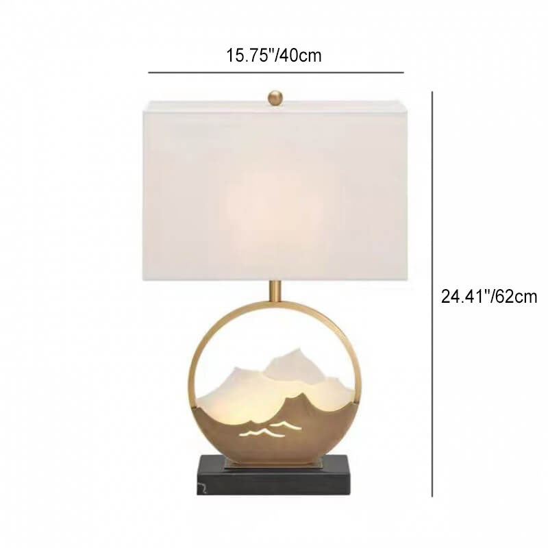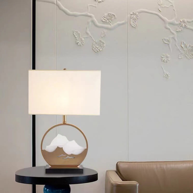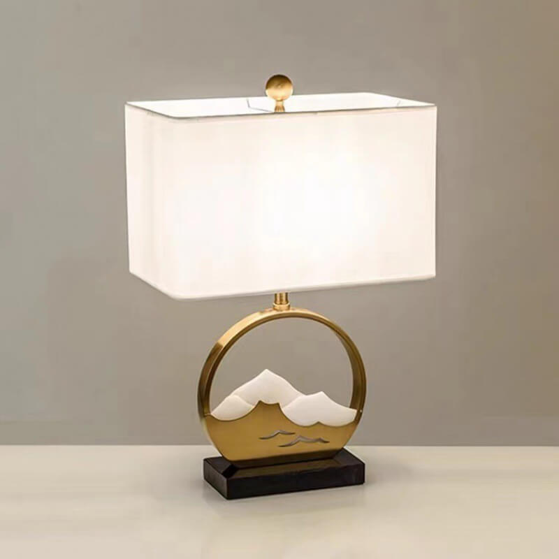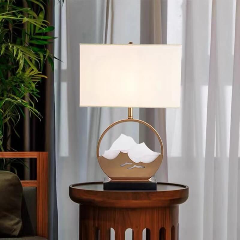 Chinese Modern Rectangular Round Metal Fabric 1-Light Table Lamp