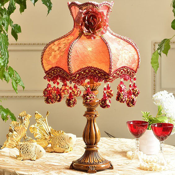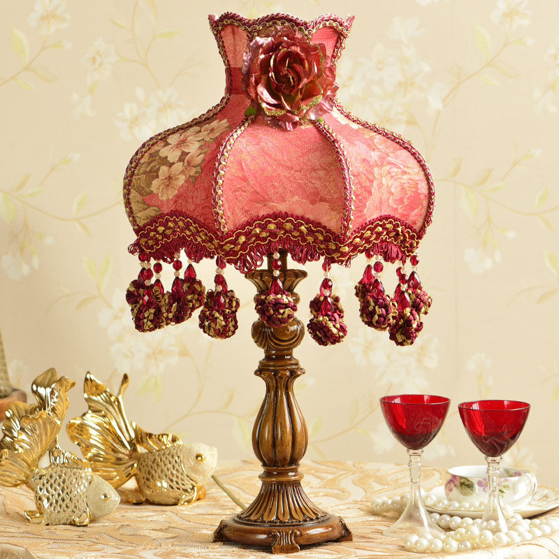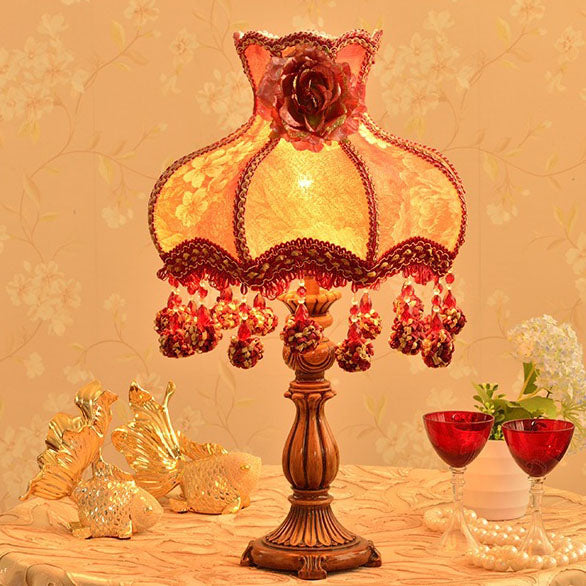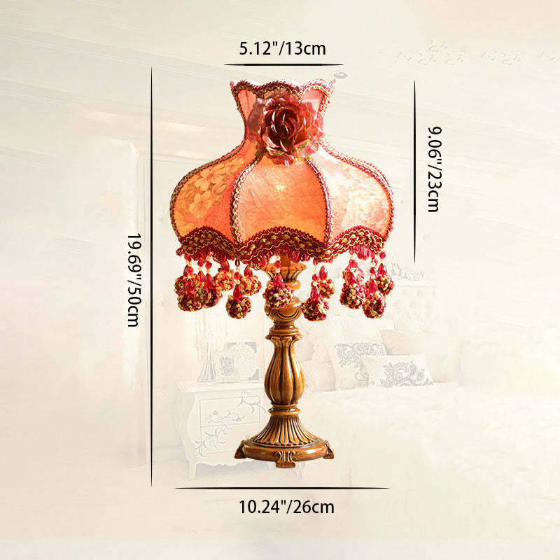 Chinese Ornate Fabric Shade Rose Flower Decor 1-Light Table Lamp