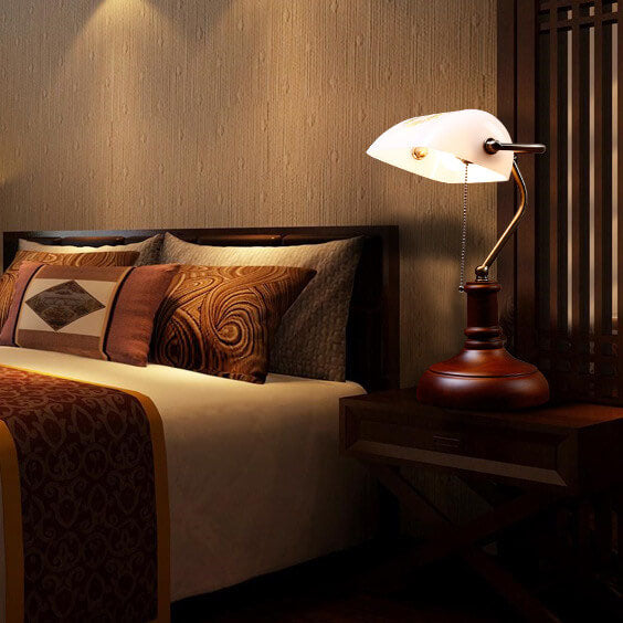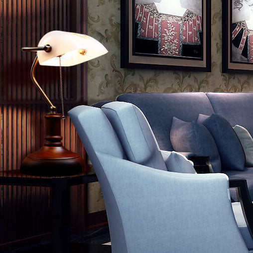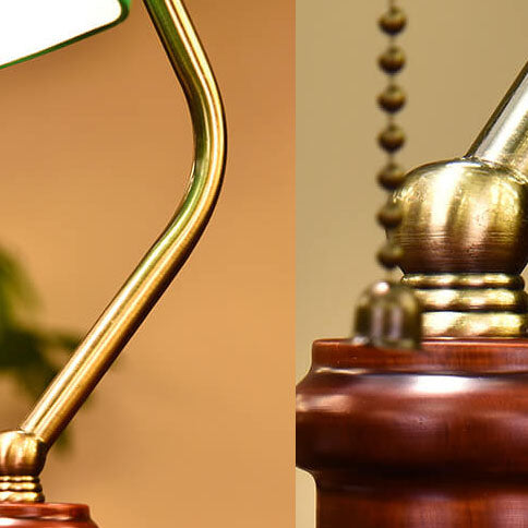 Chinese Vintage Floral Pattern Glass Shade Wood Base 1-Light Table Lamp