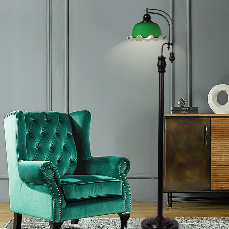 Chinese Vintage Iron Flower Bud Glass Shade 1-Light Standing Floor Lamp