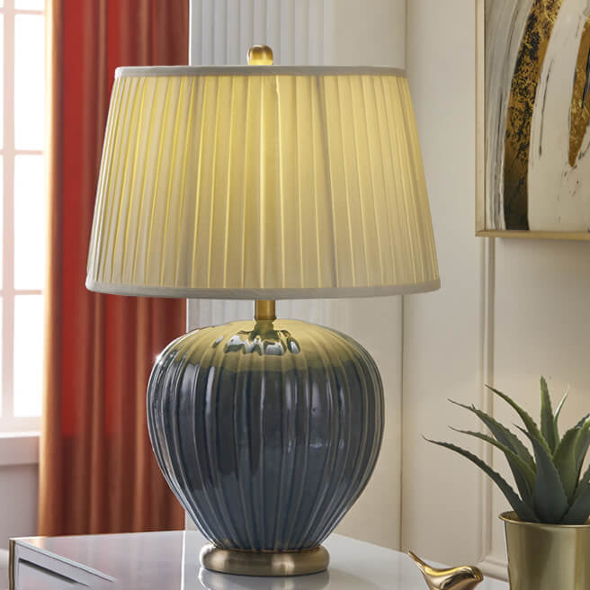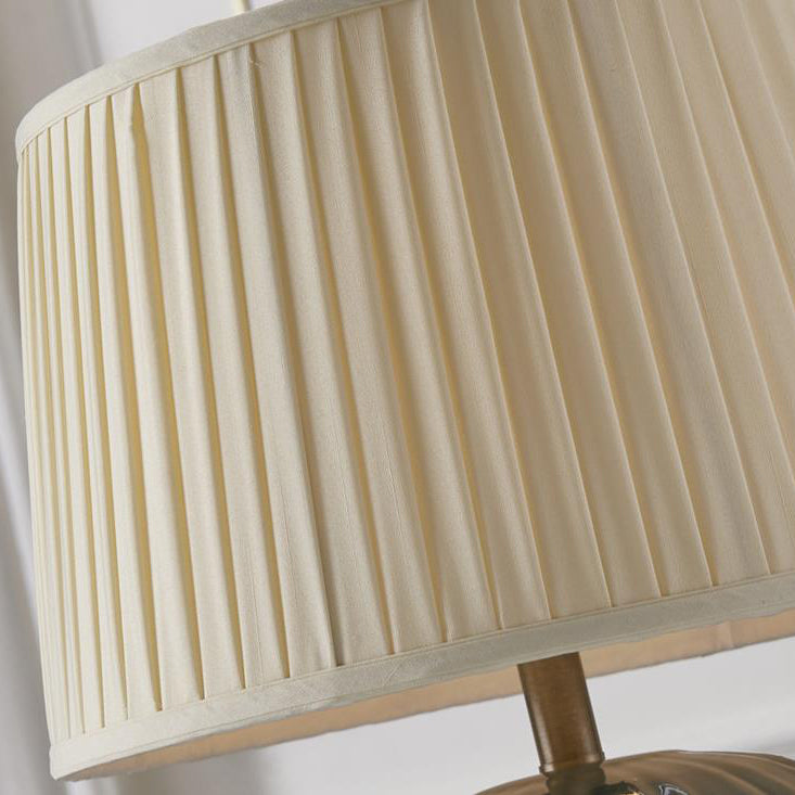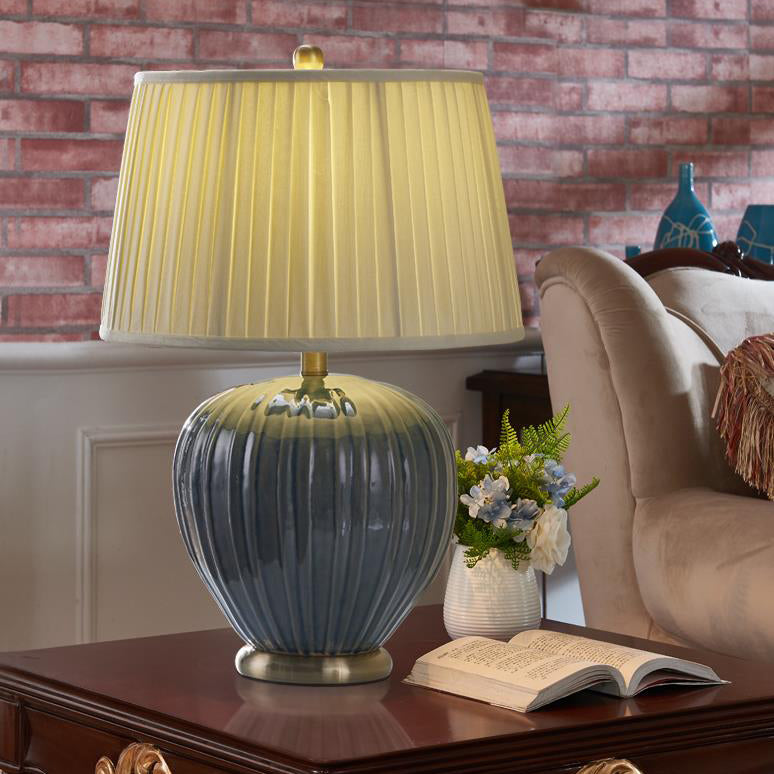 Chinese Vintage Pleated Canvas Shade Ceramic Vase Base 1-Light Table Lamp