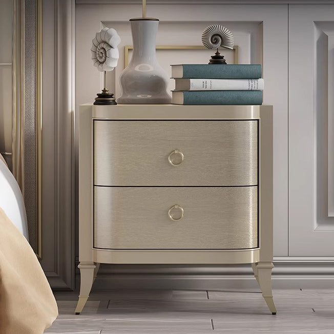 Contemporary Boho Rectangular Tabletop Solid Wood Copper Nightstand 2-Drawer For Bedroom