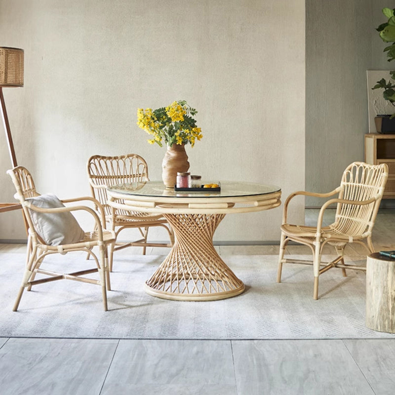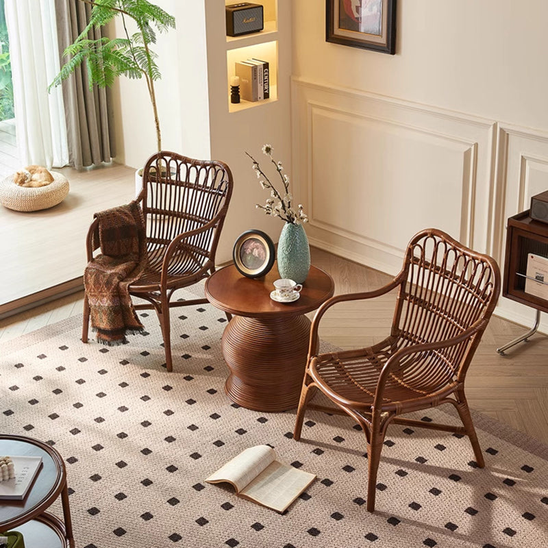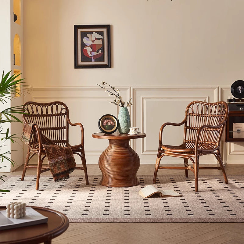 Contemporary Boho Square Rattan Weaving Ash Accent Chair Backrest Armrest For Dining Room