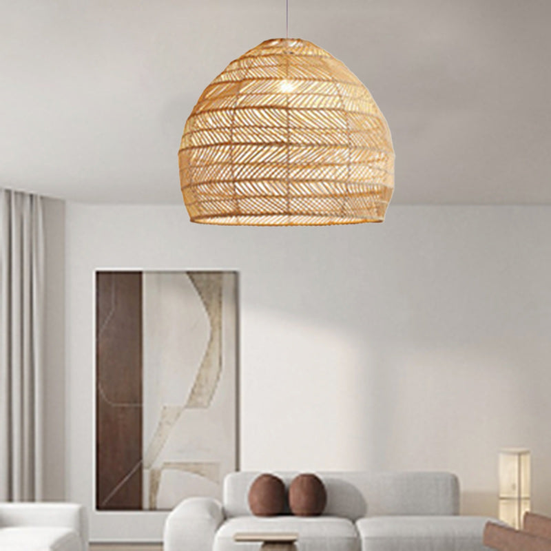 Contemporary Boho Wood Grain Hollow Basket Rattan 1 - Light Pendant Light For Dining Room
