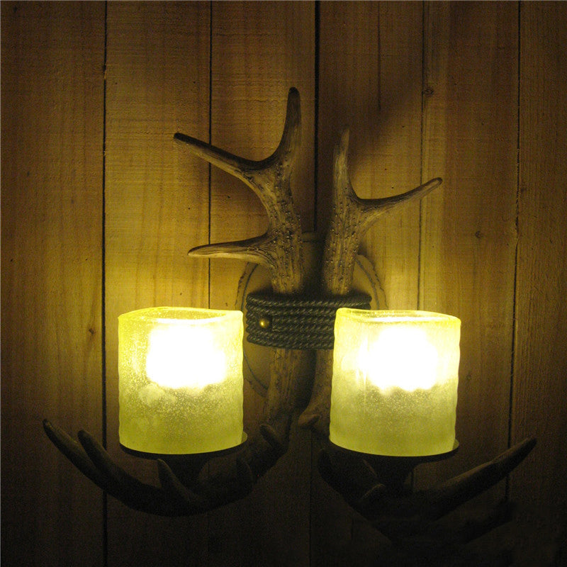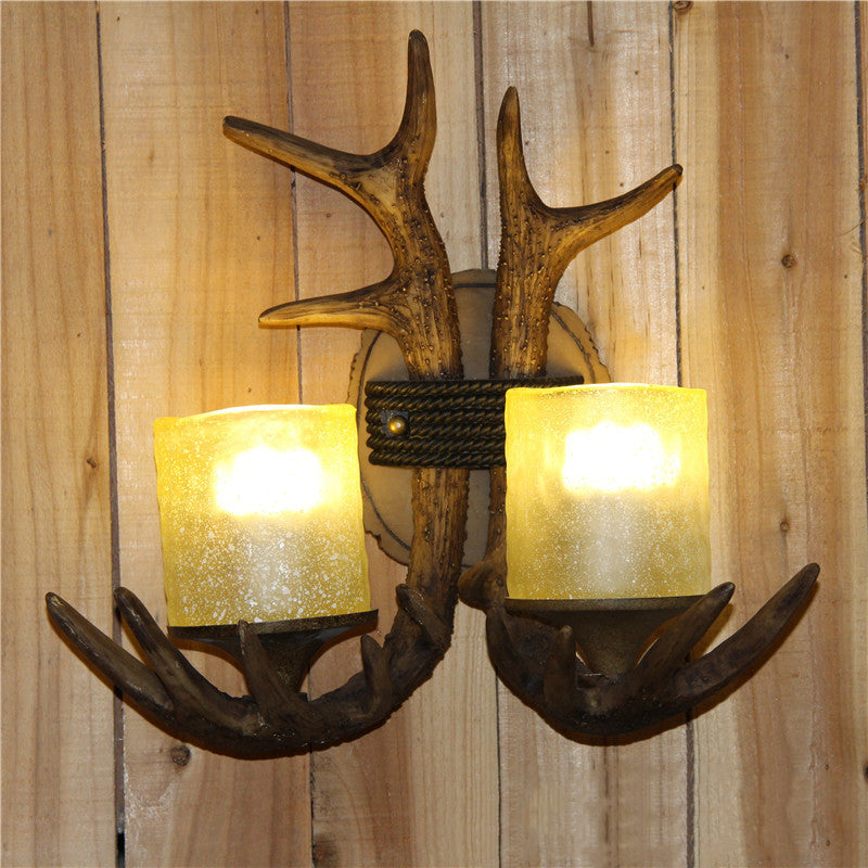 Contemporary Creative Antler Cylinder Resin Glass 2-Light Wall Sconce Lamp For Bedroom